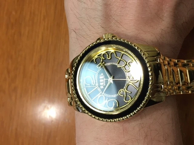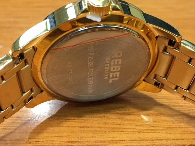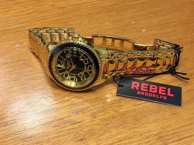 Rebel Unisex RB107-9078 Williamsburg(Steel) Black Dial Gold IP Stainless Steel
