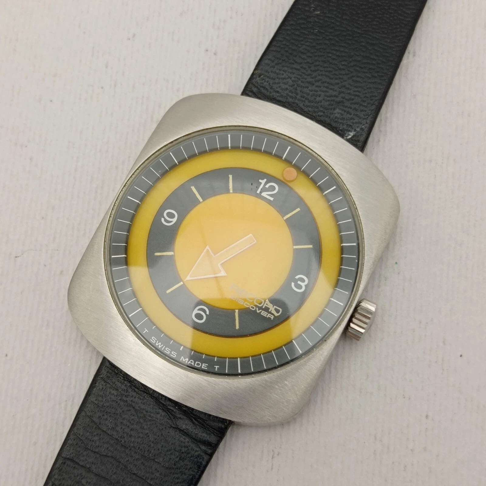 Record Discover Mystery Yellow Dial CAL.661 Watch Collectible Very Rare VTG 70s