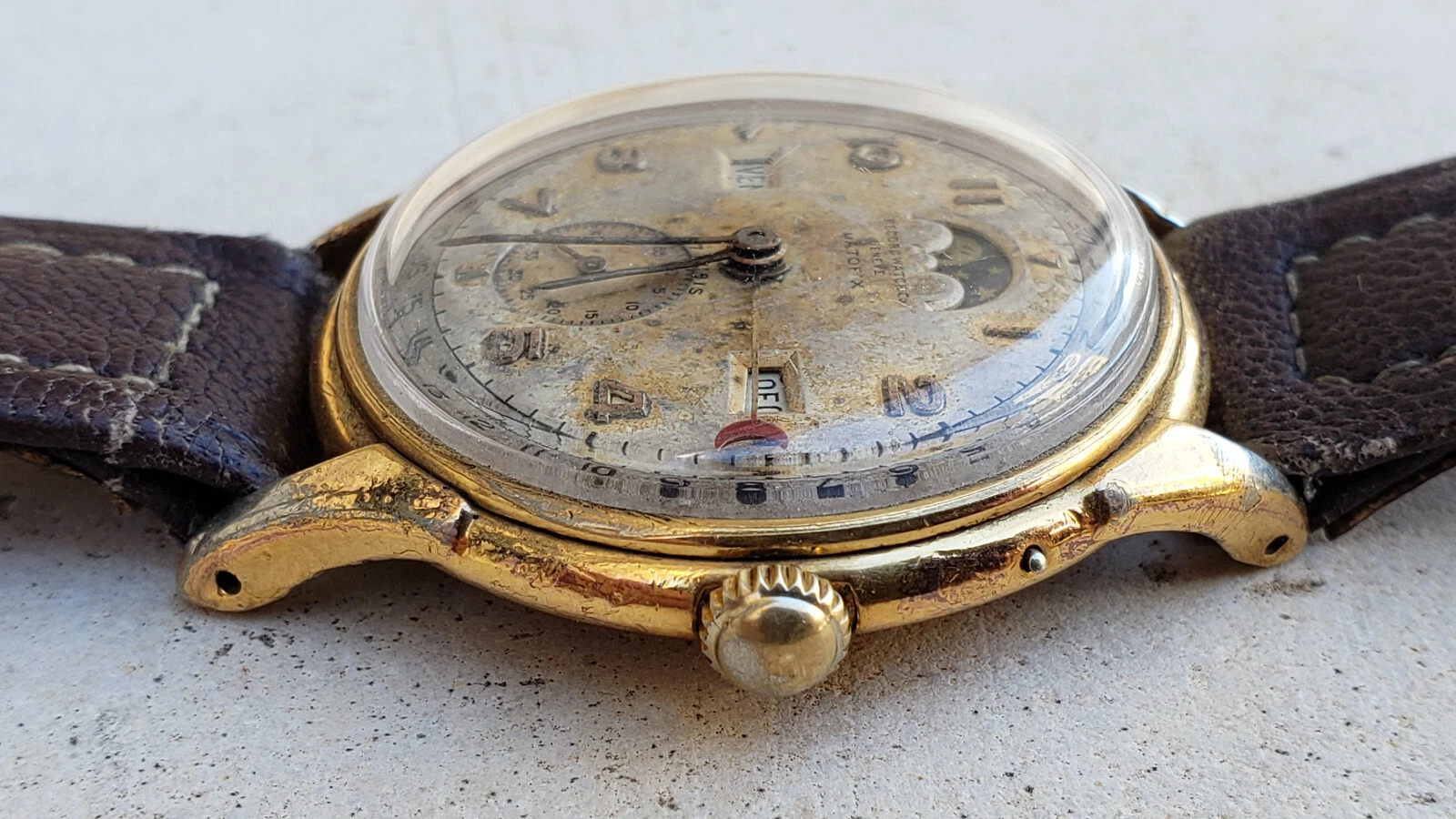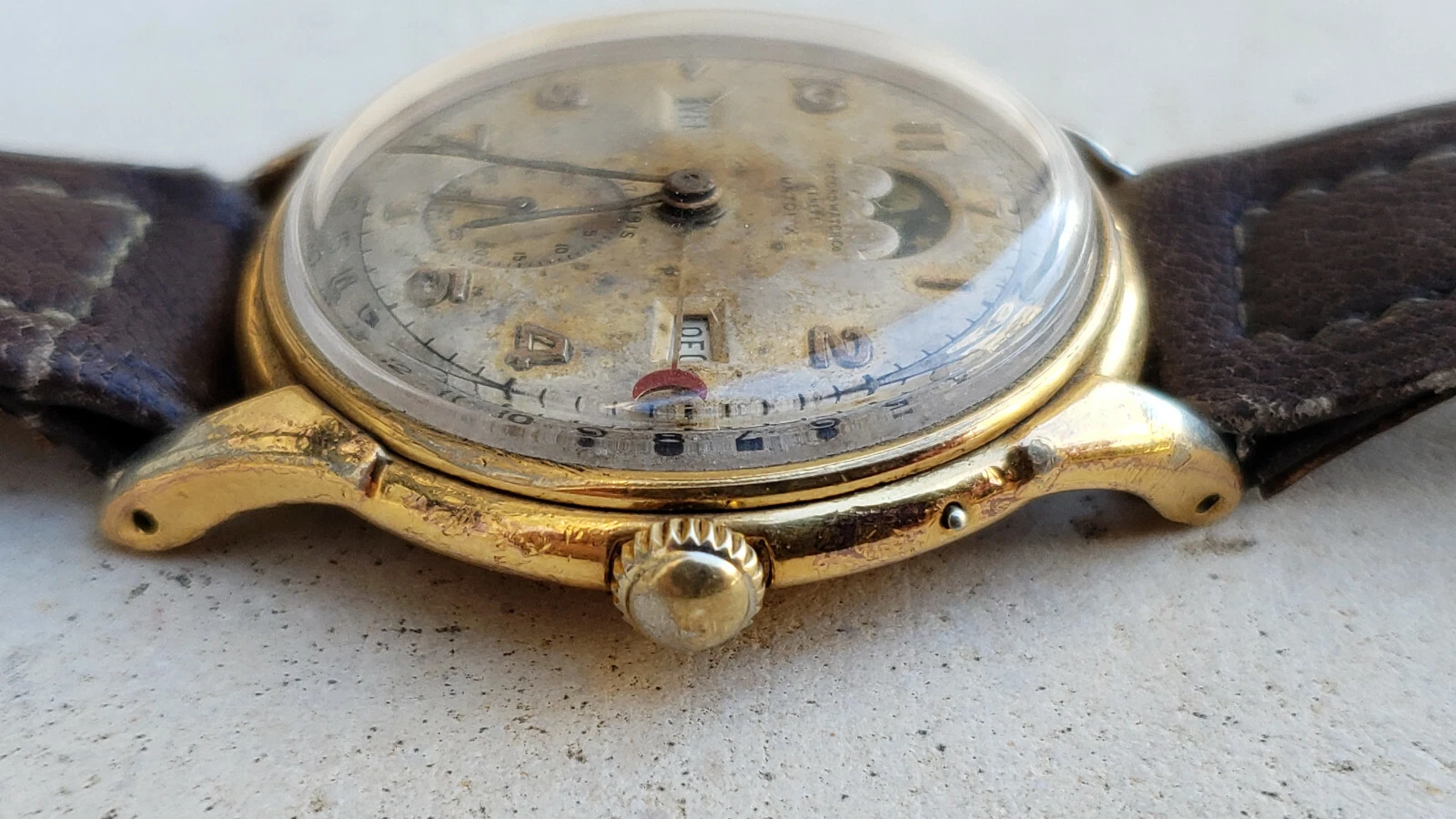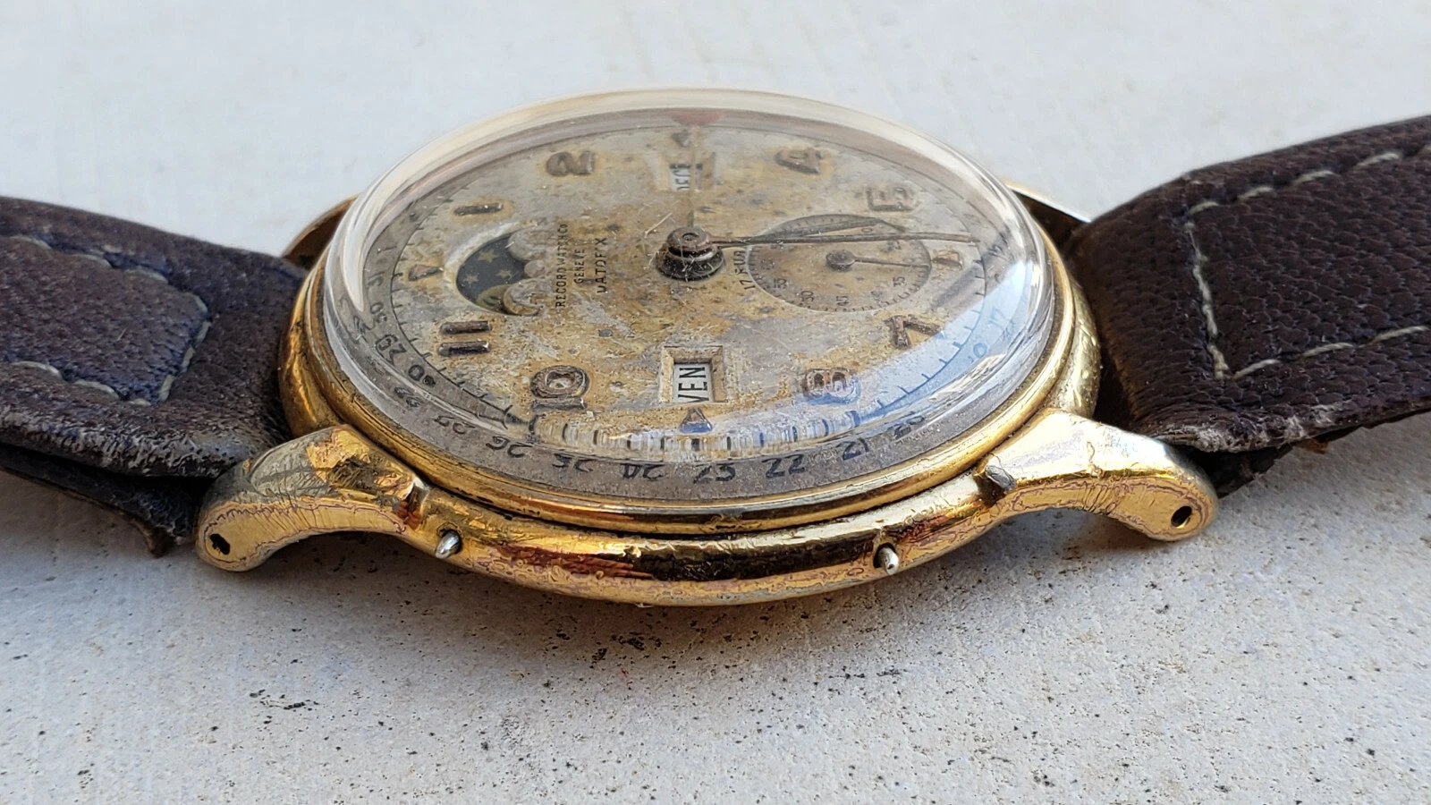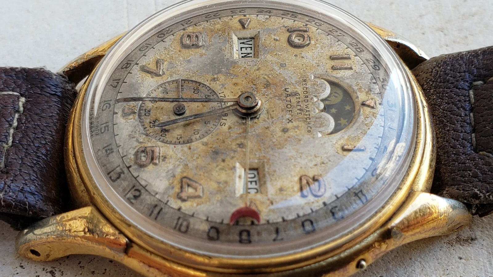 RECORD DATOFIX TRIPLE DATE MOONPHASE VINTAGE MECHANICAL MENS WATCH