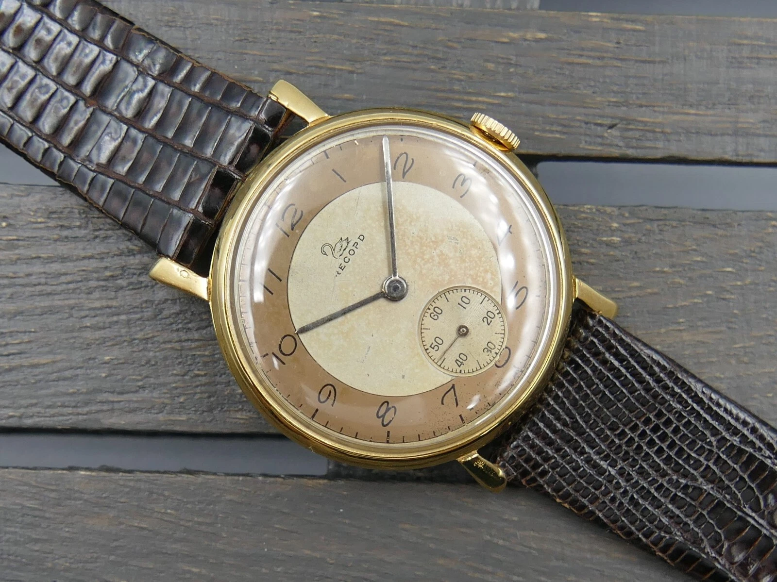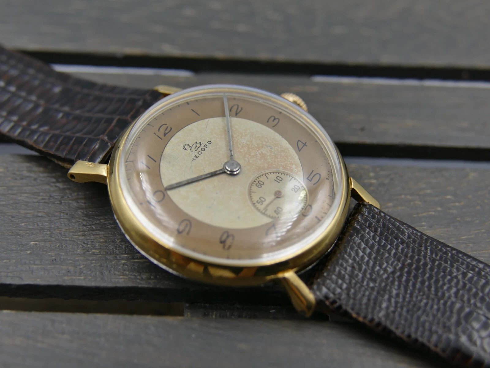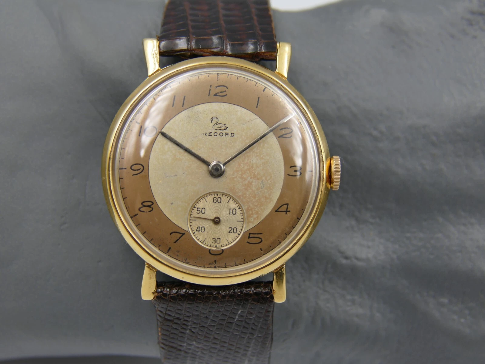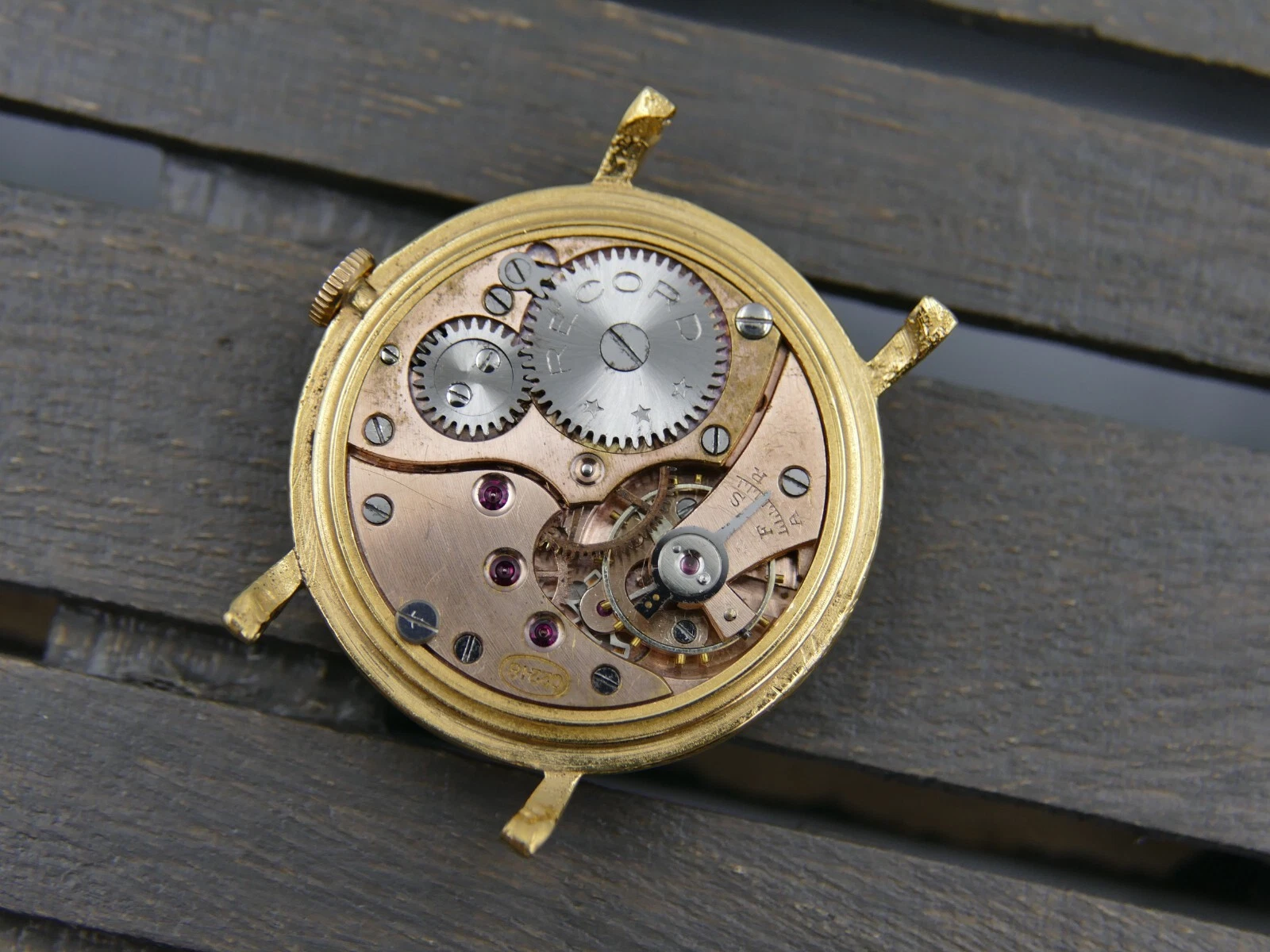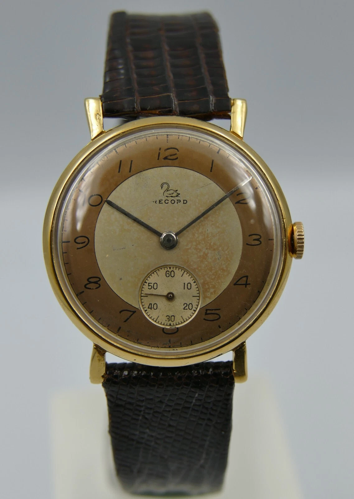 40's vintage watch mens Record swan logo ref 11294 cal 022-18 gold pl 35mm rare