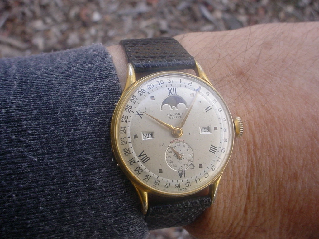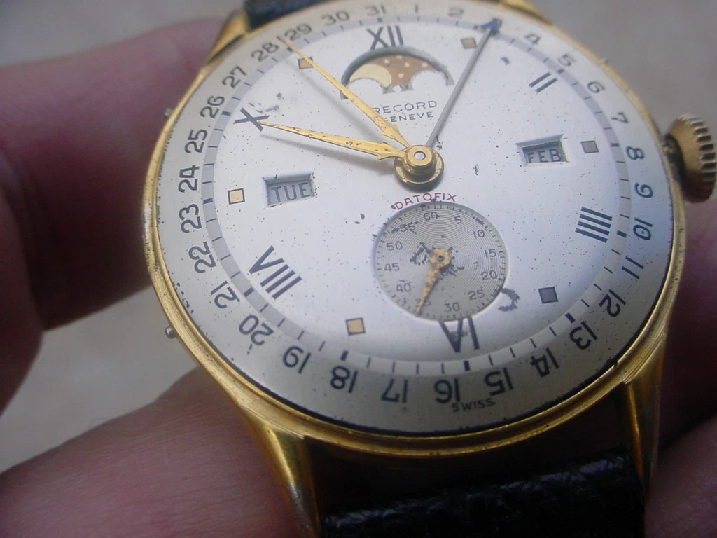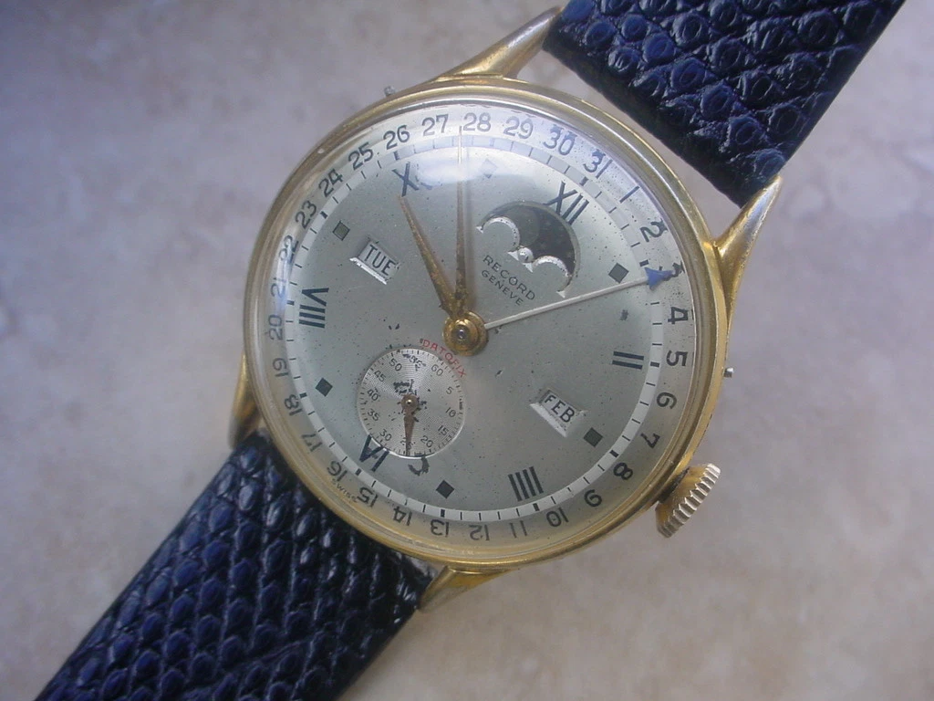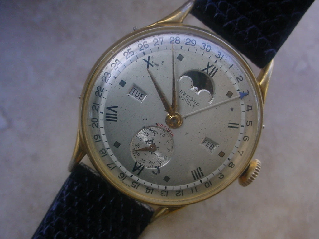 Very Collectible Record Datofix Triple Calendar, Moon Phase, 35mm Case w/o crown