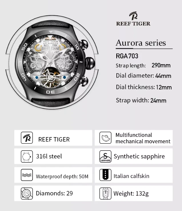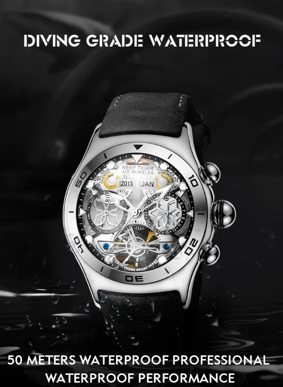 Mechanical Automatic Watch For Men Skeleton Watch Military 50ATM Sport