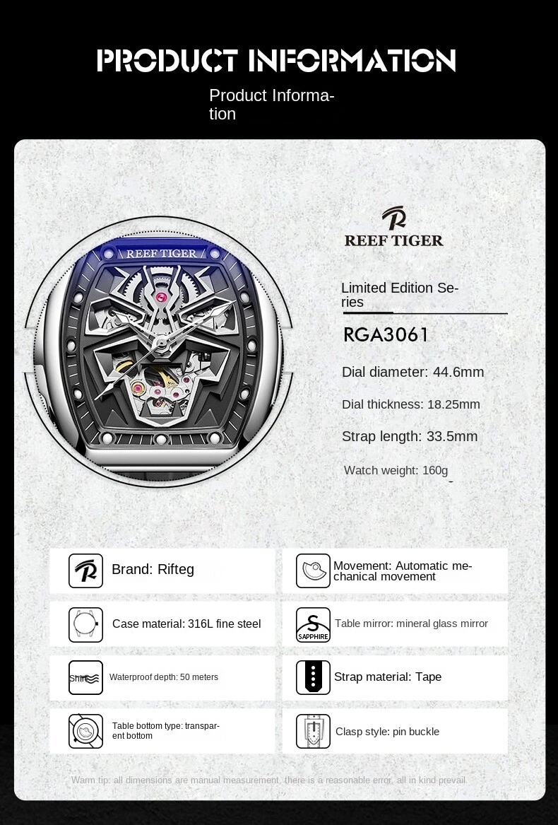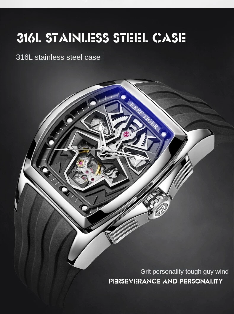 Reef Tiger Men's Mechanical Watch Waterproof Luminous Personality High-End Watch