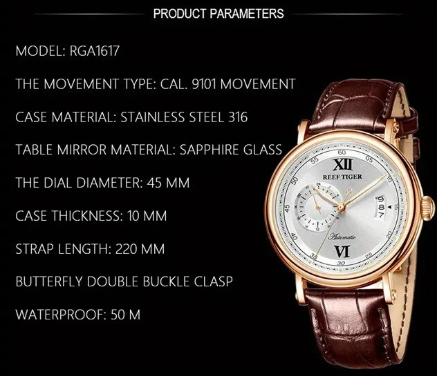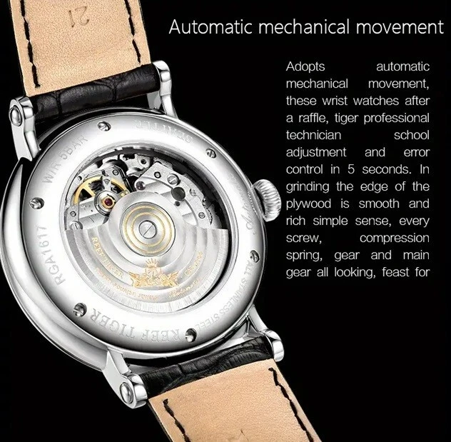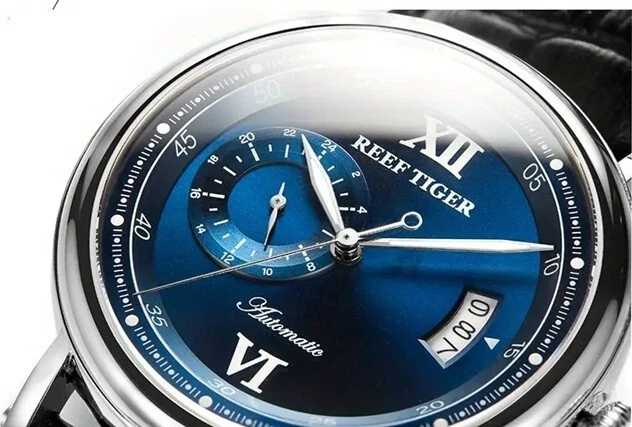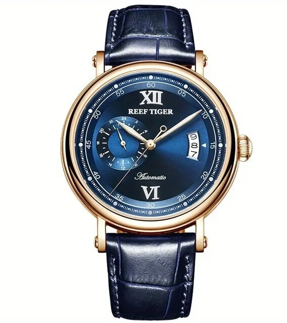 New Reef Tiger Stylish Men's Automatic Mechanical Watch with Strap - Rose Blue