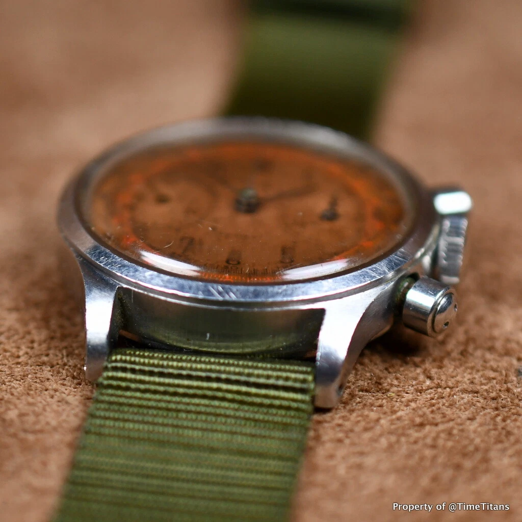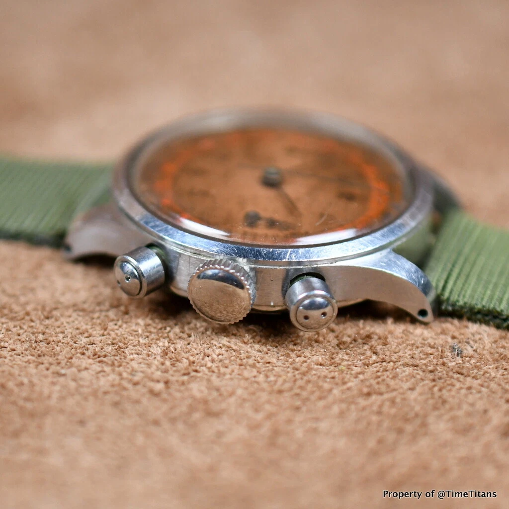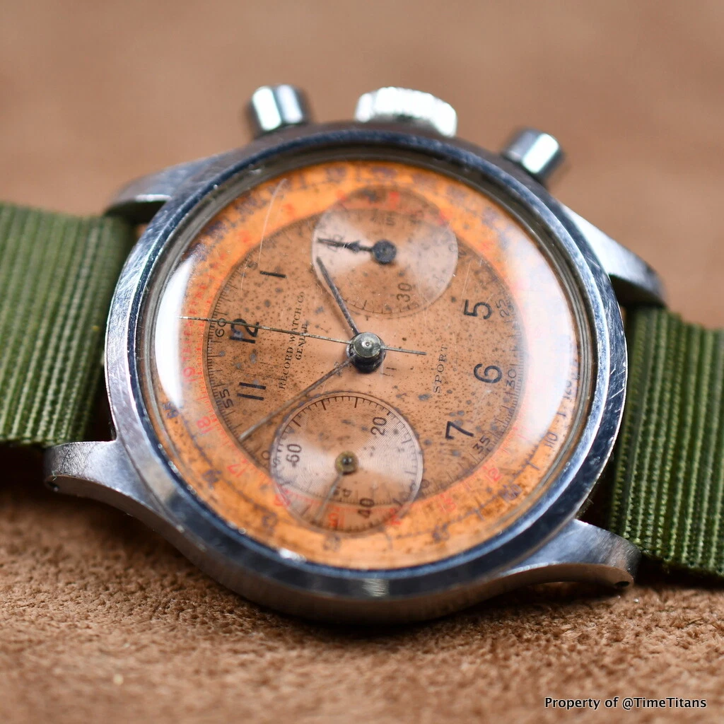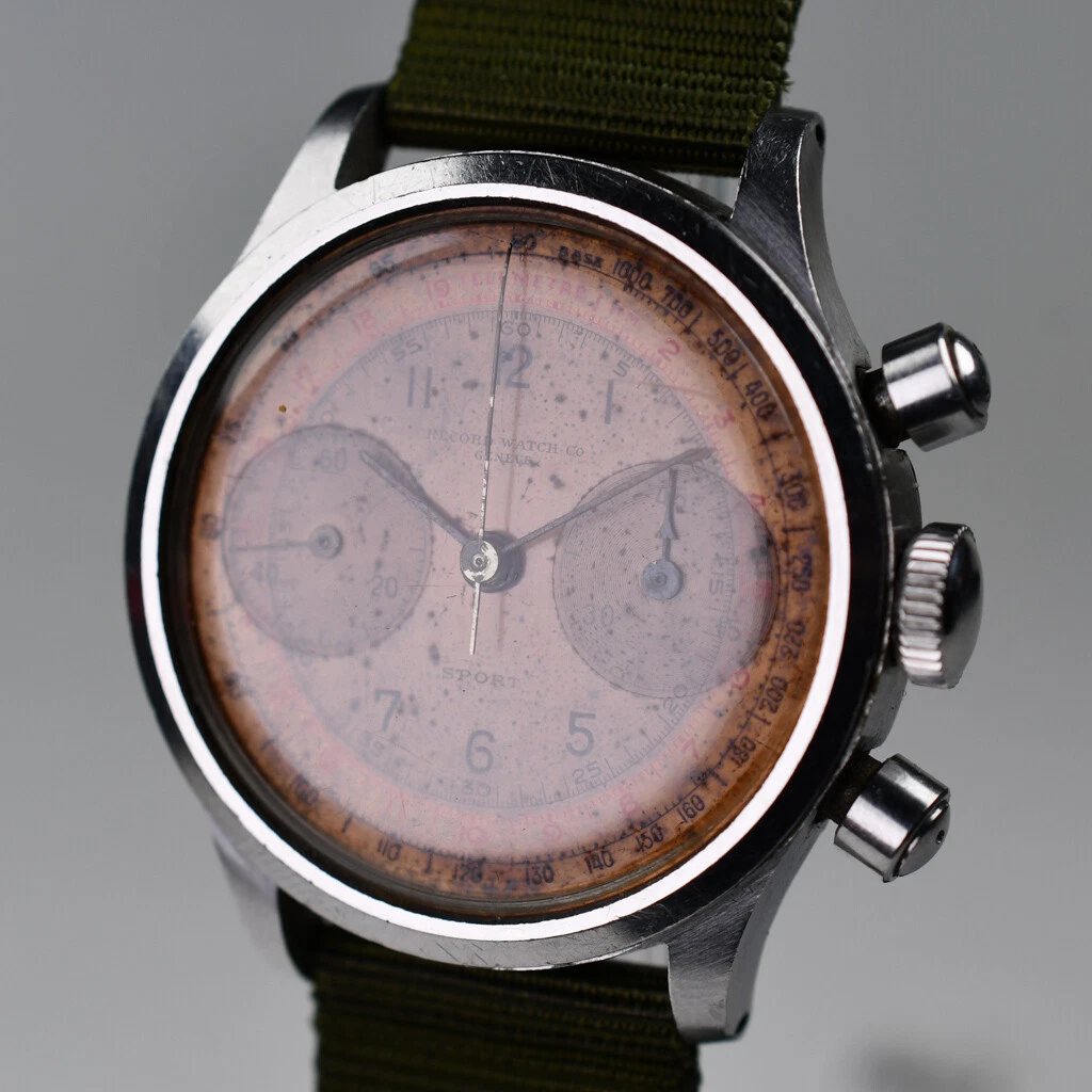 Record Sport Stainless Steel 1940s Oversized Chronograph Copper Patina Dial Rare