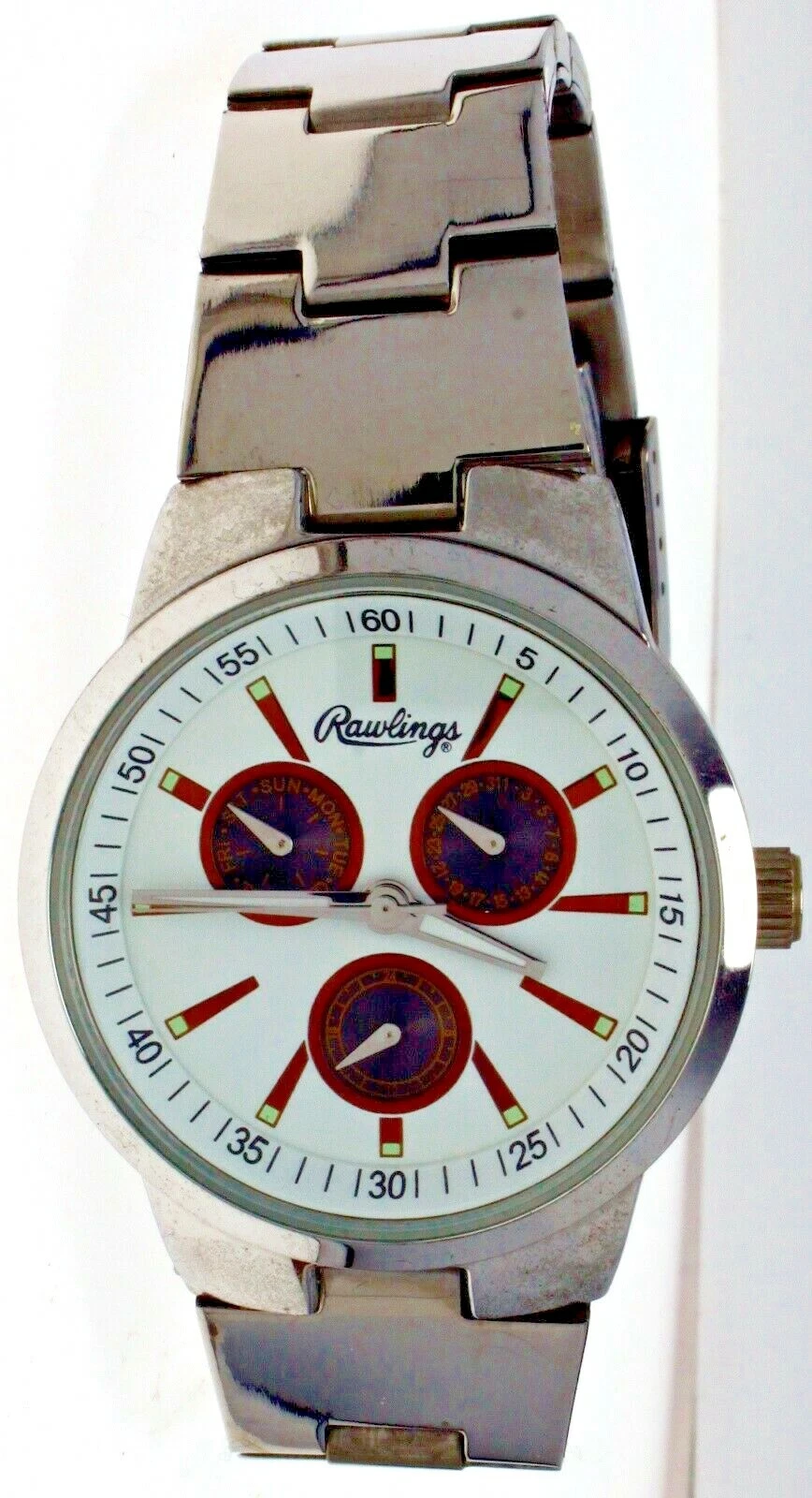 New Old Stock MEN'S Rawlings Day Date 24h WRIST WATCH Stainless Steel Model74047