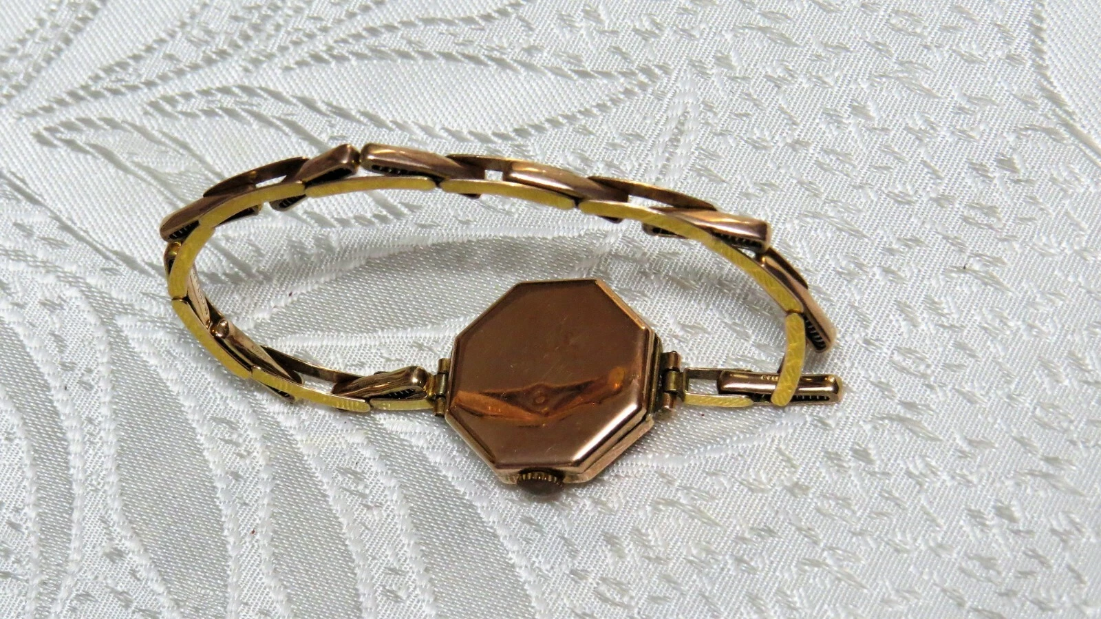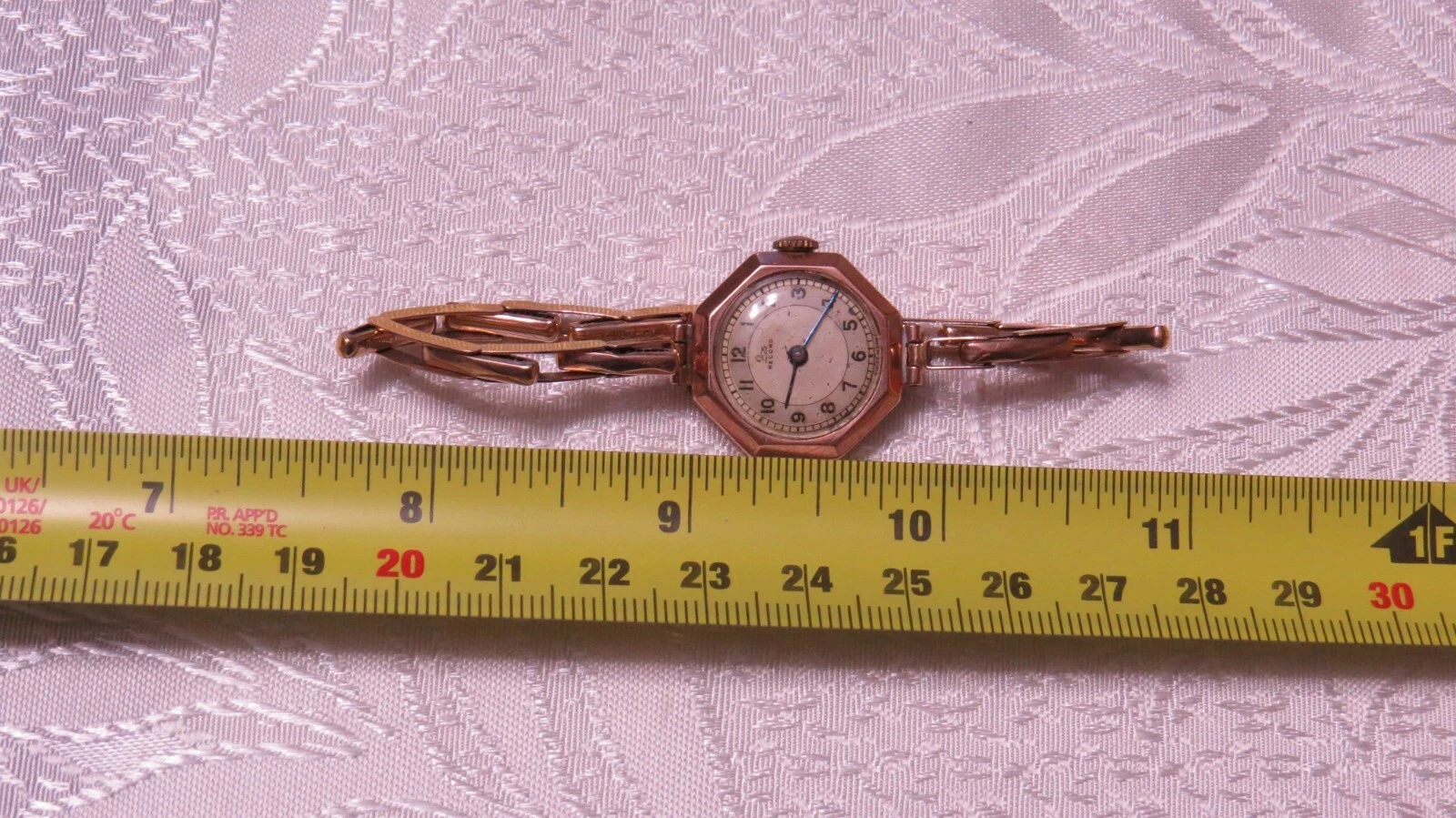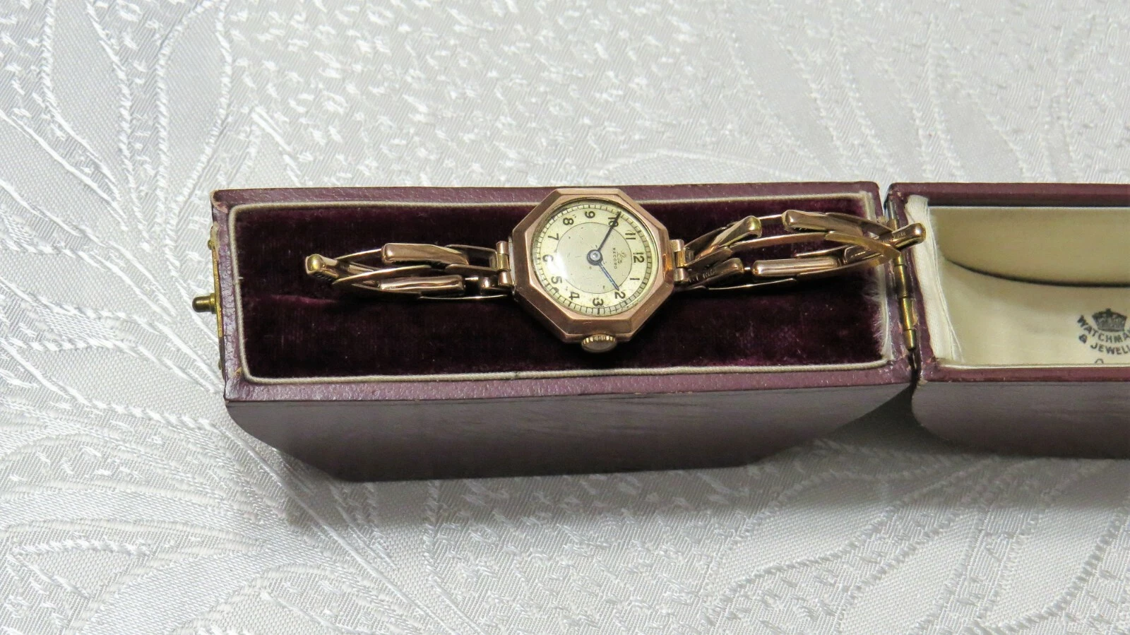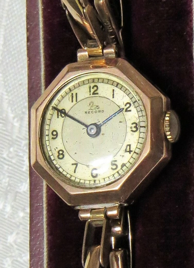 Vintage 375 (9K) Yellow Gold Ladies Record Wristwatch with Bracelet.