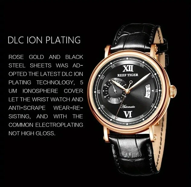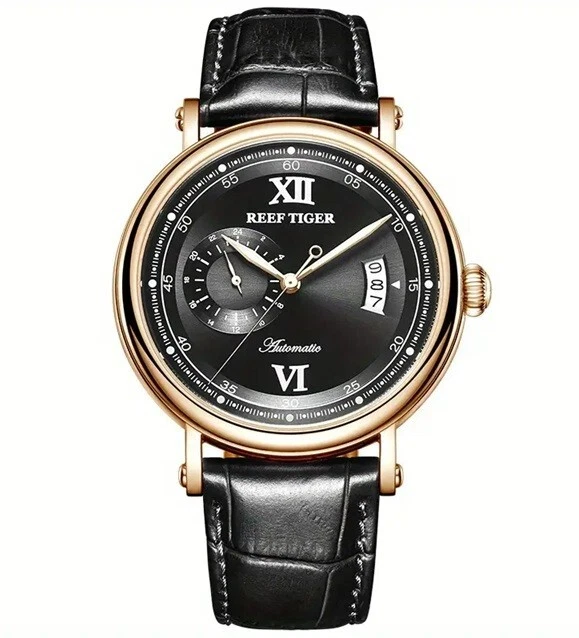New Reef Tiger Stylish Men's Automatic Mechanical Watch with Strap - Rose Black
