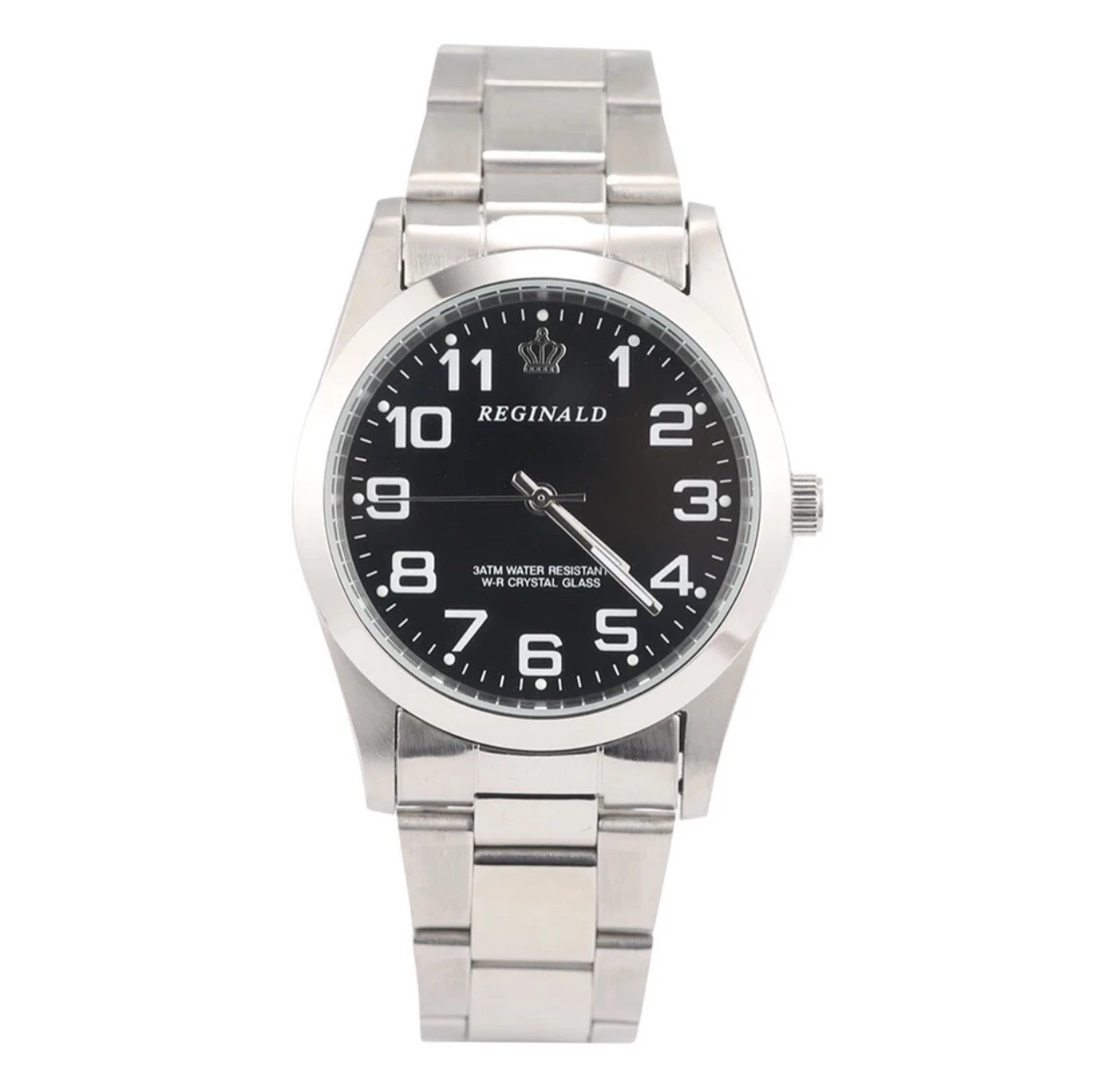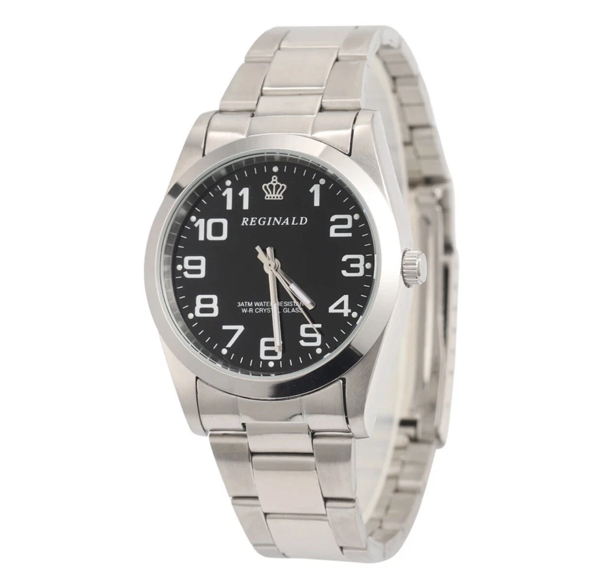 Reginald Mens Wrist Watch Black Silver White Analog Quartz New Battery. New