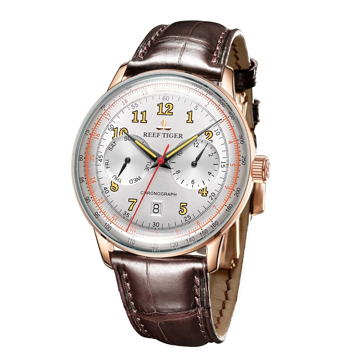 Reef Tiger Mens Luxury Watches 44mm Automatic Mechanical Wristwatch Multi Dial