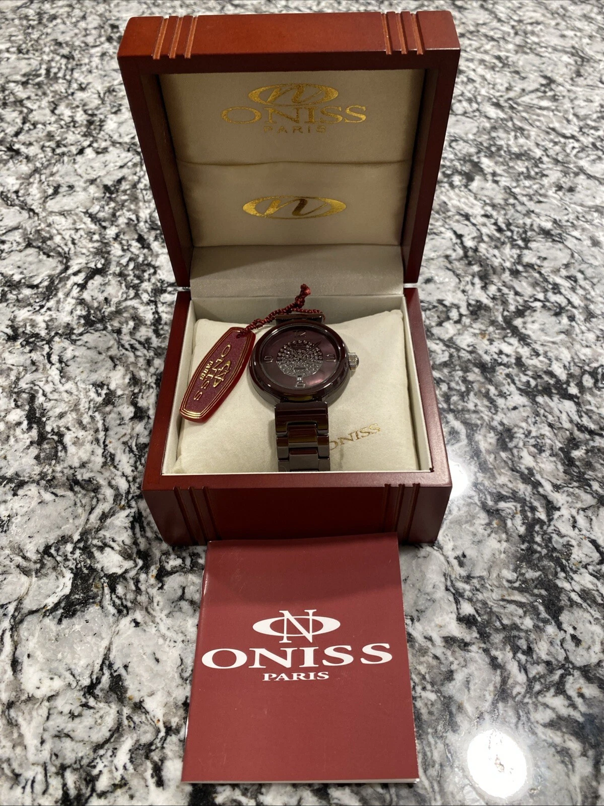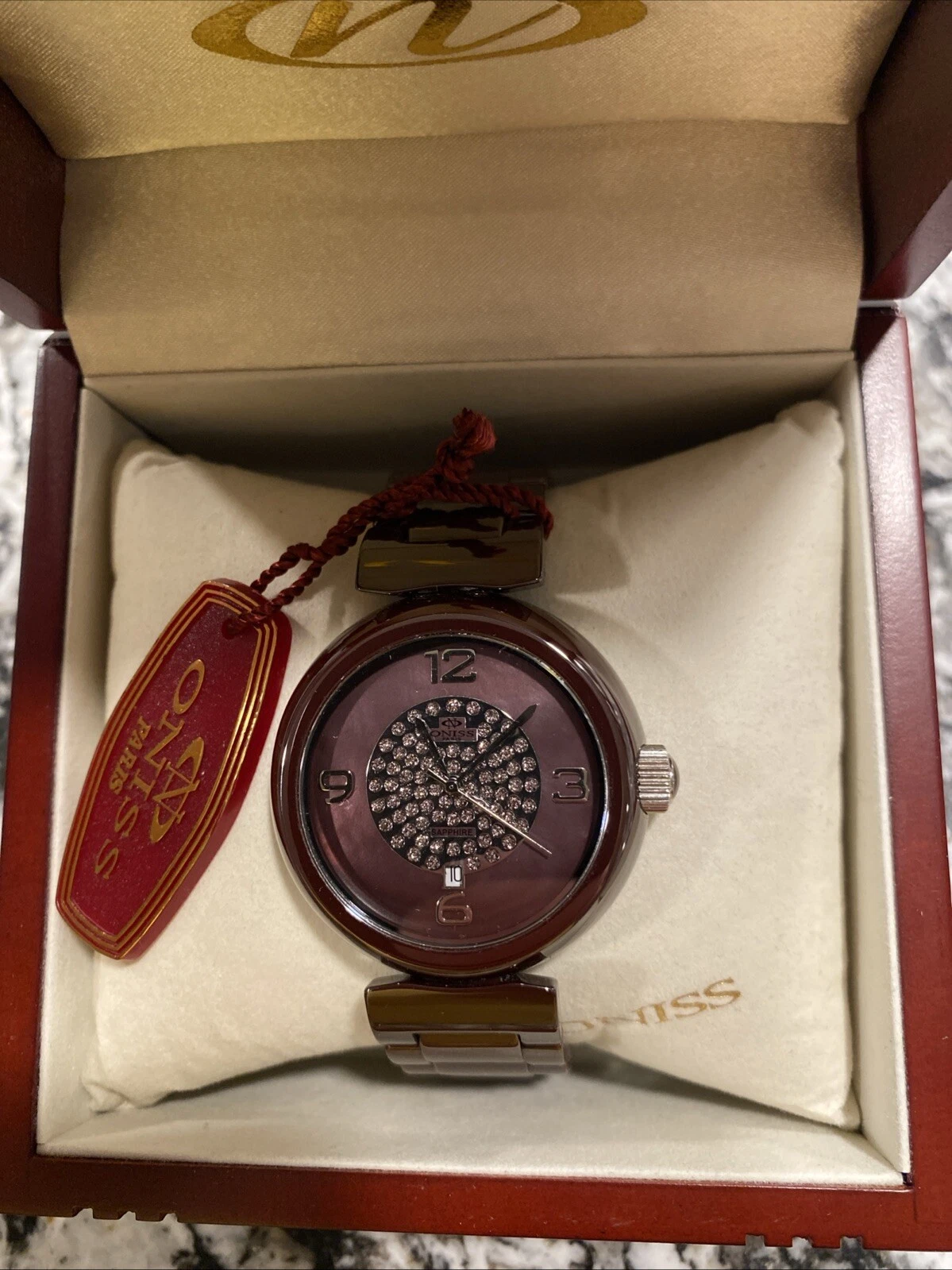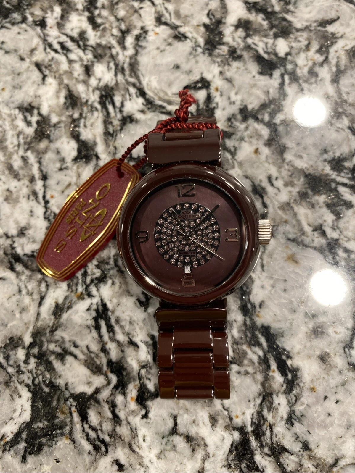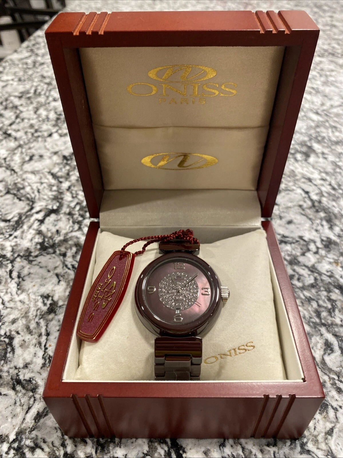 🔴🔴Oniss Paris Wine Ceramic Fuerte Collection MOP Dial Women’s Watch ON7703 LRG