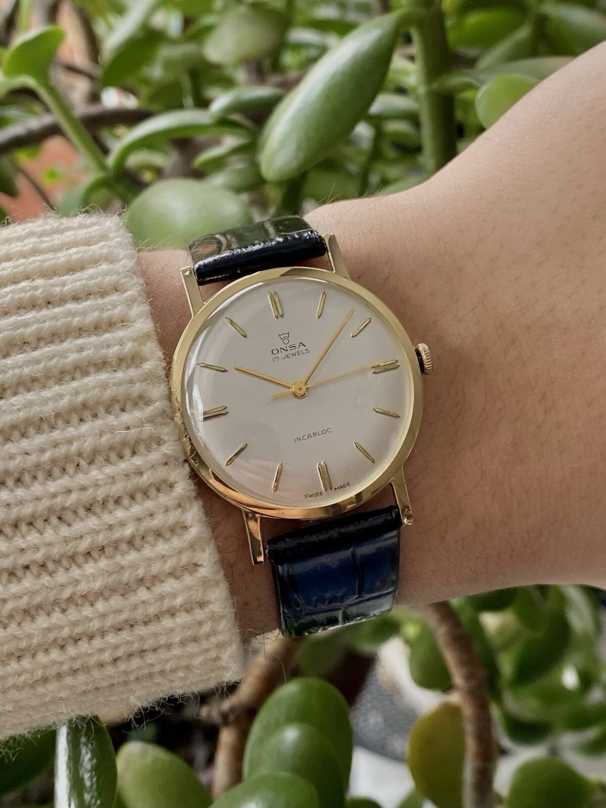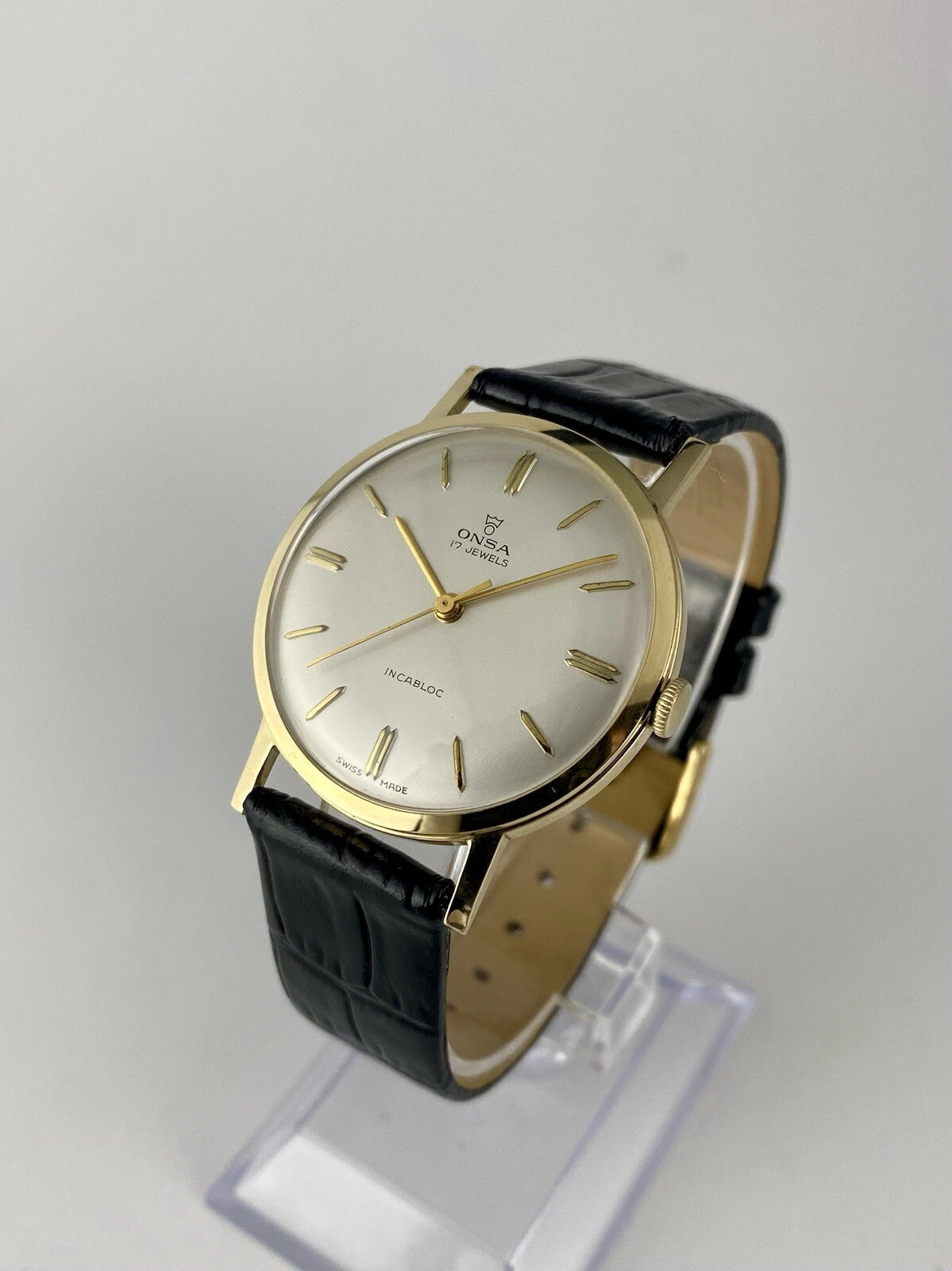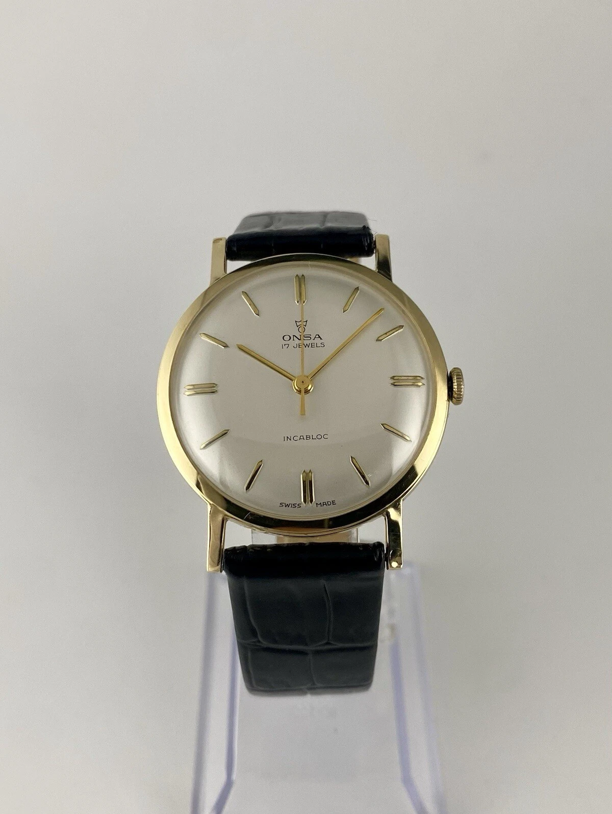 Vintage 14k Gold Onsa Incabloc Watch-1960s-Runs-Swiss Made-17 Jewels