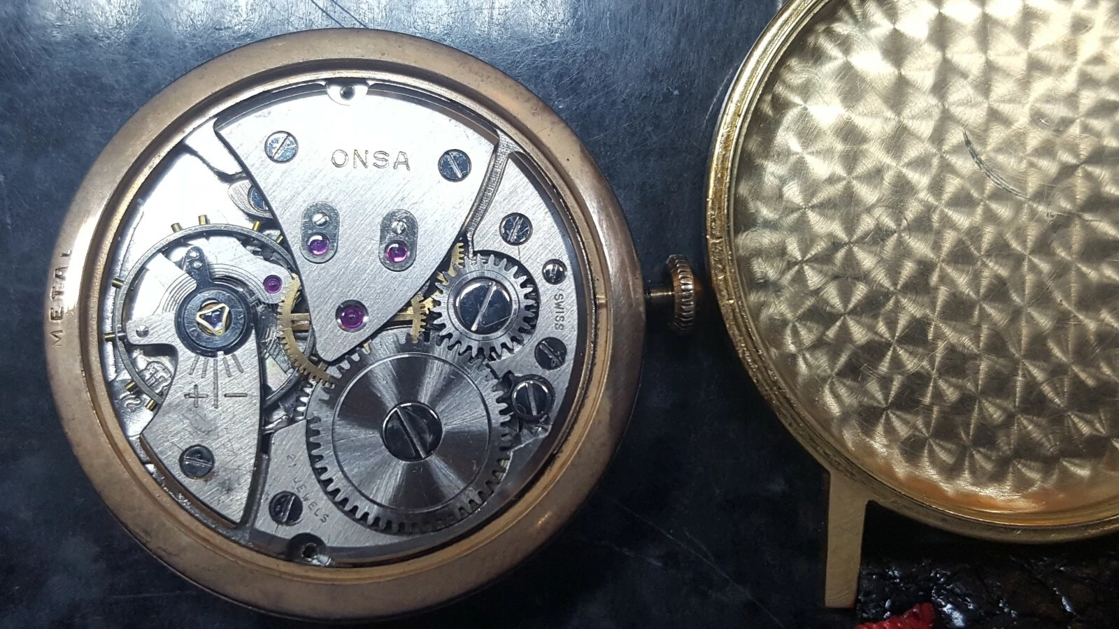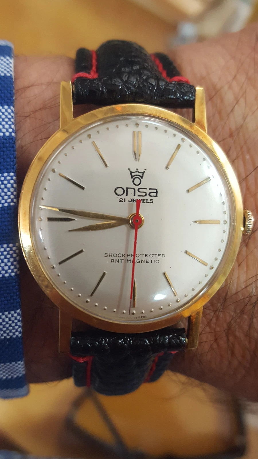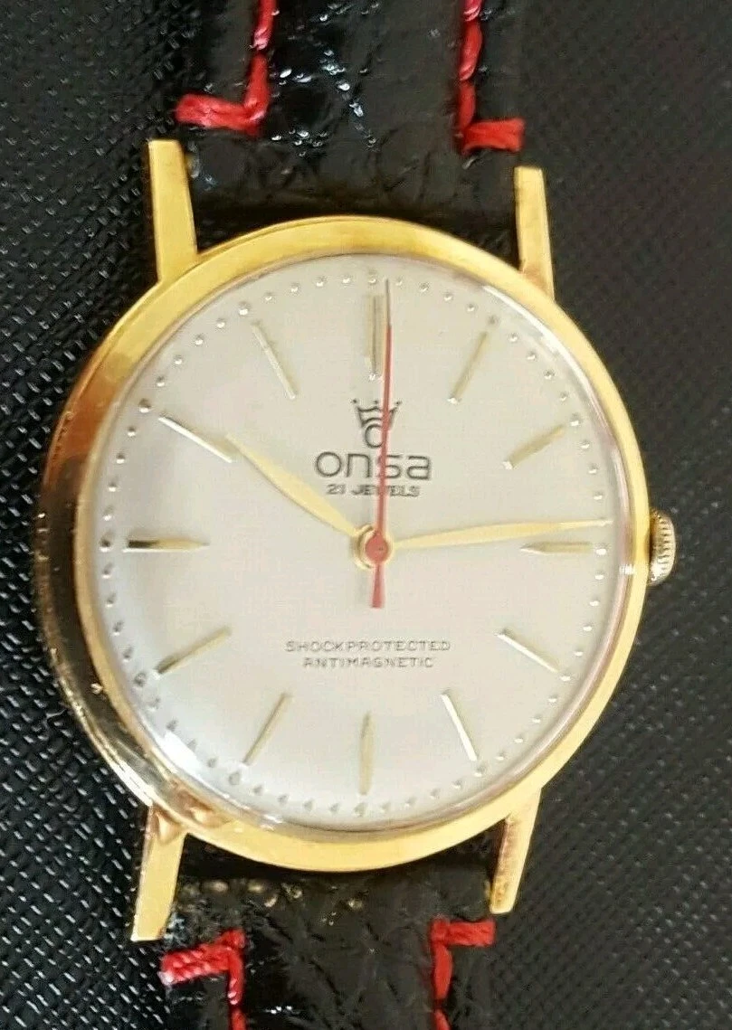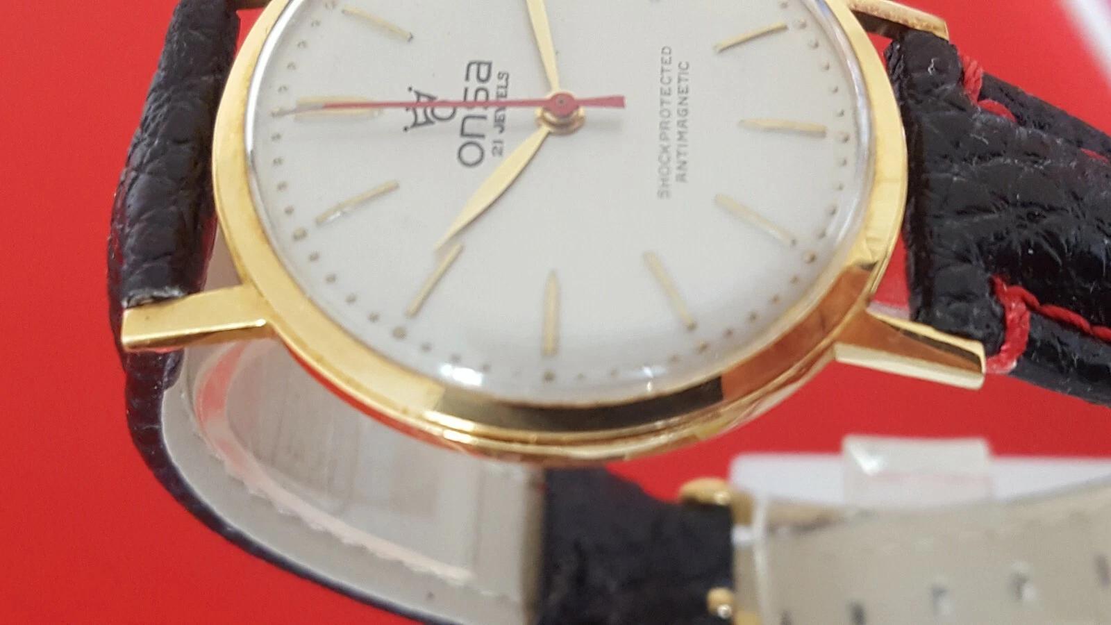 ONSA 18K GOLD VINTAGE 21 JEWELS MANUAL WIND WATCH