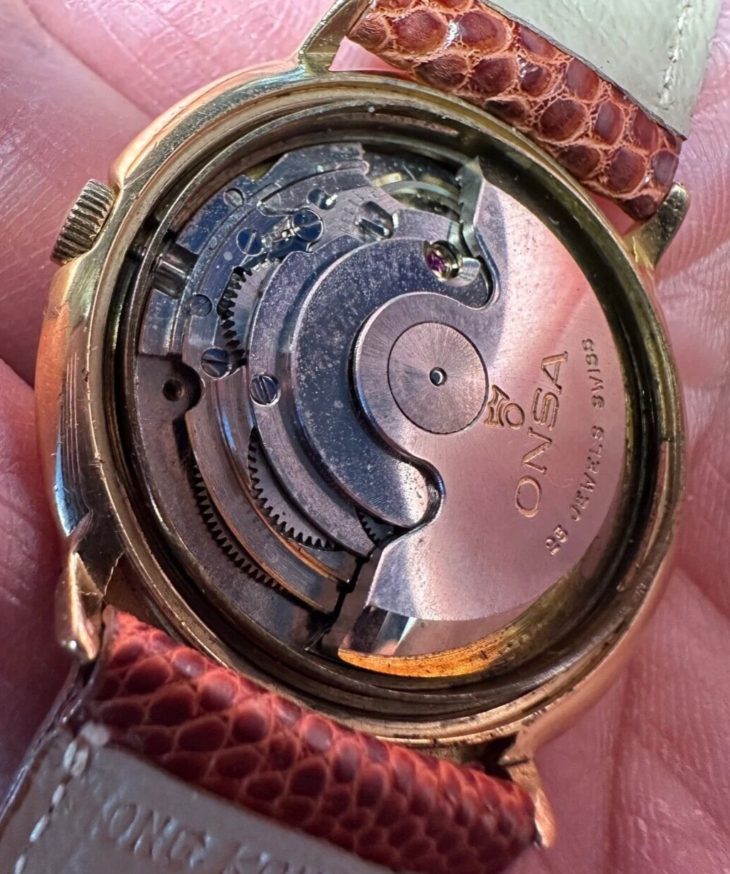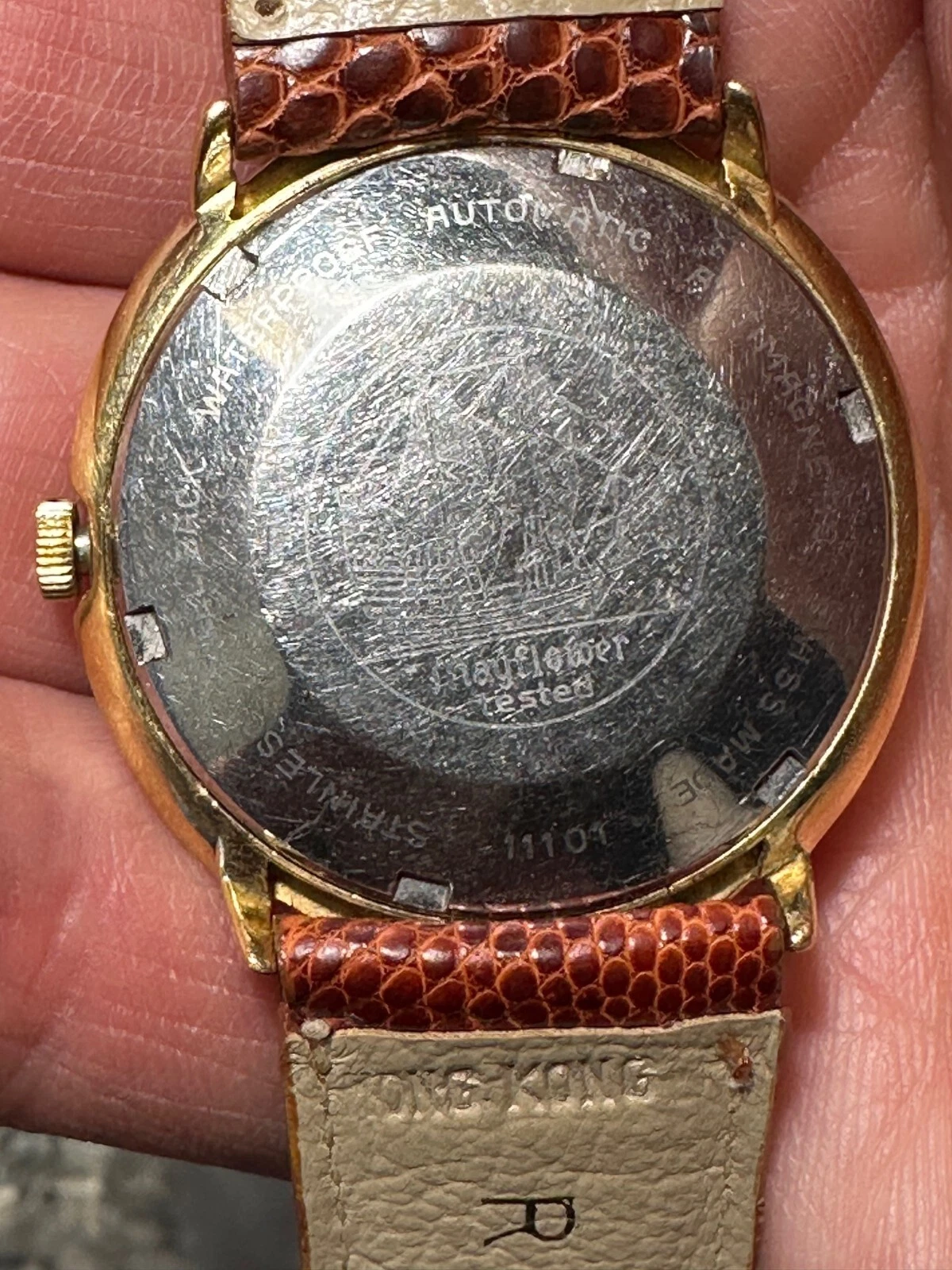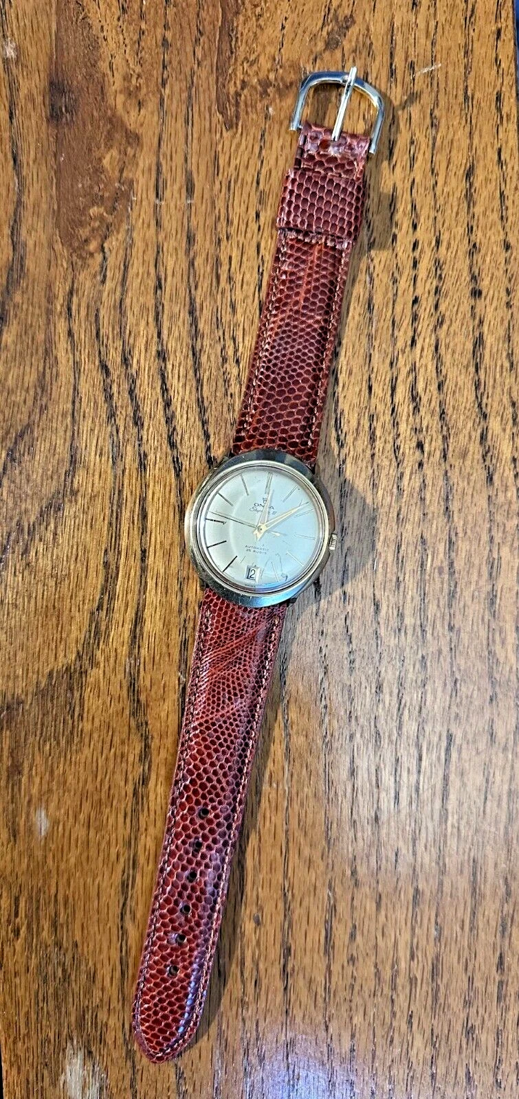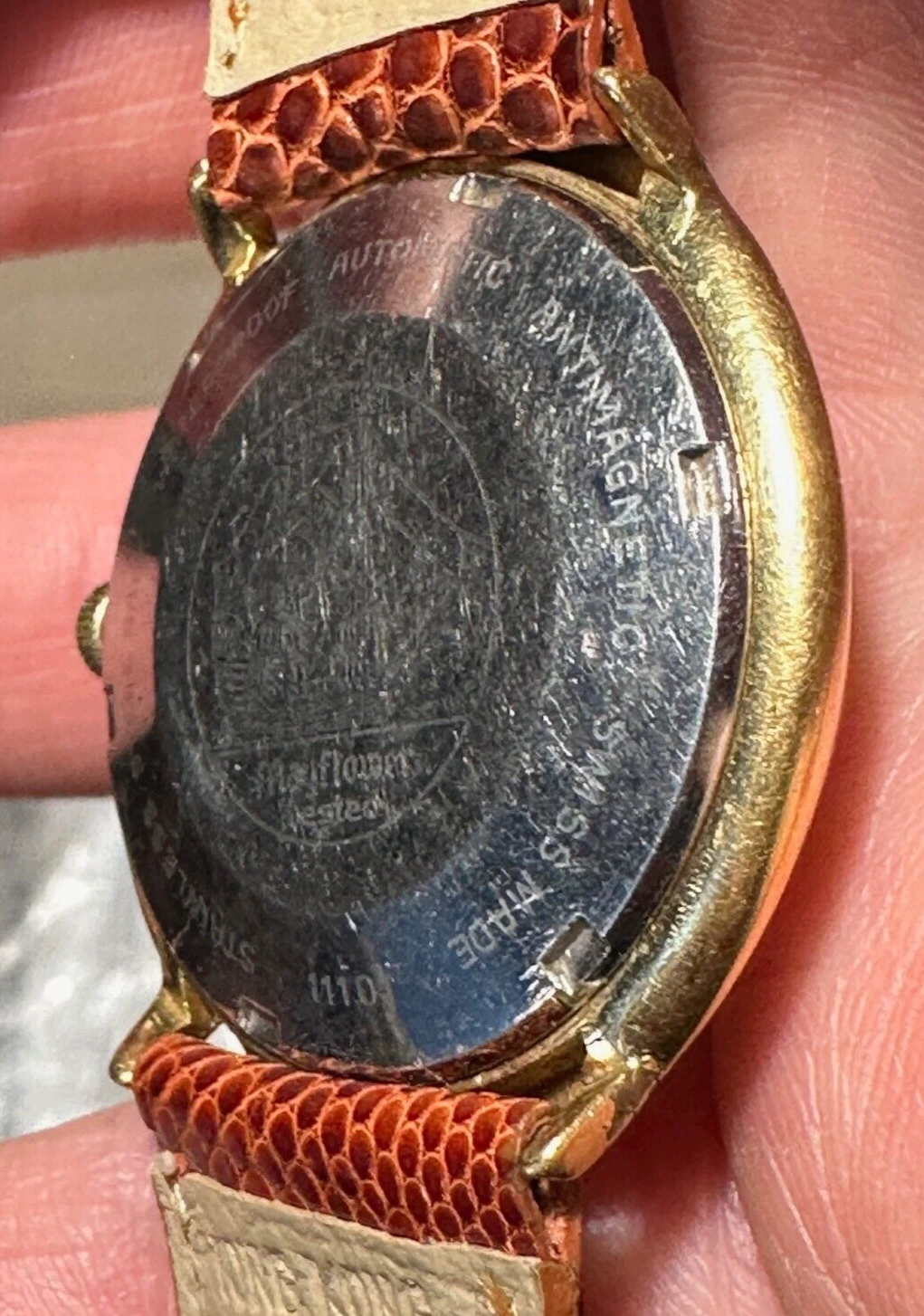 Onsa Shipman III Automatic Date 25 Jewels New Crystal & Leather Band Gold Plate
