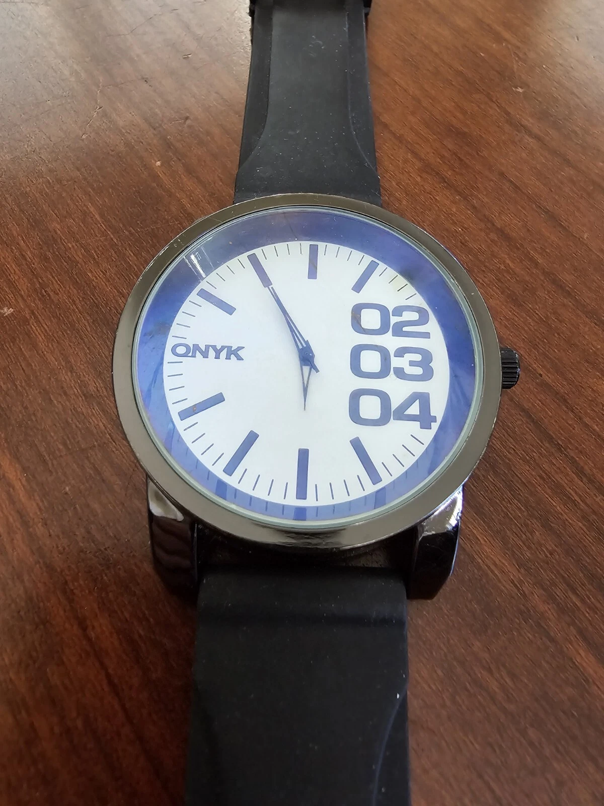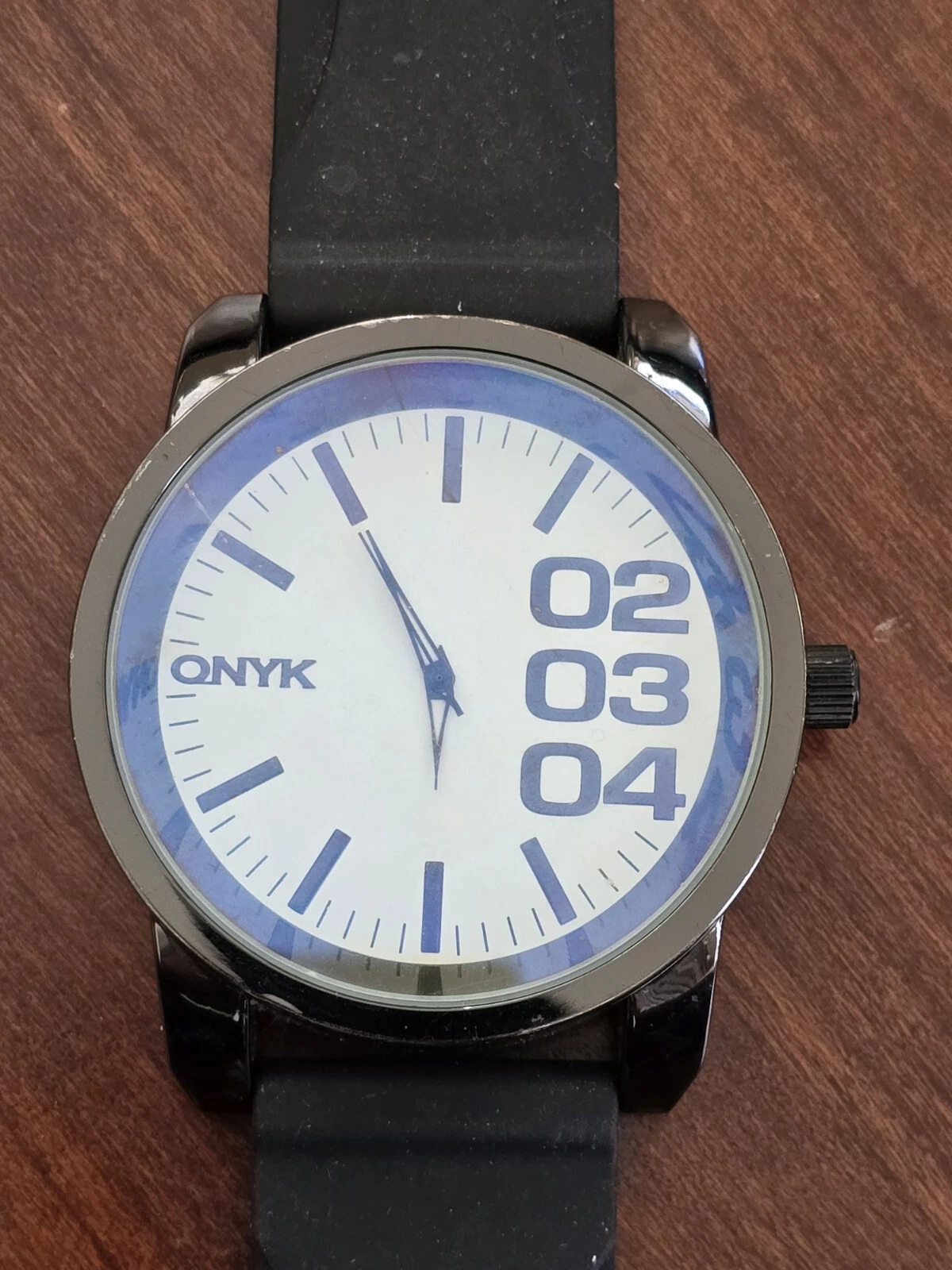 Vintage ONYK White Blue Watch BIG FACE Quartz DIAL CASE BAND STEEL BACK CHINA