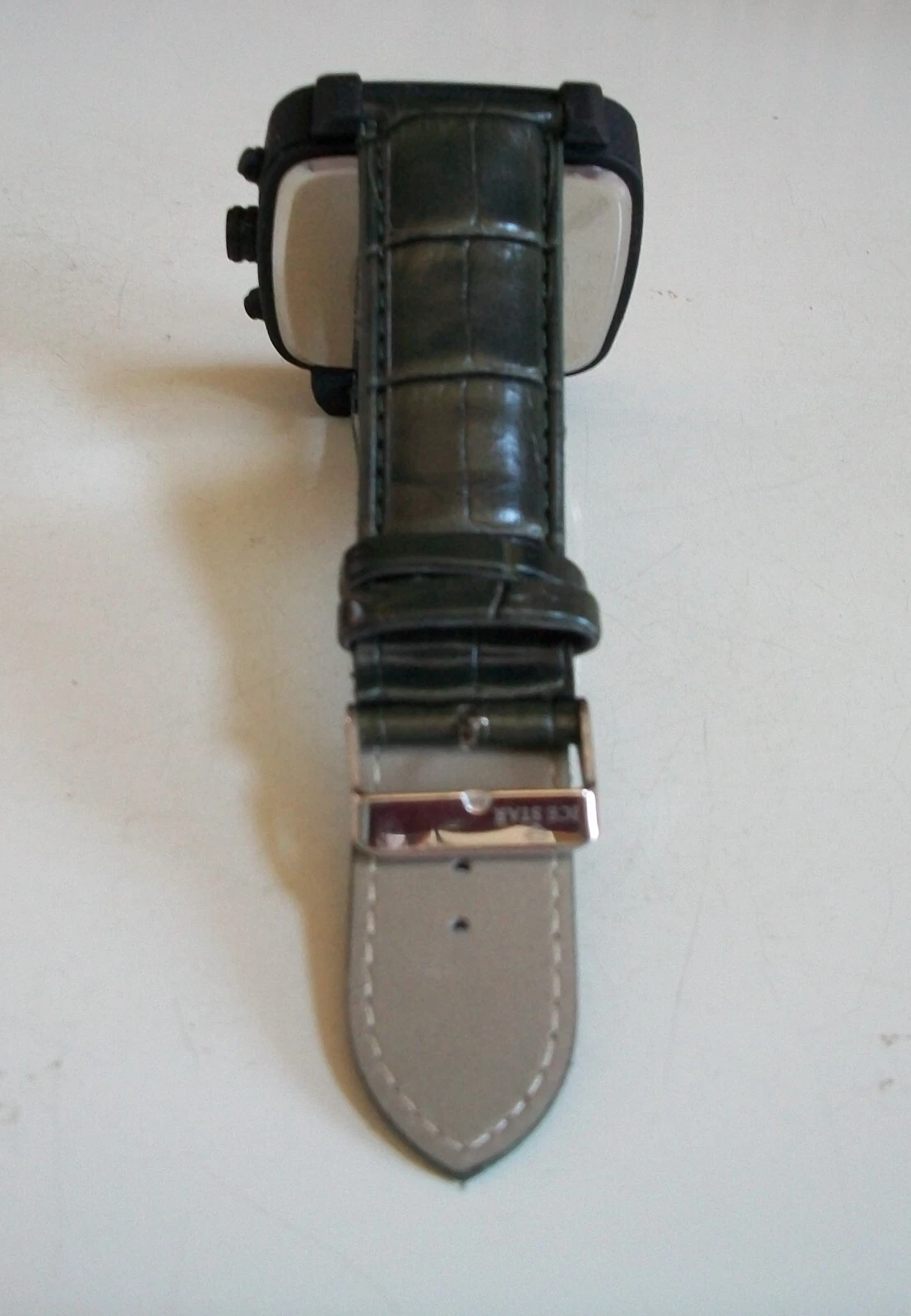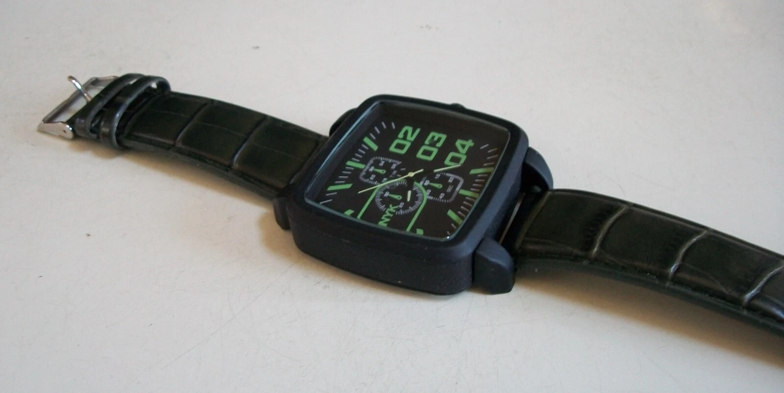 Men's Casual Wear Black Trim Green Leather Band Fashion Hip Hop Watch