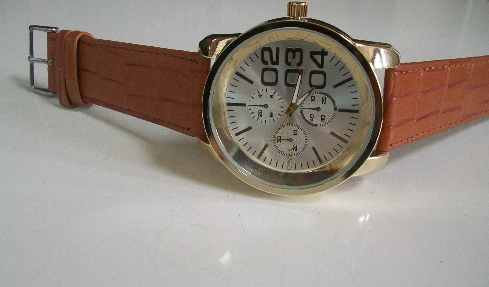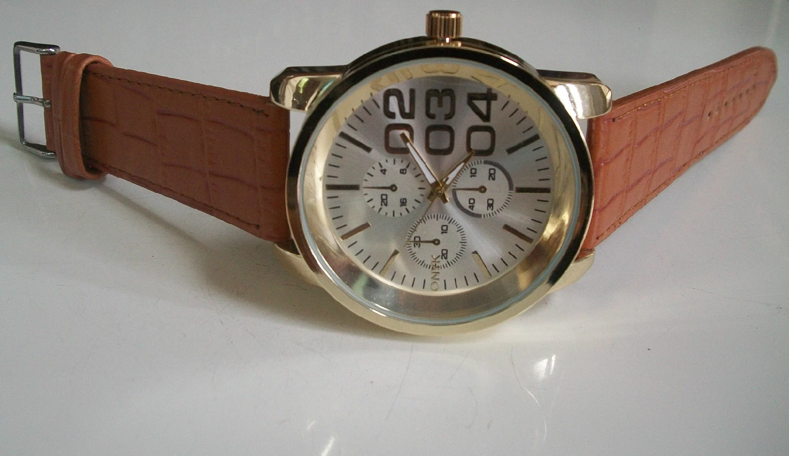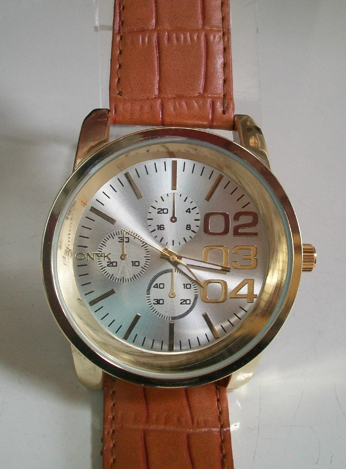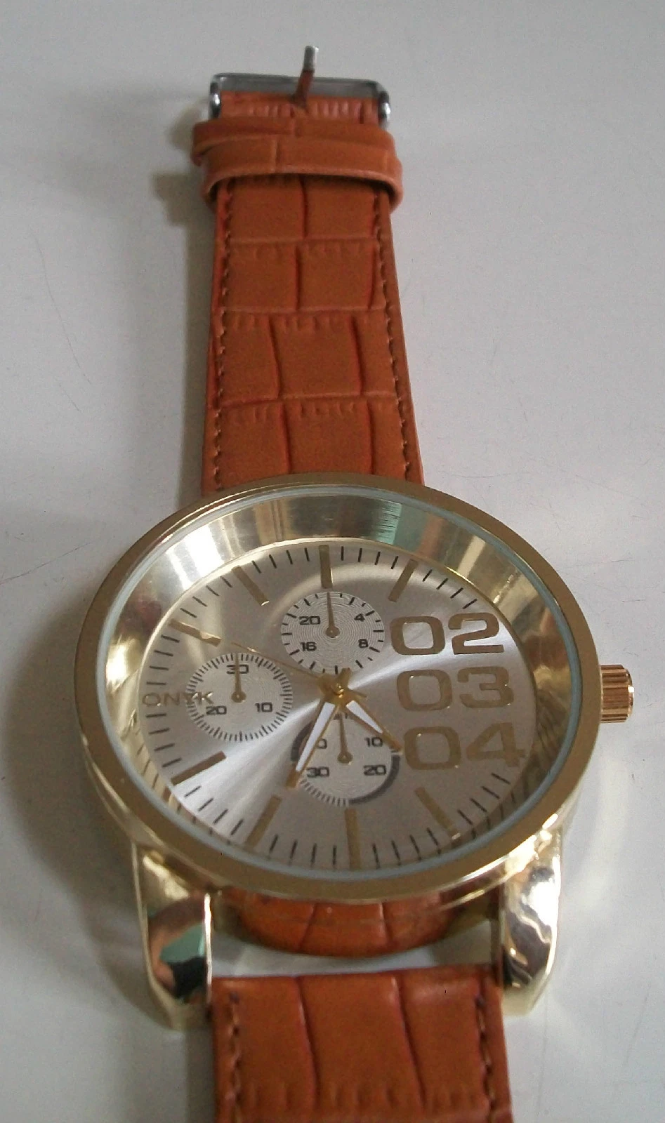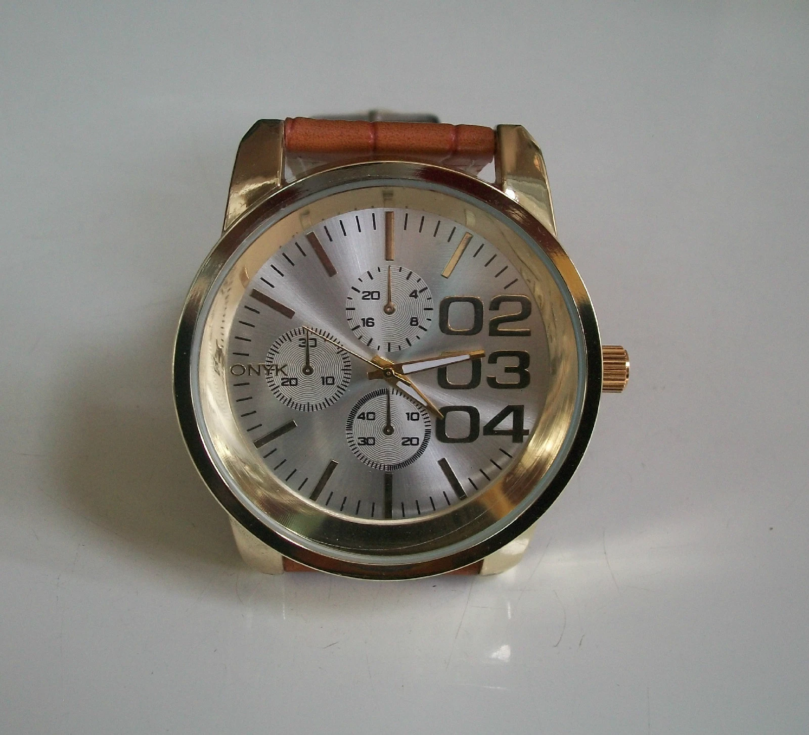 Men's ONYK Gold Finish With Leather Band Fashion Dress Up Or Casual Watch