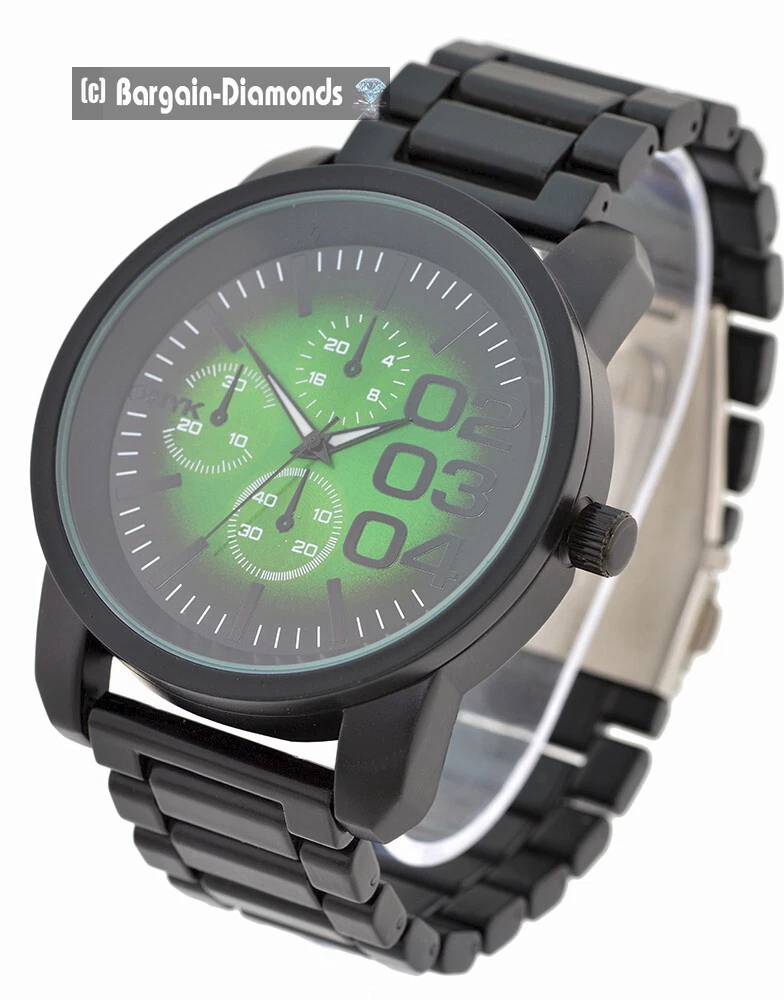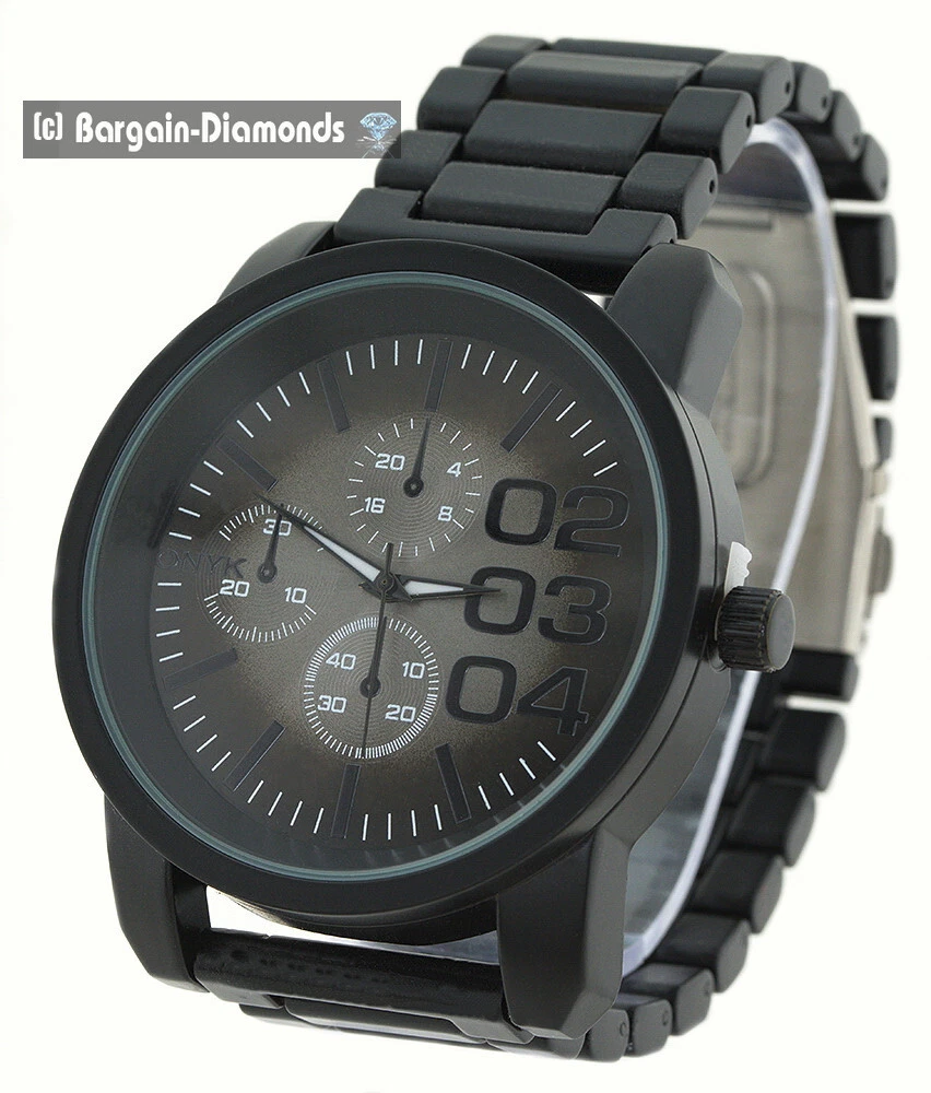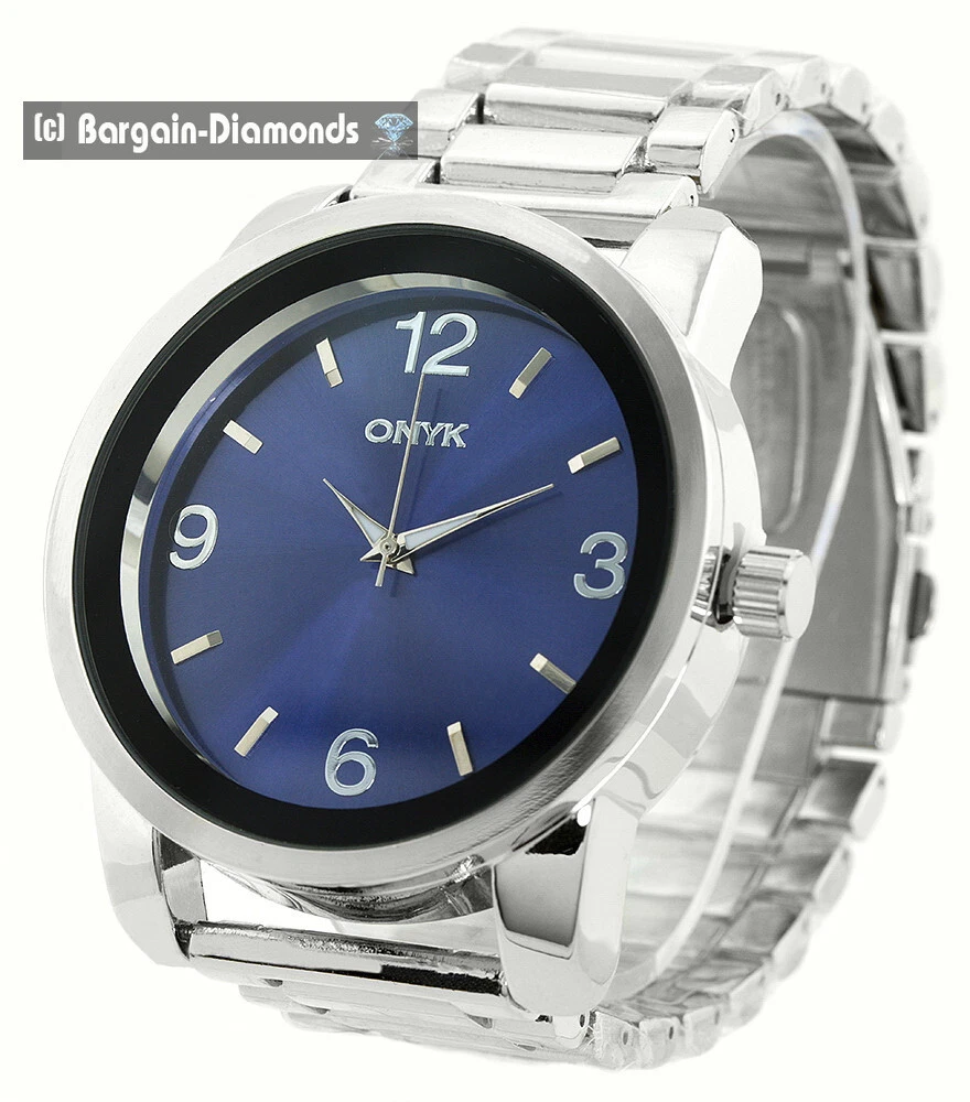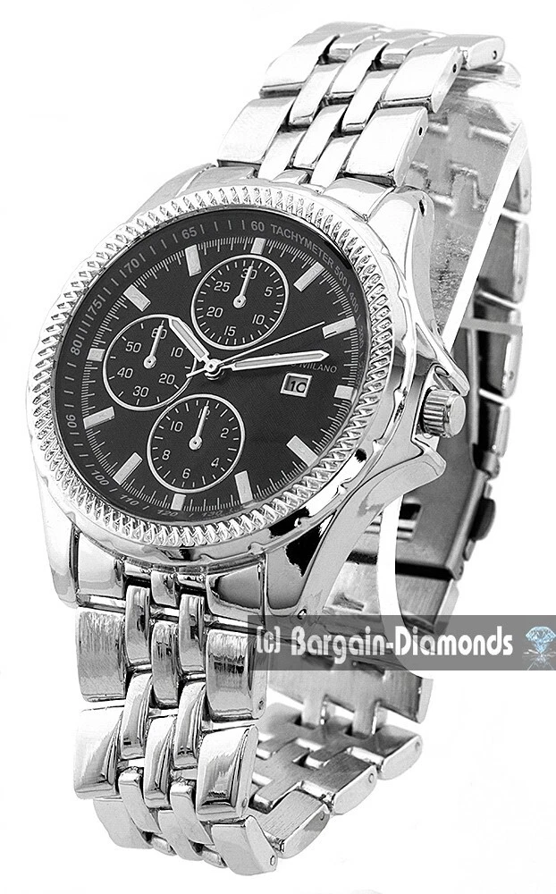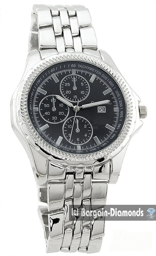 Mens 47 mm Silver Black Calendar Clubbing Watch Link Bracelet up to 8.5" Wrist