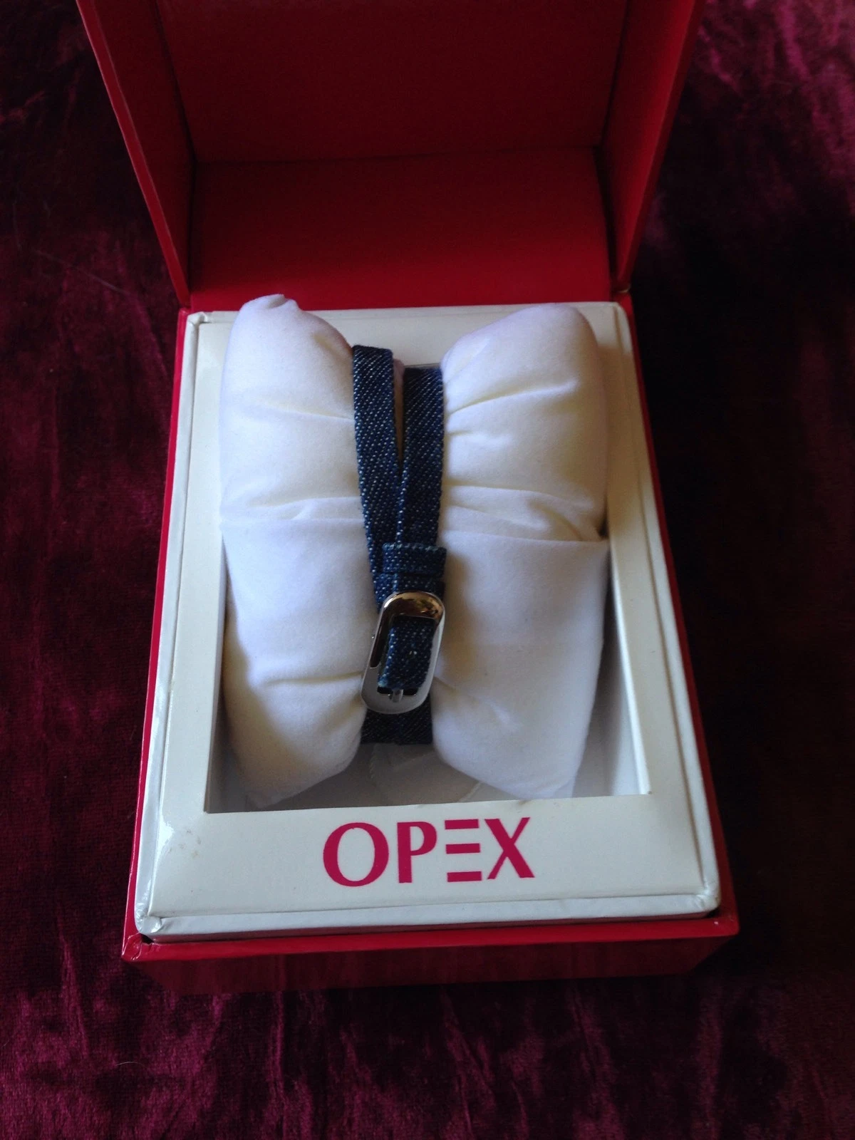 New French Designer OPEX 'Ballerina' Denim Leather Extra Long Strap Watch