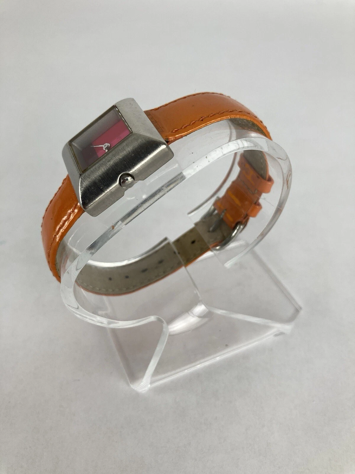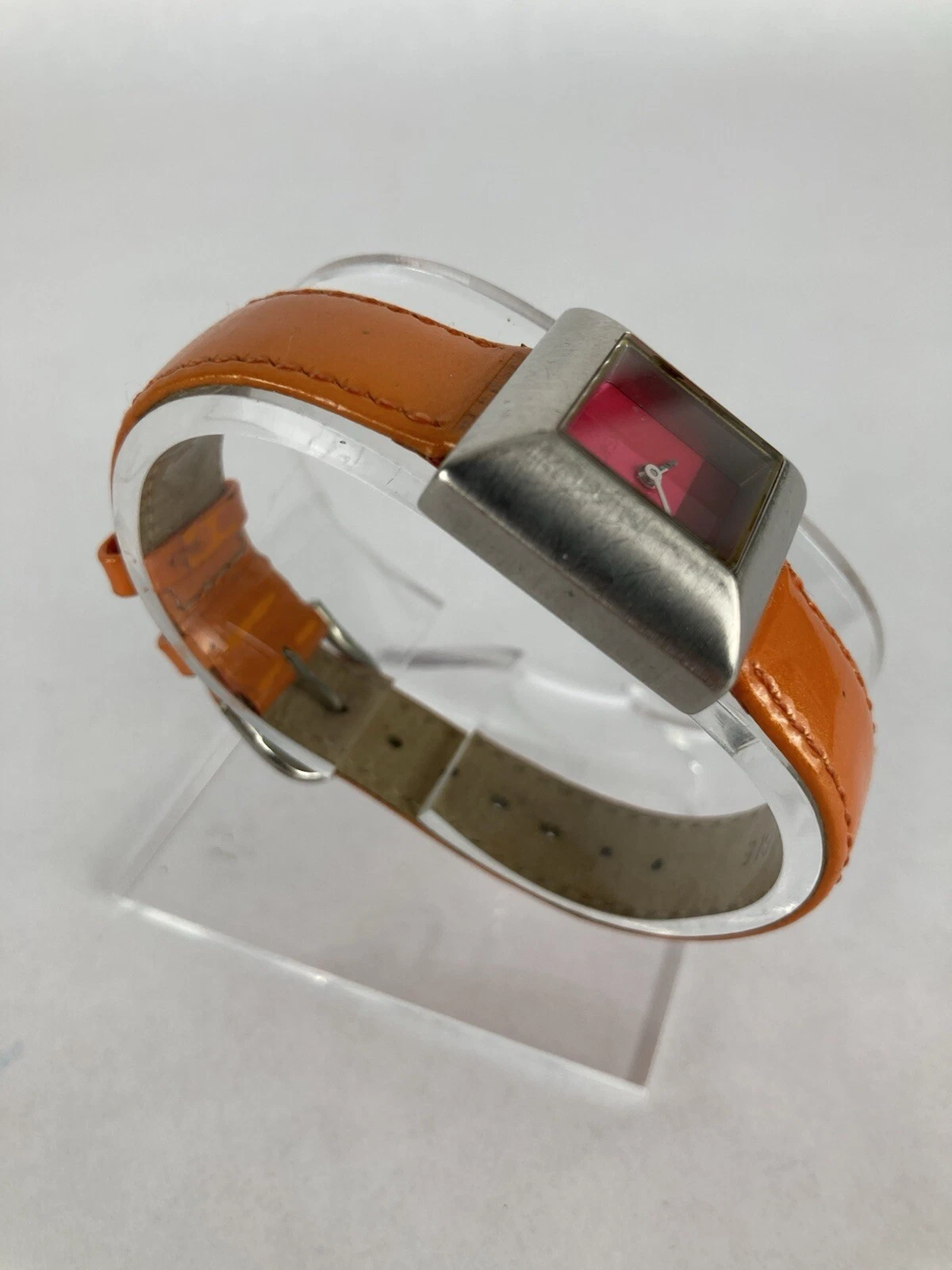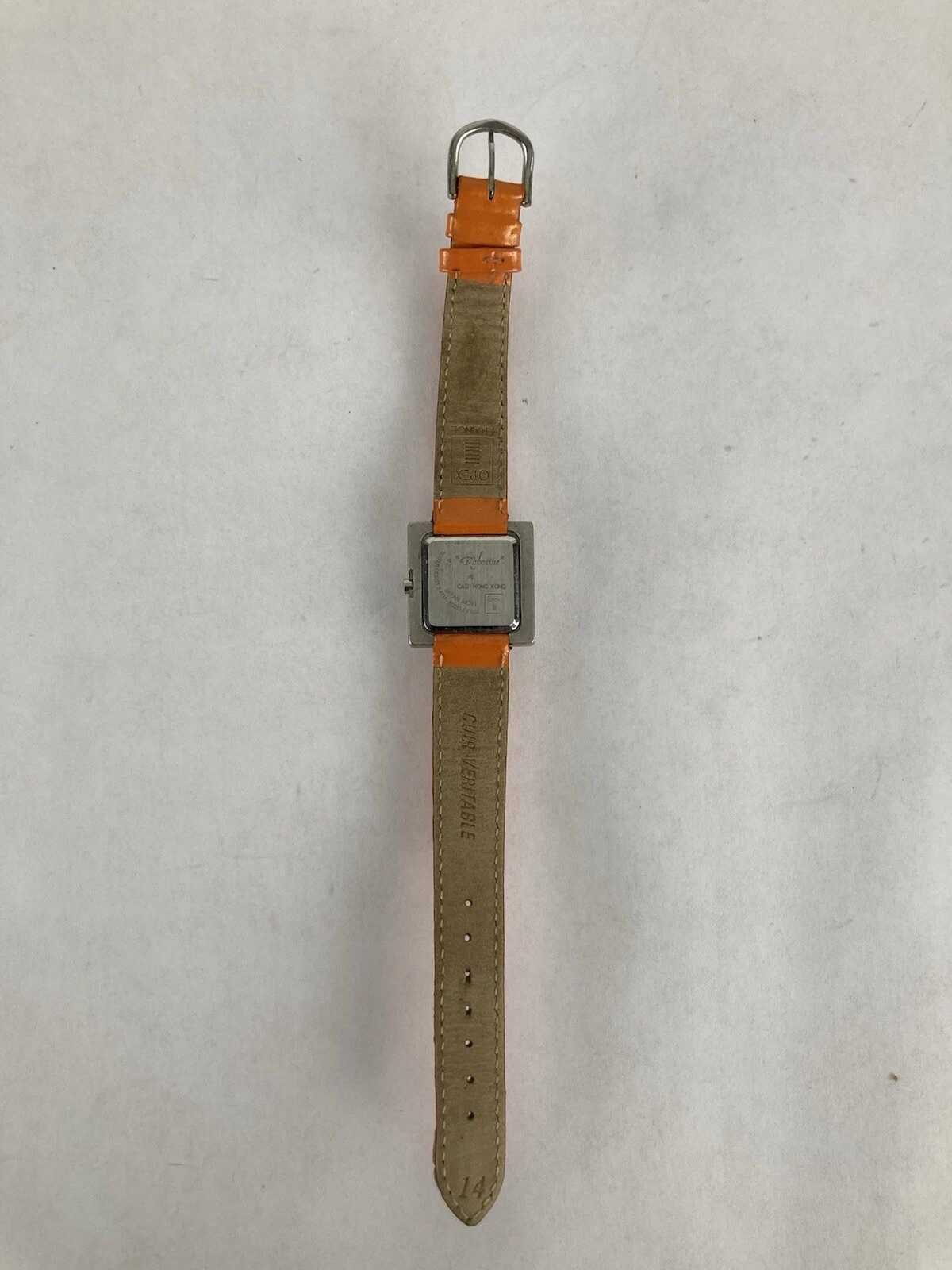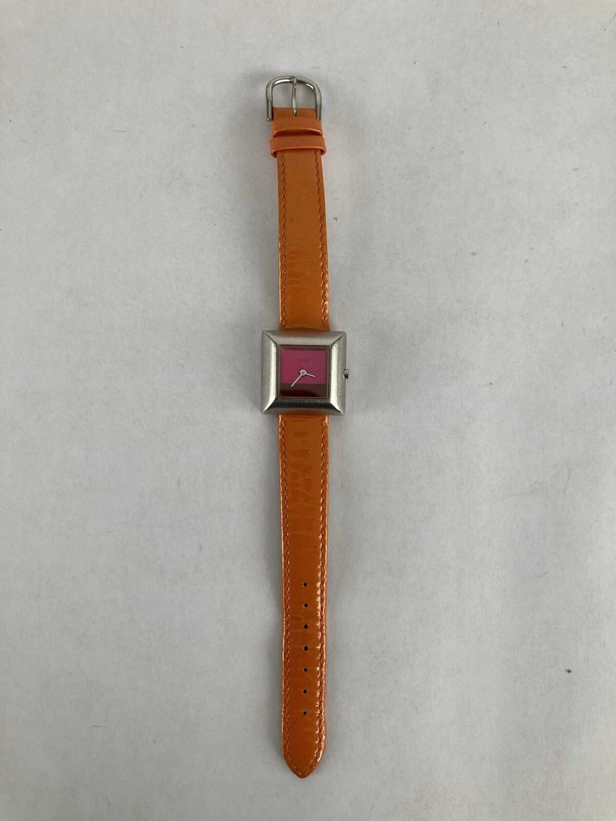 Opex “Kabotine” 25mm Silver Tone Quartz Watch w/Orange Leather Band & Battery