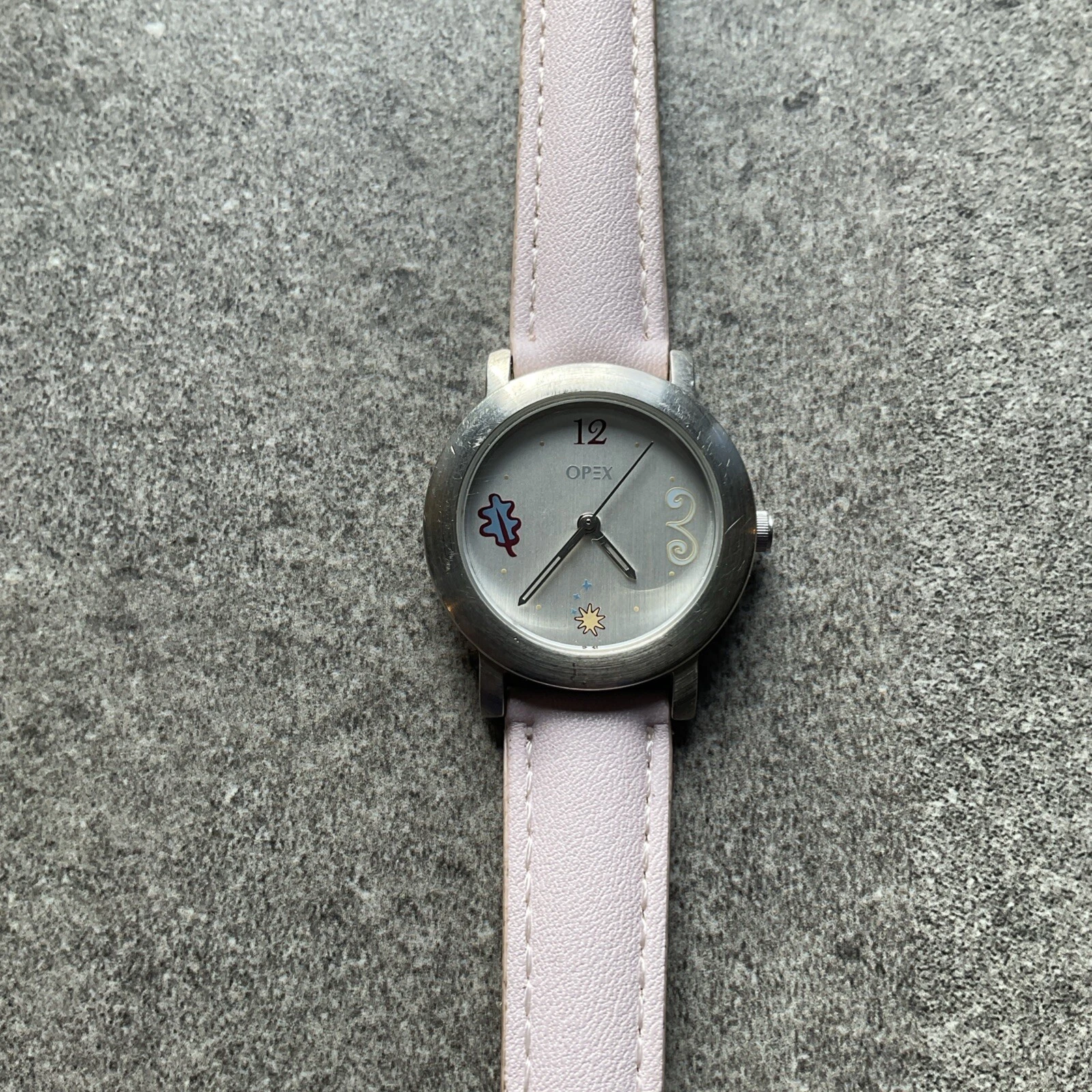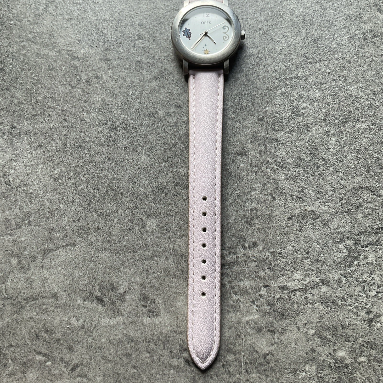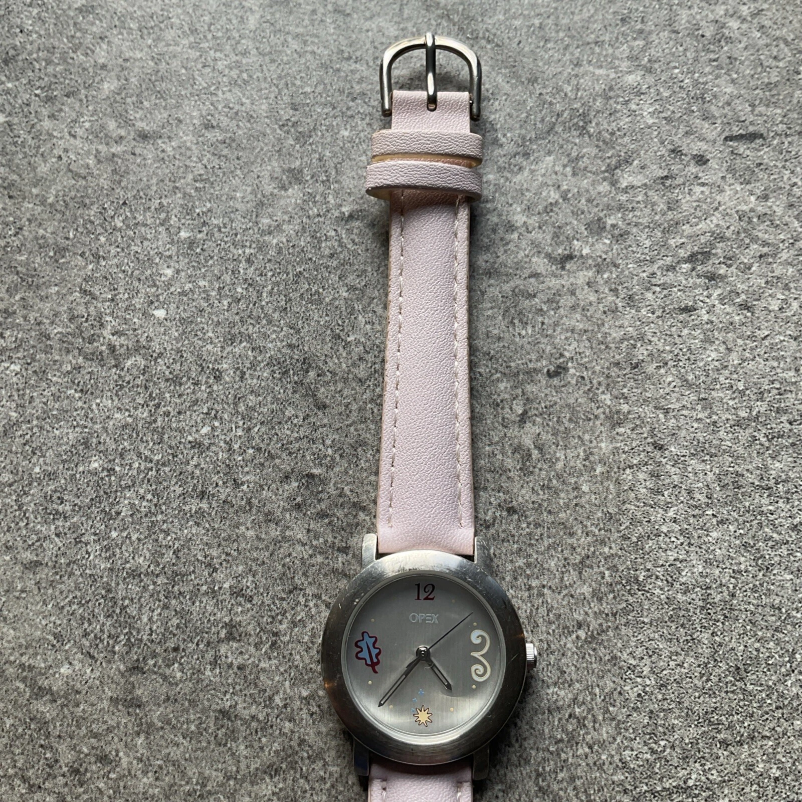 Beautiful Vintage Opex Womens Watch 28mm Silver Tone Case With Pink Band A14