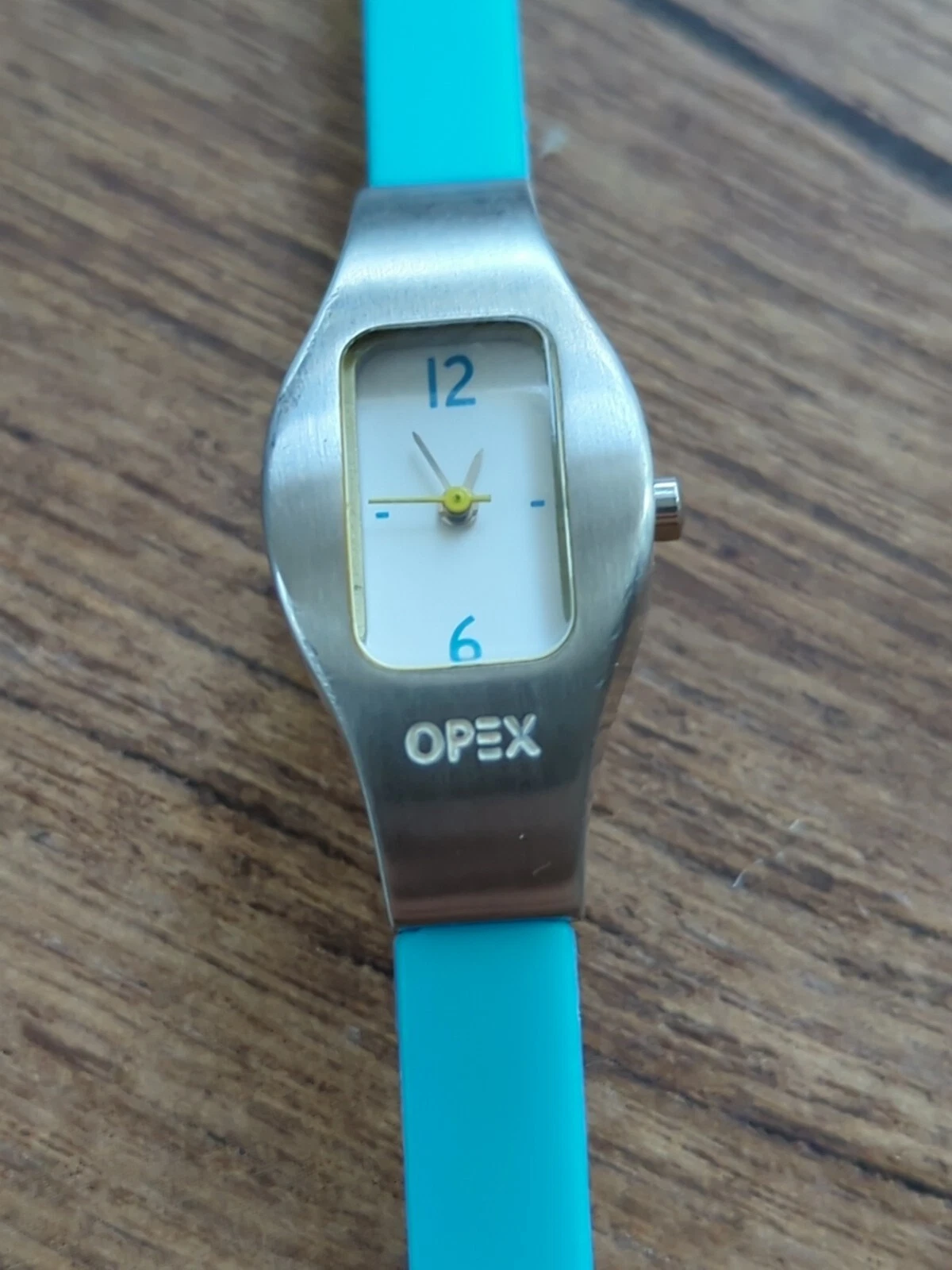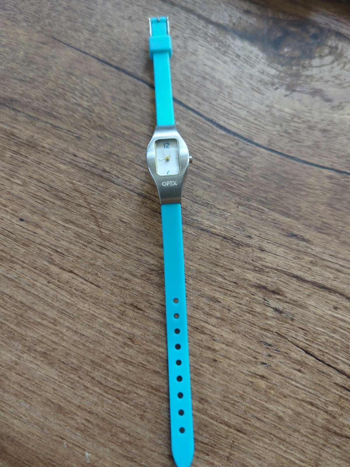 OPEX KALINE WATCH WITH Turquoise Plastic Band NWOT New Battery Running