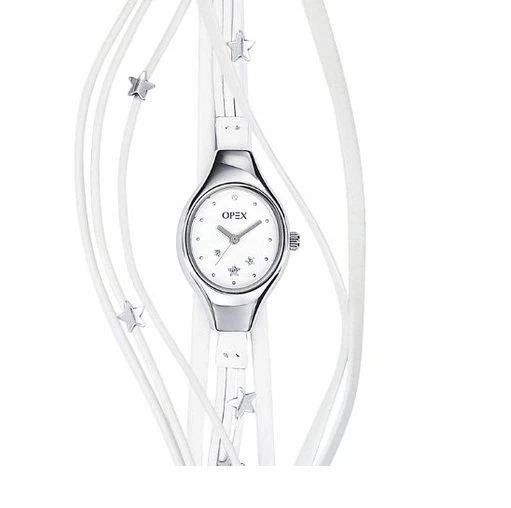 OPEX FILANTE SILVER,WHITE LEATHER WRAP AROUND BAND,DIAMOND FRANCE WATCH-X2341LD6
