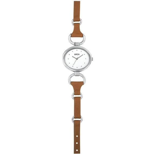 NEW OPEX PARIS MY BUTTERFLY SILVER TONE,BROWN LEATHER BAND,OVAL WATCH X3731LA2