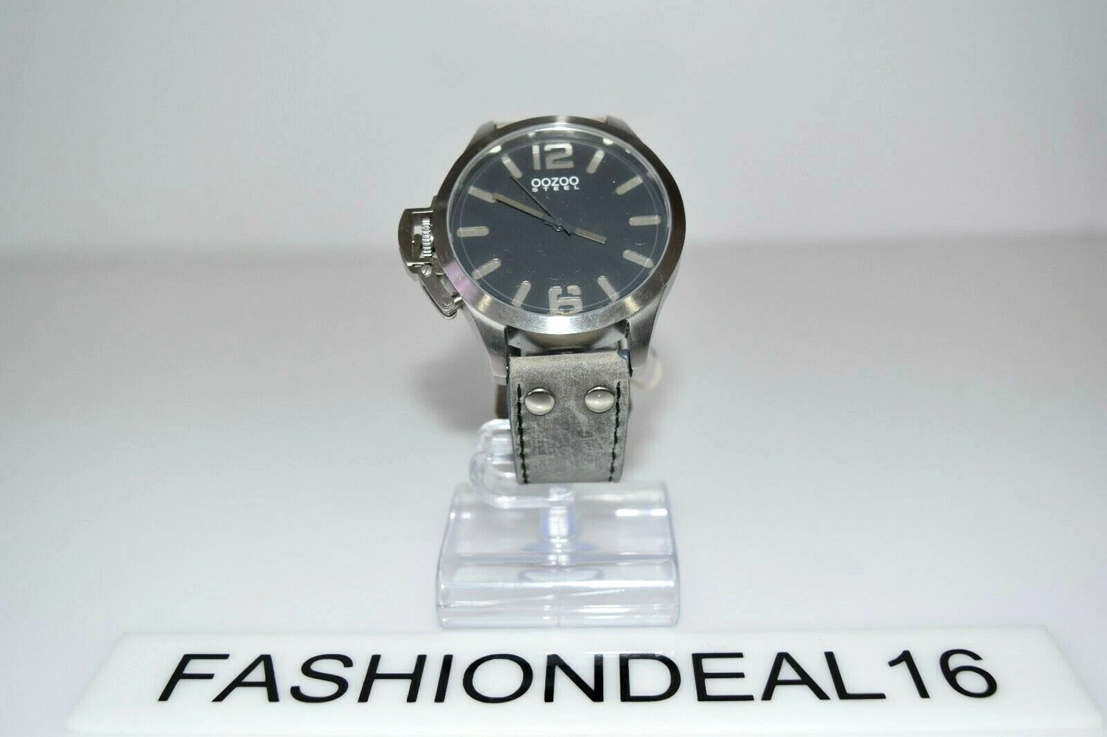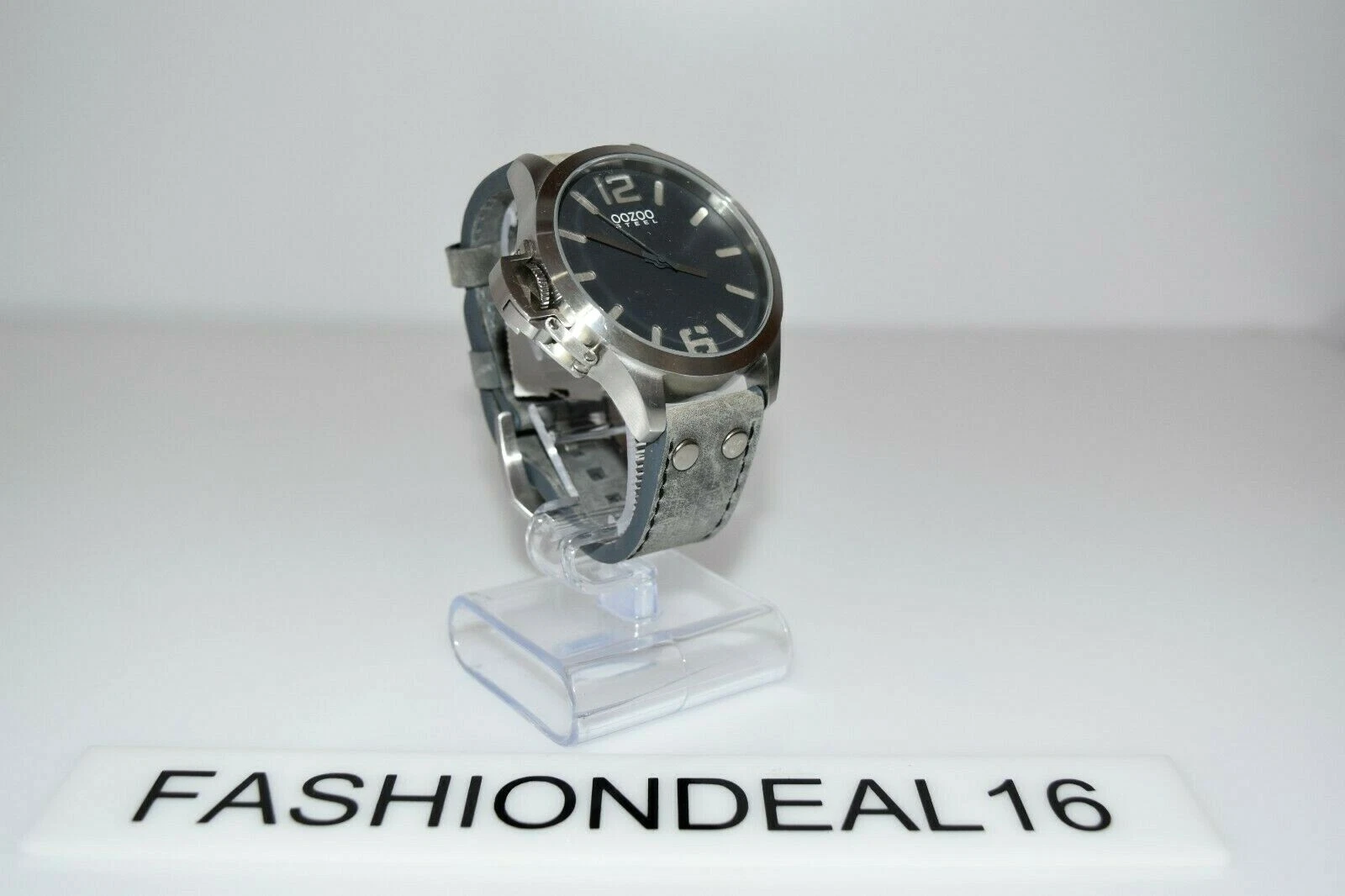 Oozoo Authentic Steel Lefty Aged Gray Leather SS OS259 Oversized $Watch