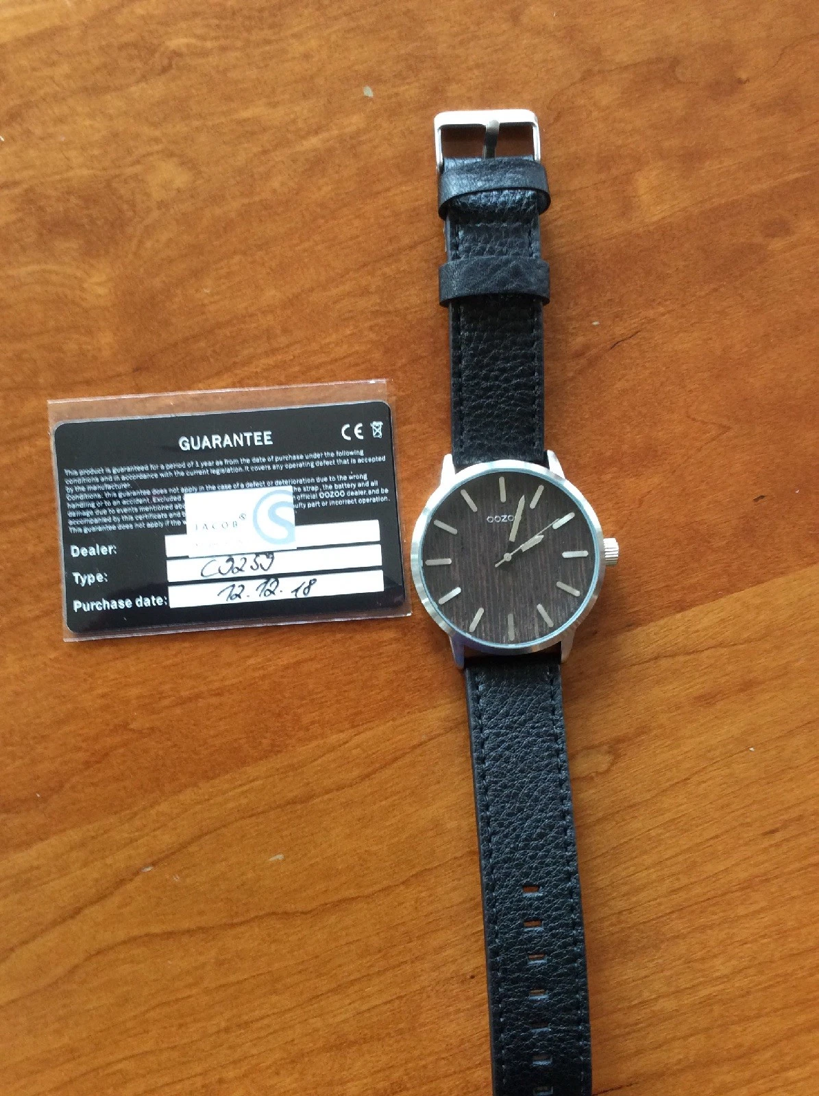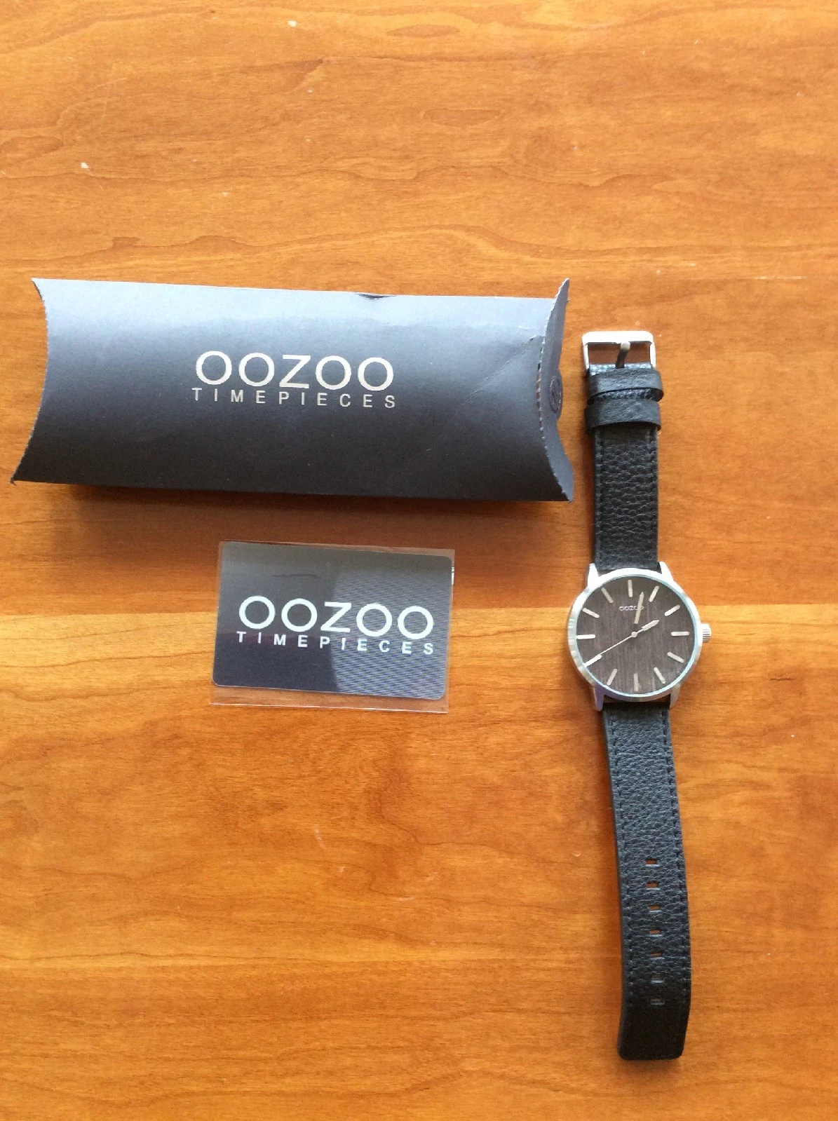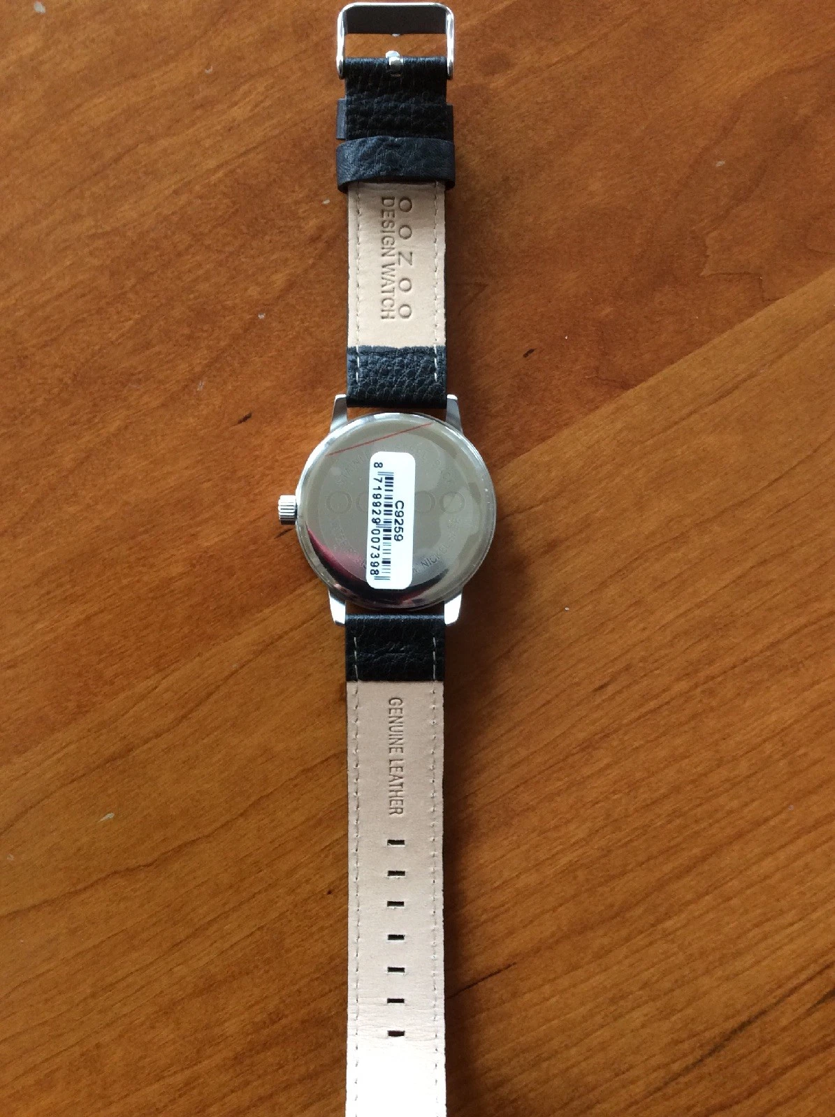 Oozoo chronograph watch Genuine Black Leather Strap - Water Resistant Nickel