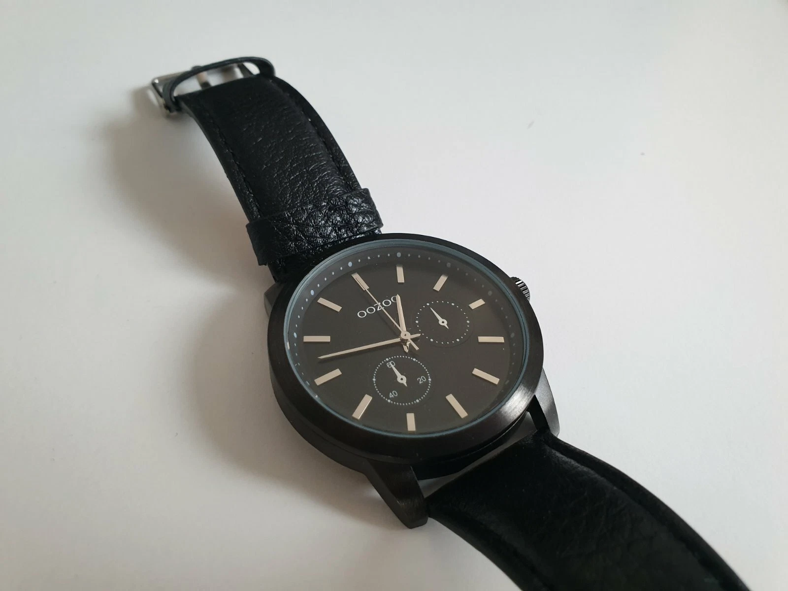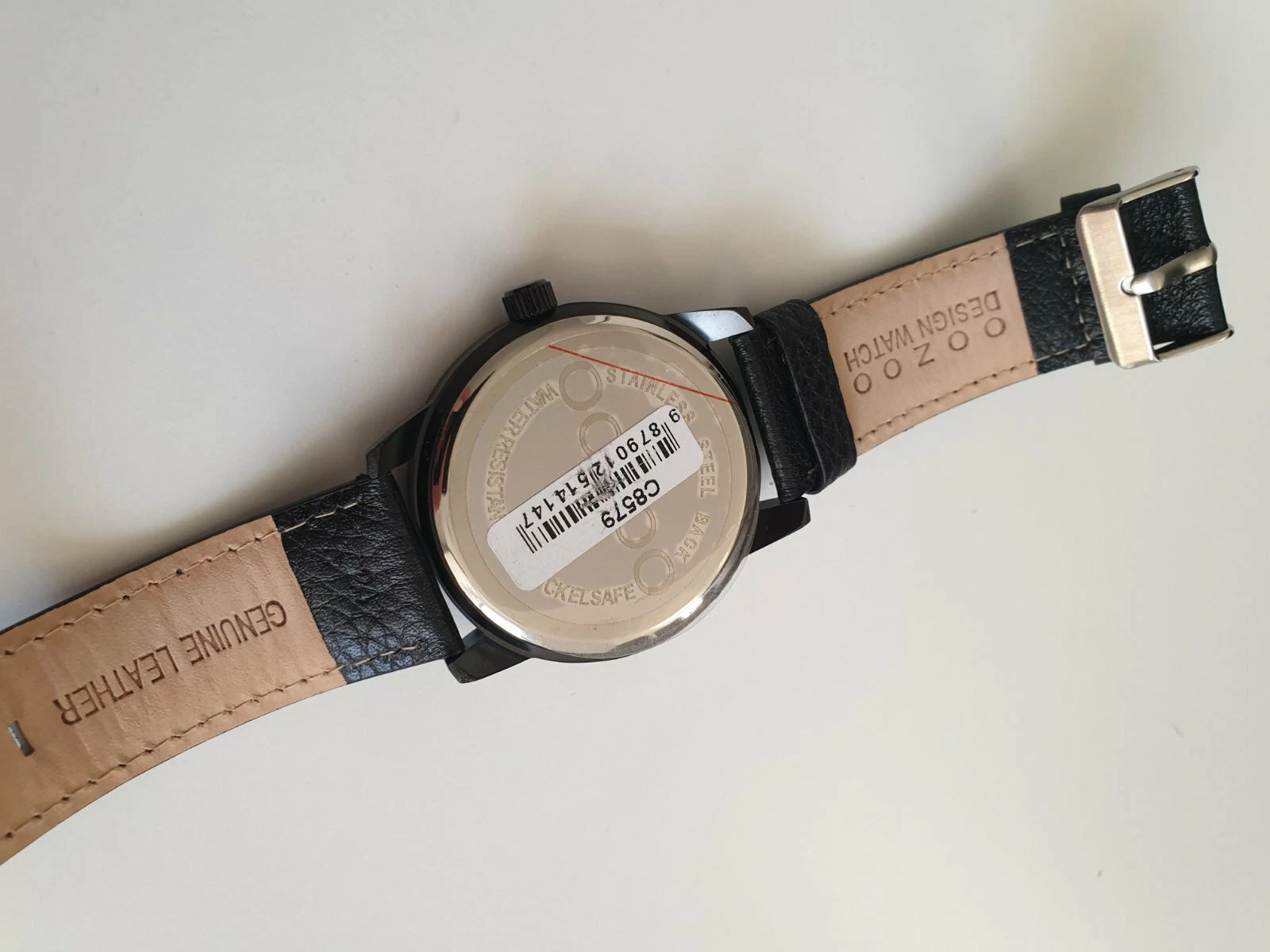 OOZOO C8579 men wristwatch NEW UNUSED black leather strap, 47mm timepiece