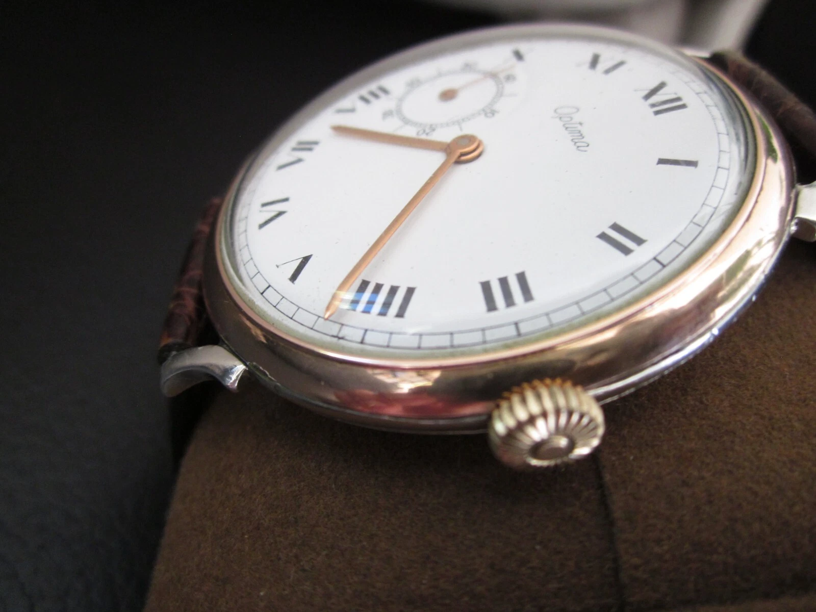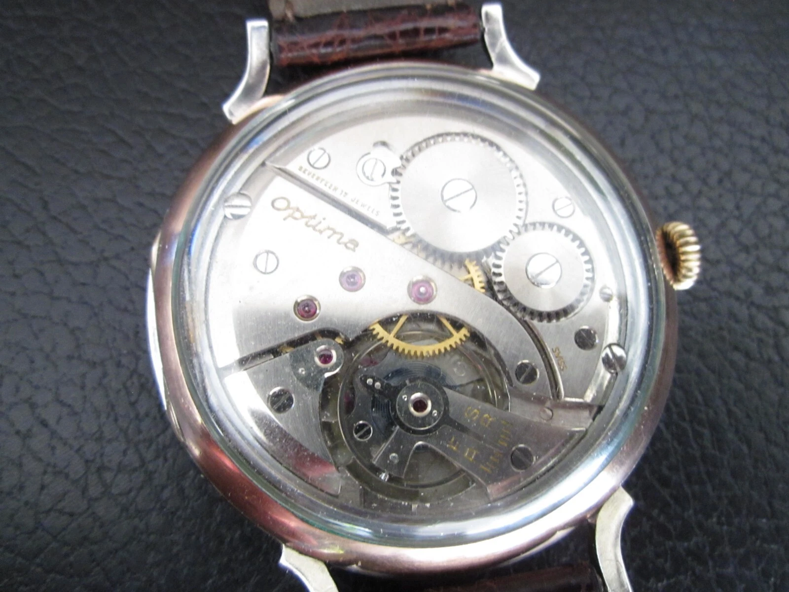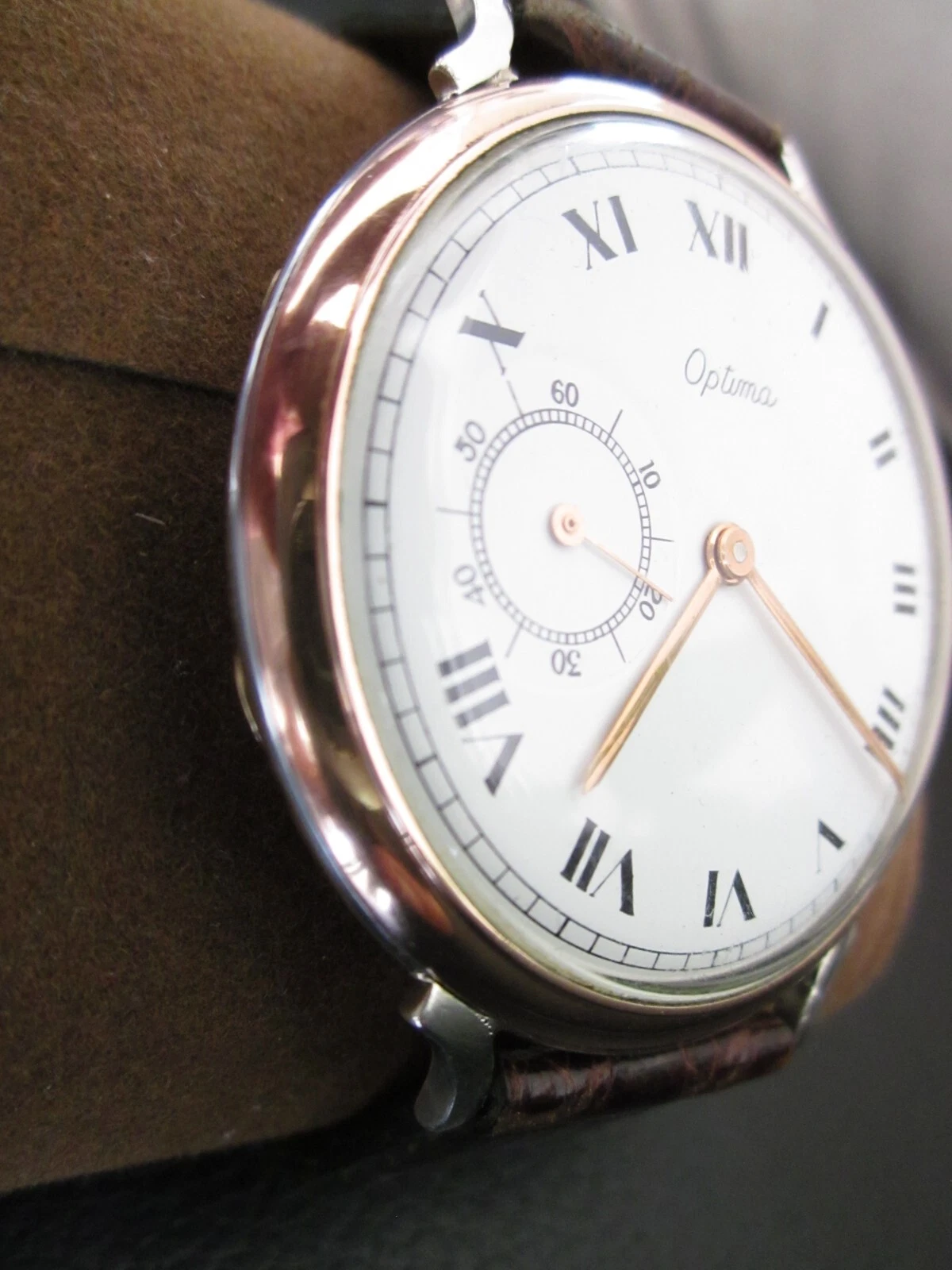 VINTAGE OPTIMA OVERSIZED 2 INCHES CLASSIC DRESS MEN WRIST WATCH RARE
