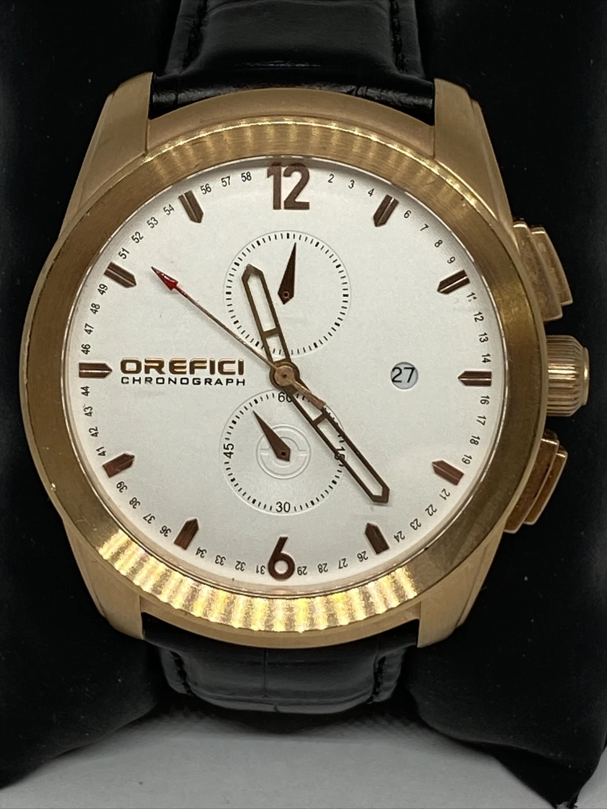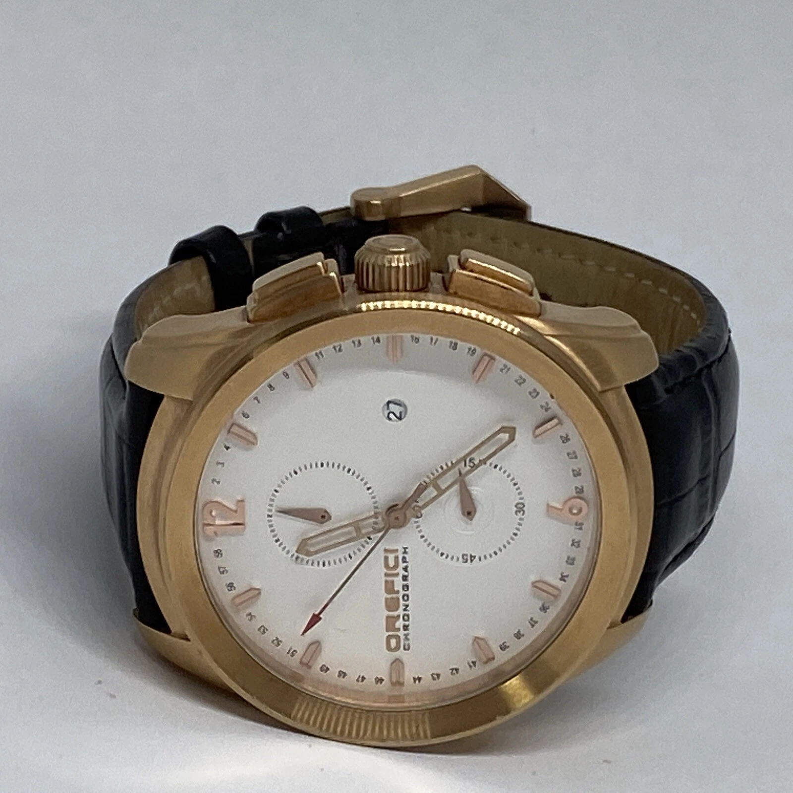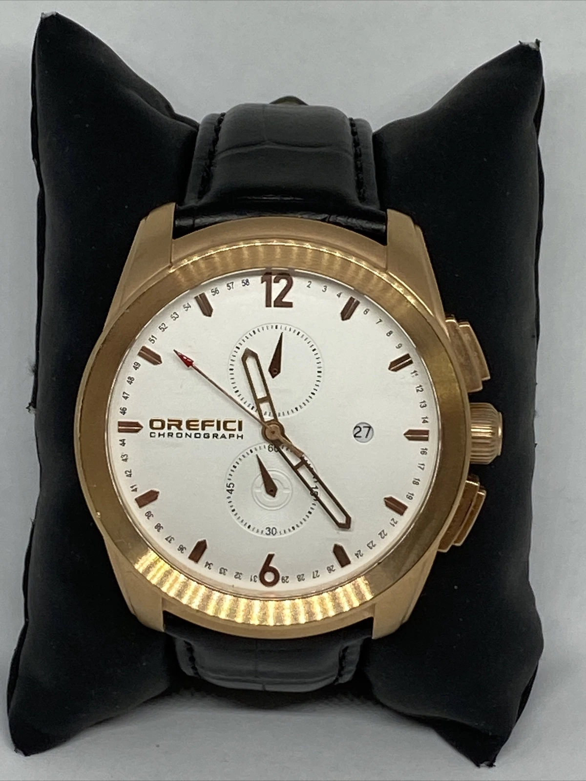 Orefici Classico 0158 Unisex Black Leather Analog White Dial Quartz Watch LJ434