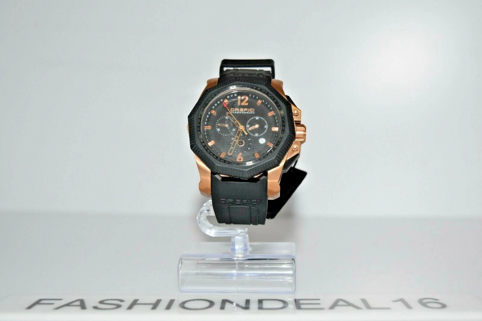 Brand New Orefici Rose-Tone SS Black Silicone Chrono ORM12C4804 MSRP $895 Watch
