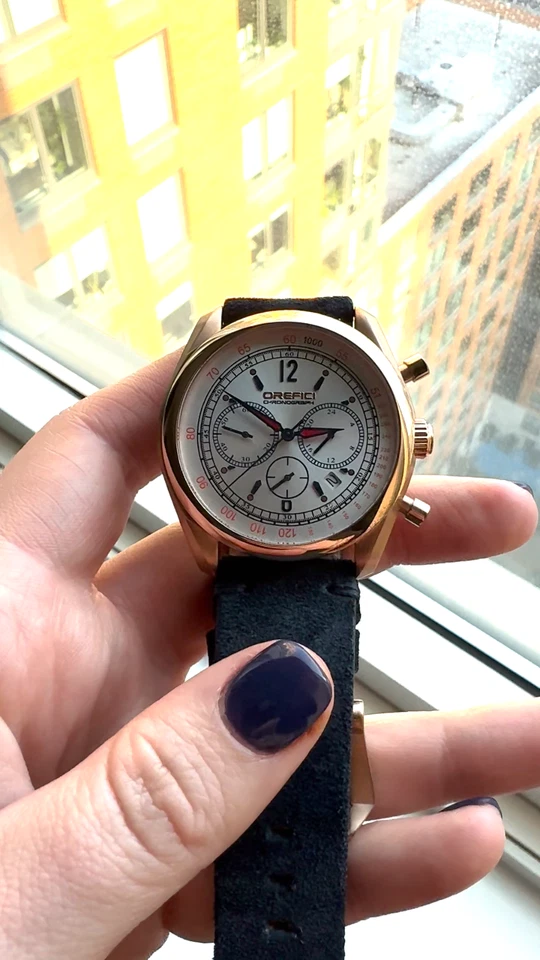 Vintage Rose Gold-Colored Steel Orefici Chronograph Watch