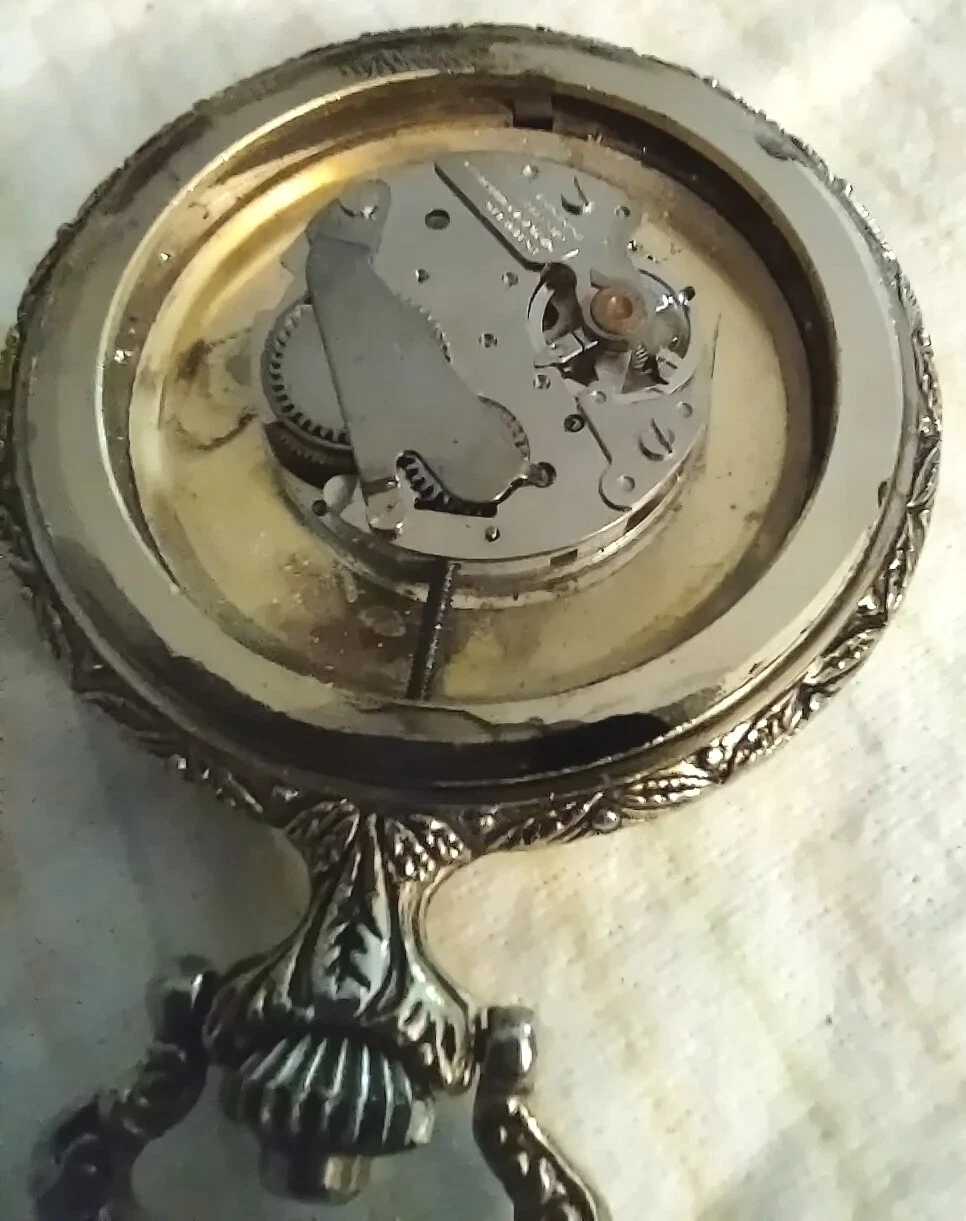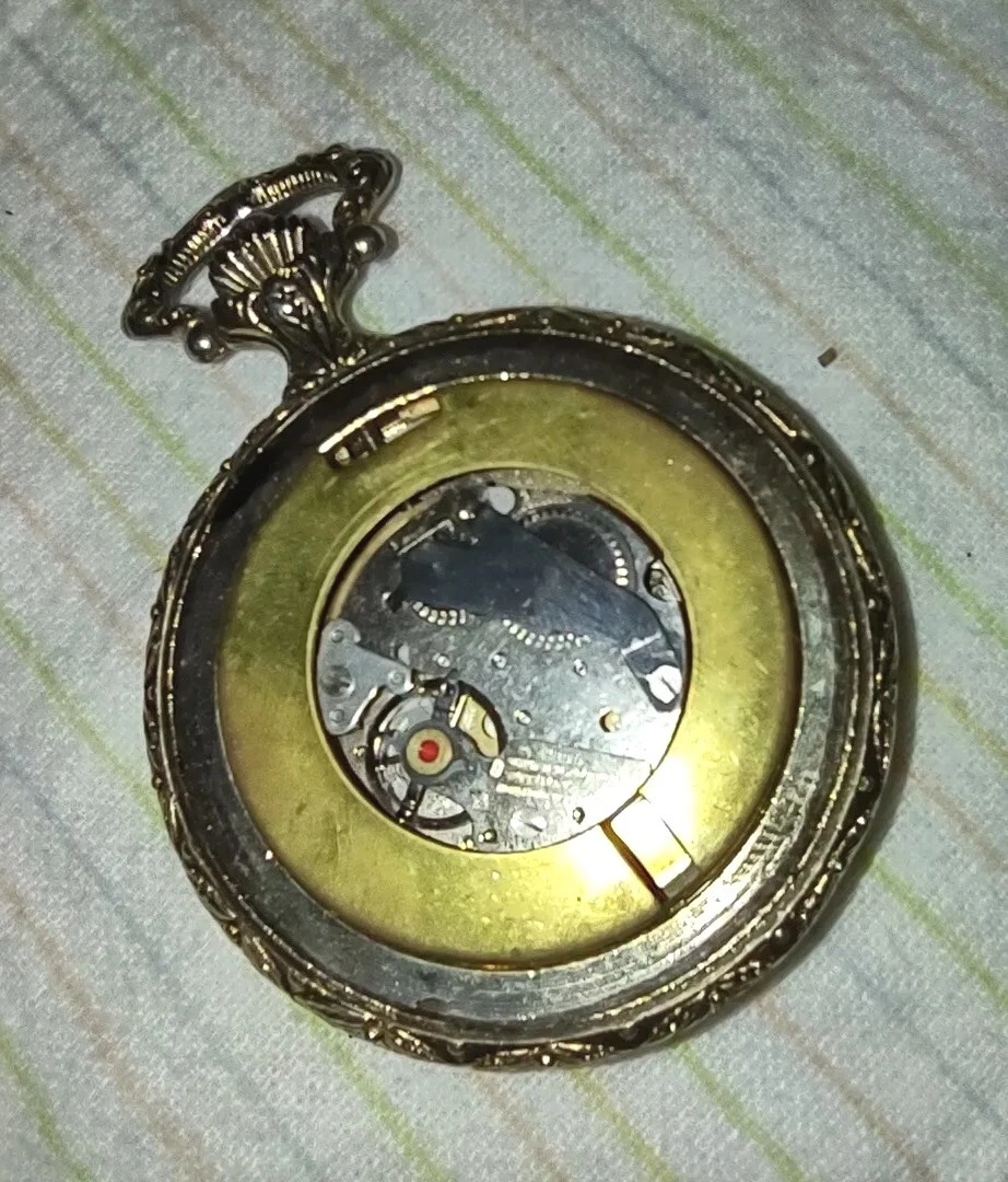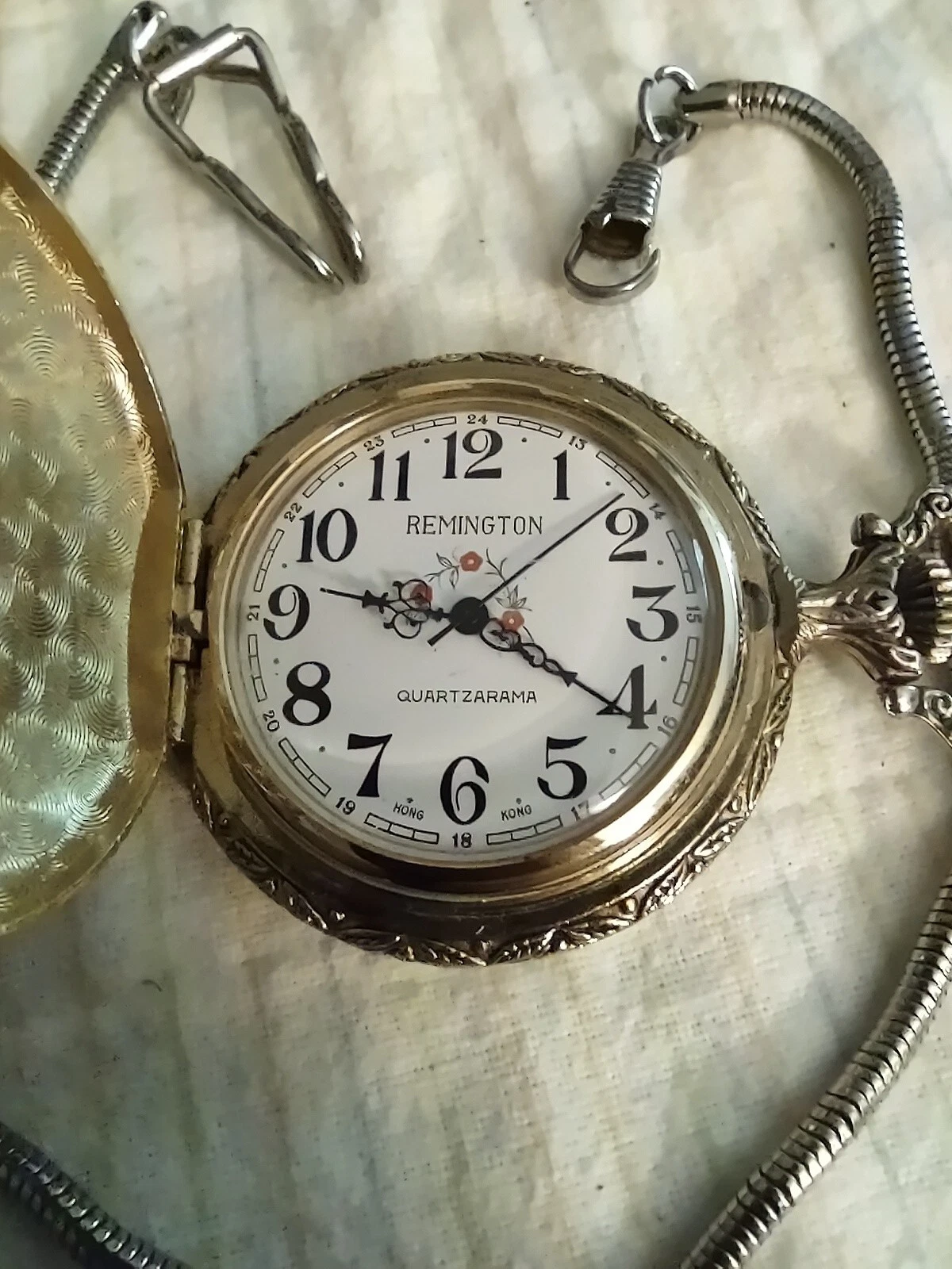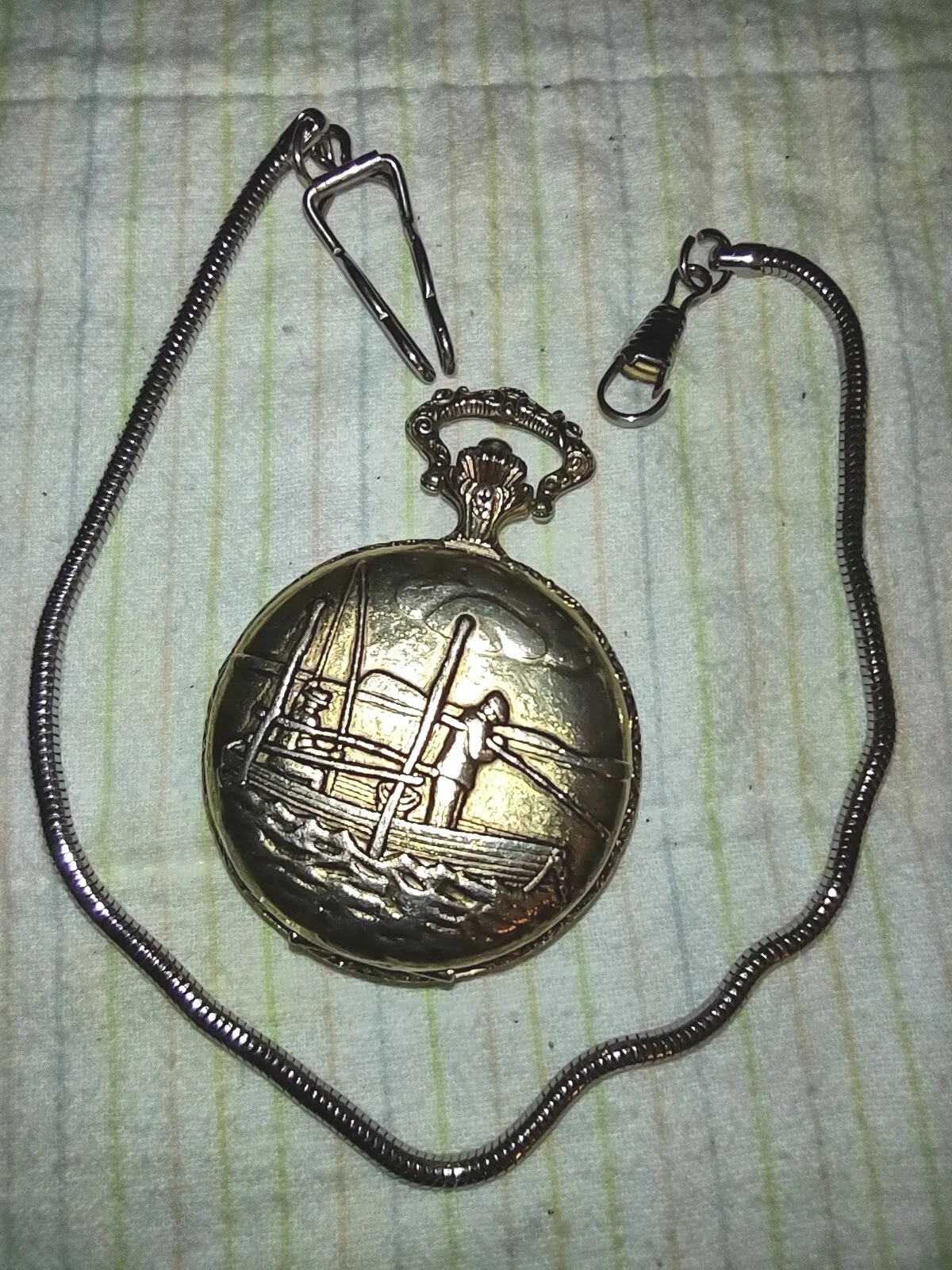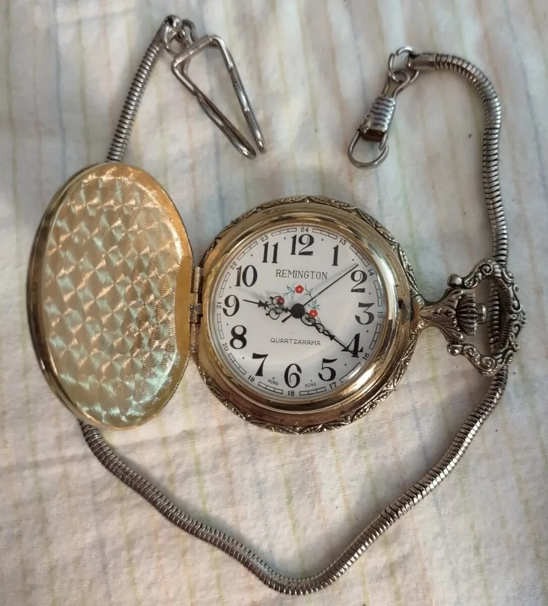 Remington Quartzarama Gold Toned Pocket Watch fishing Scene repair or parts
