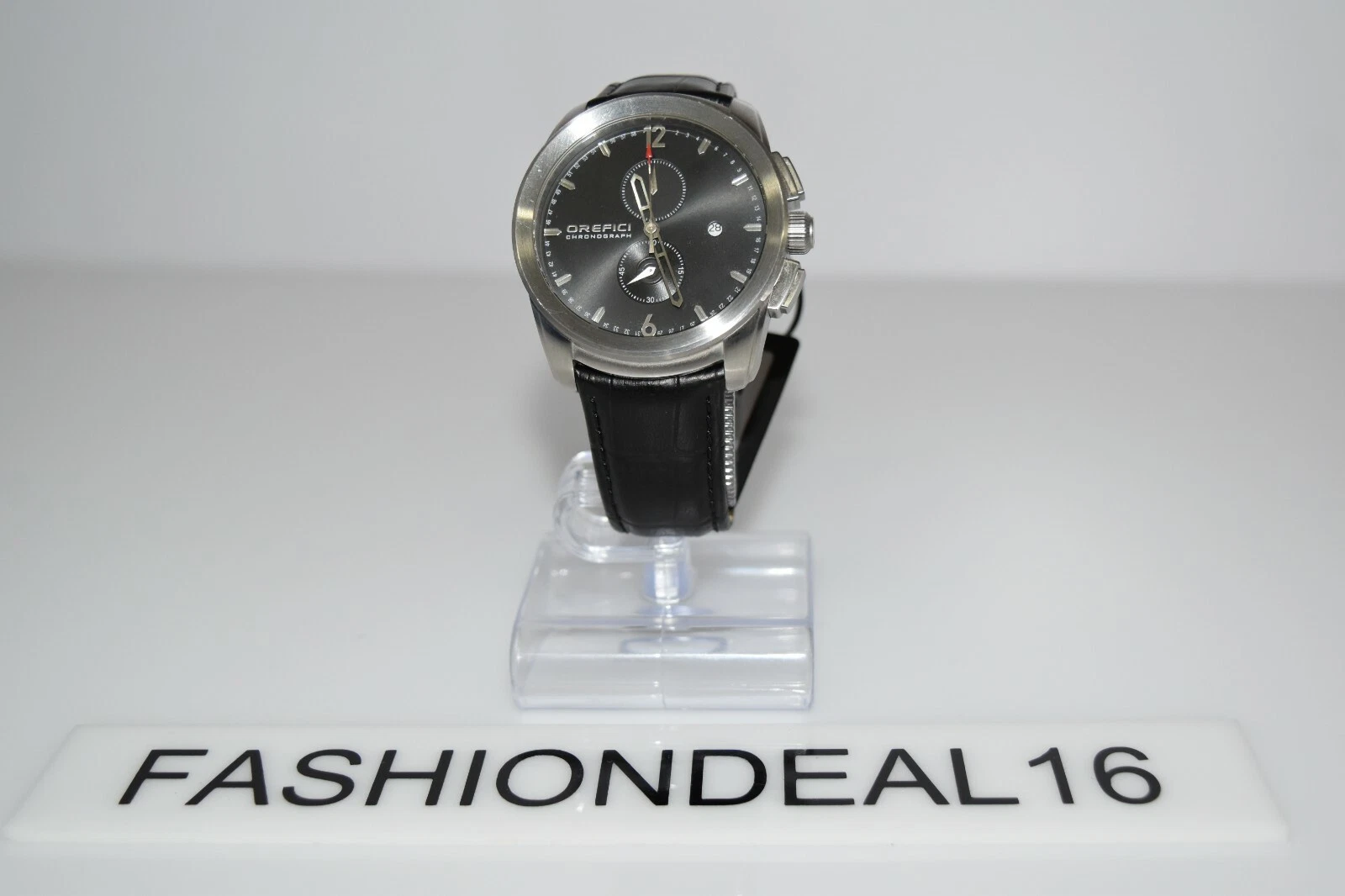 Brand New Orefici CLASSICO SS Black Leather Chrono ORM8C4401 MSRP $650 Watch