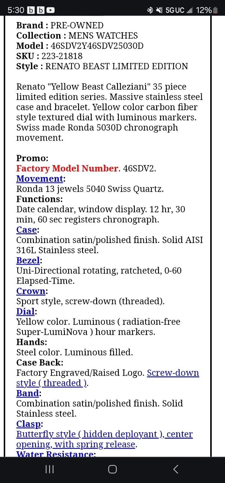 Renato Beast Limited Edition  46SDV2 MSRP$1795