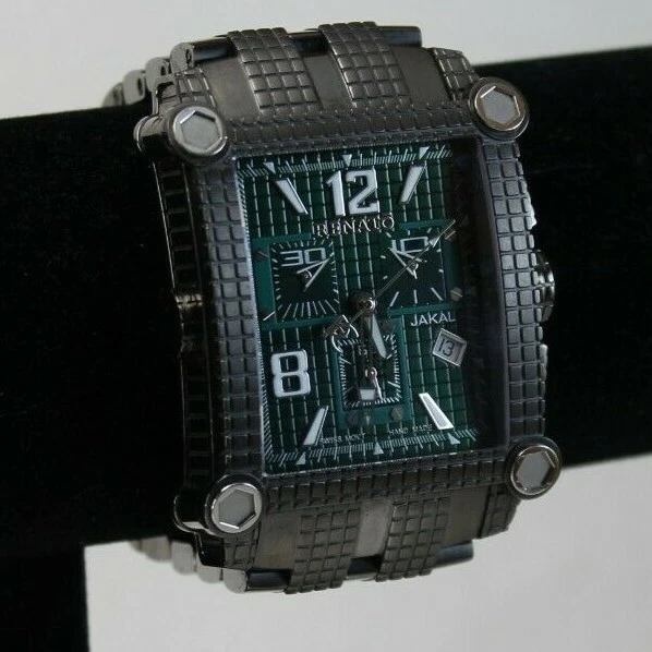 Renato Jackal Men's Watch, Swiss ETA 251, Green Dial on Gun Metal - RARE