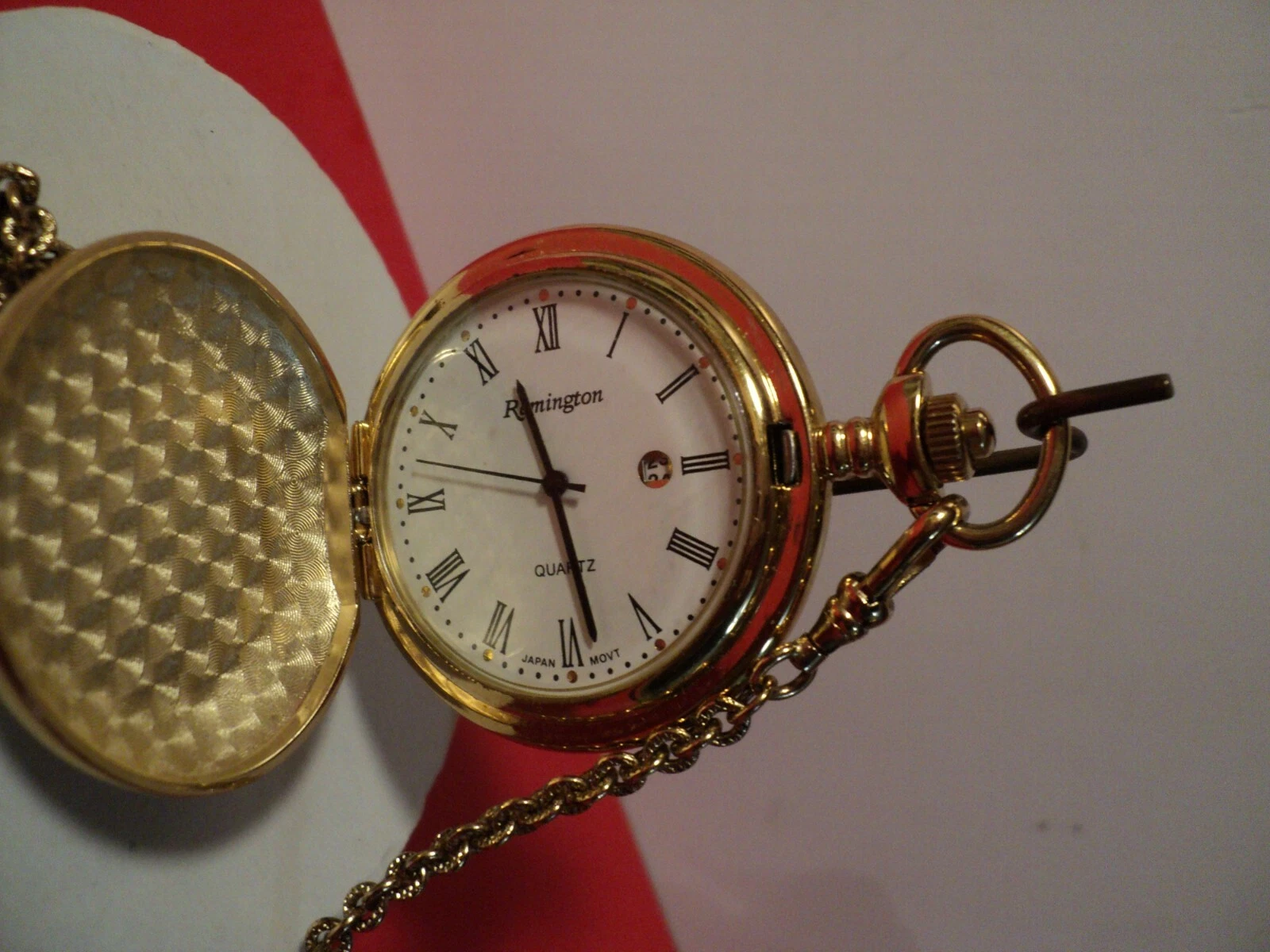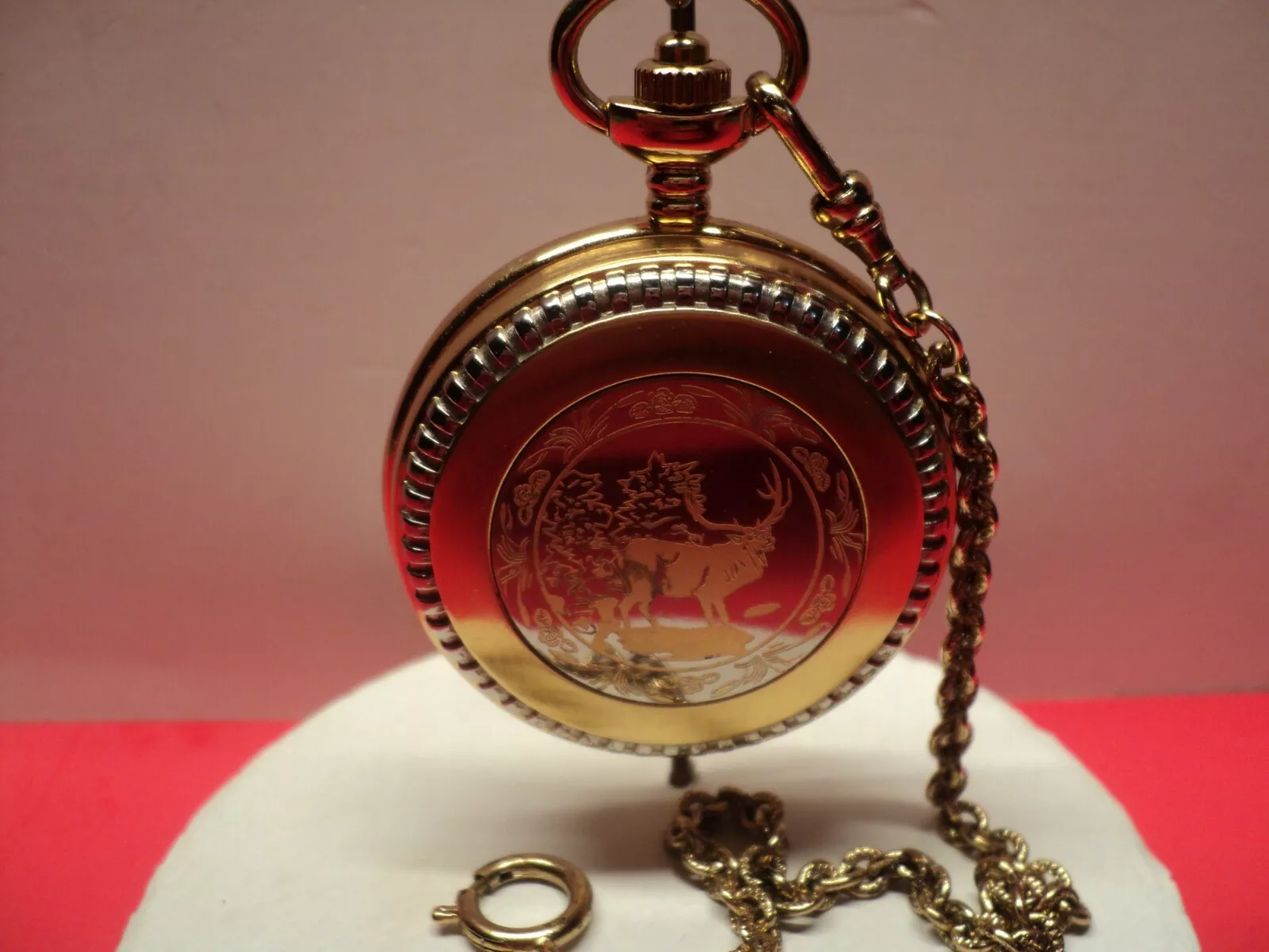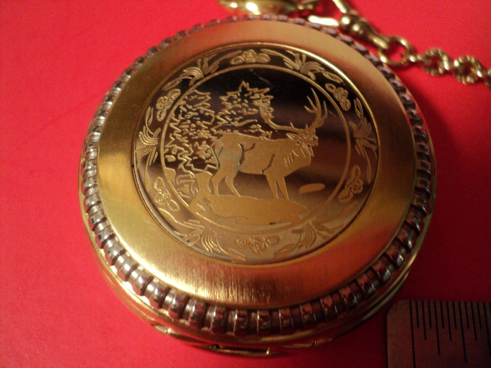 REMINGTON gold tone  silver inlay of Elk   new battery installed/w chain