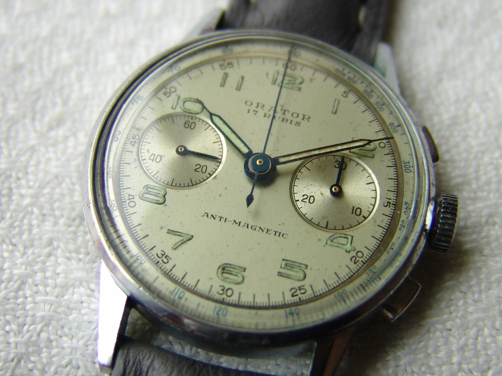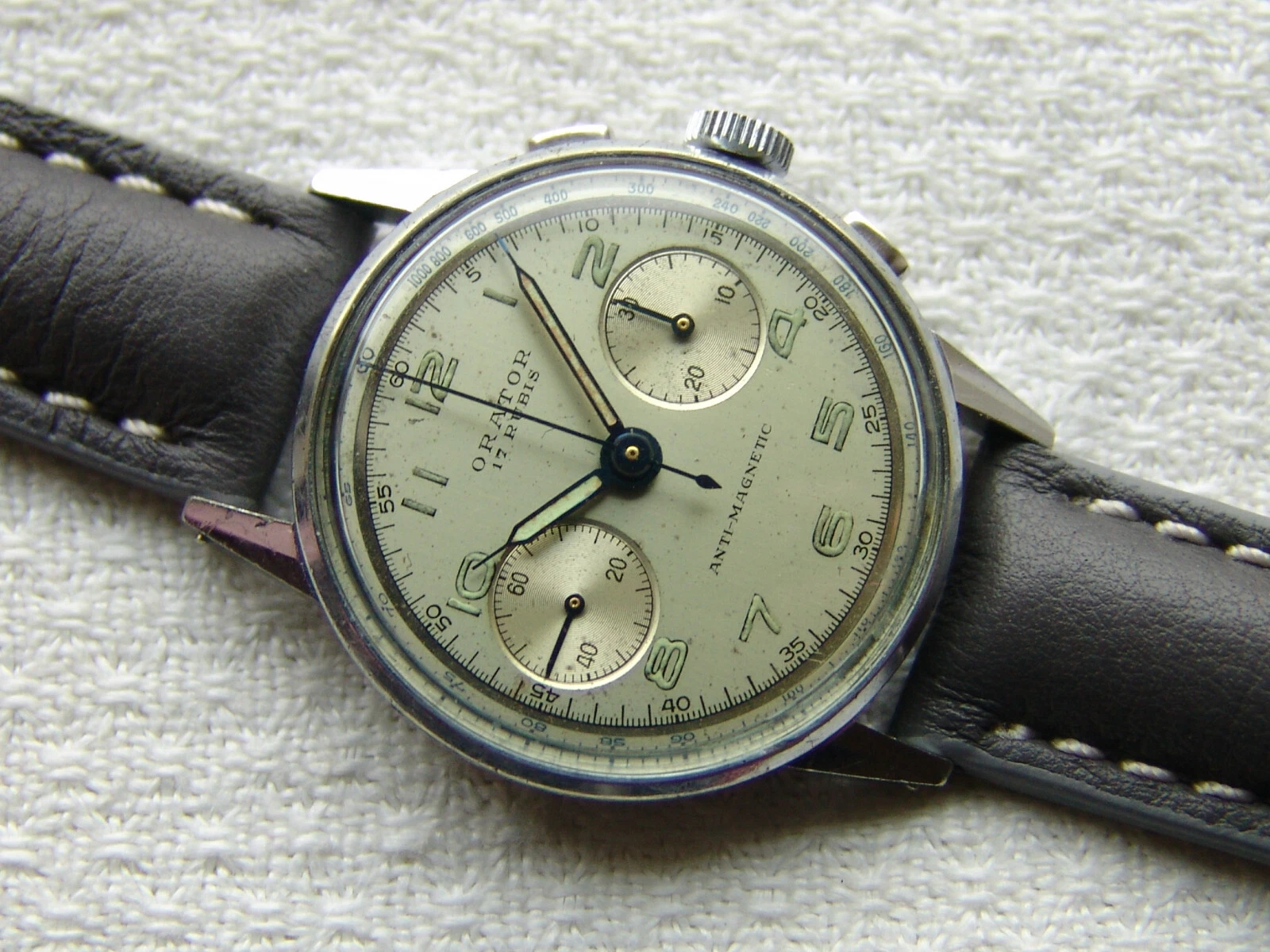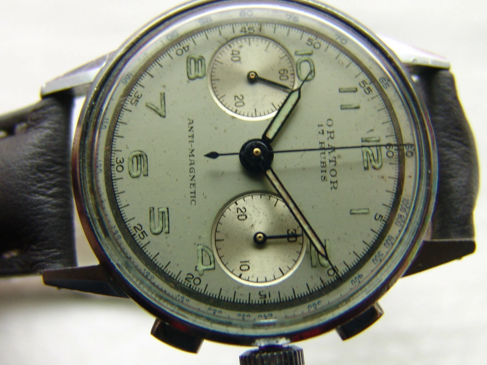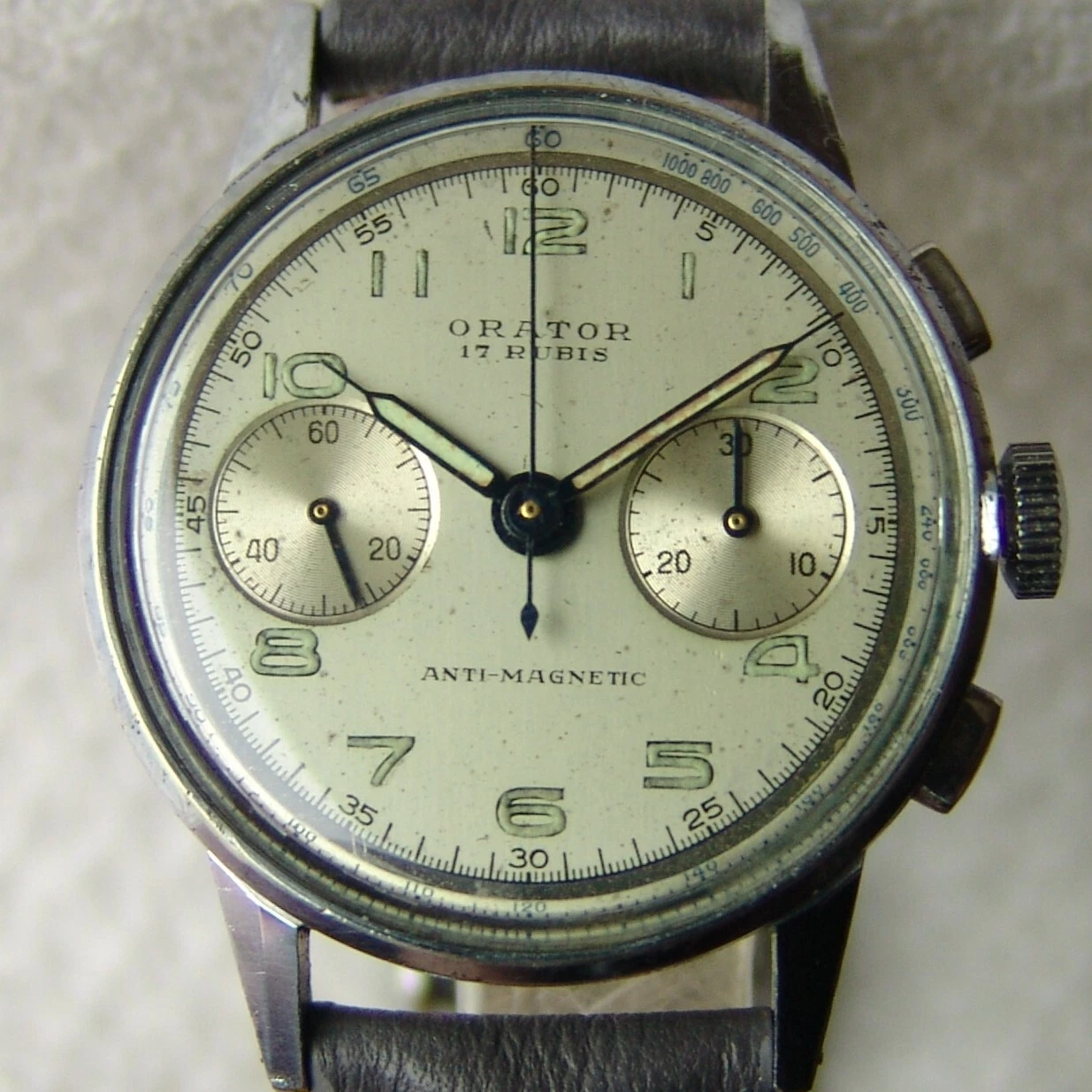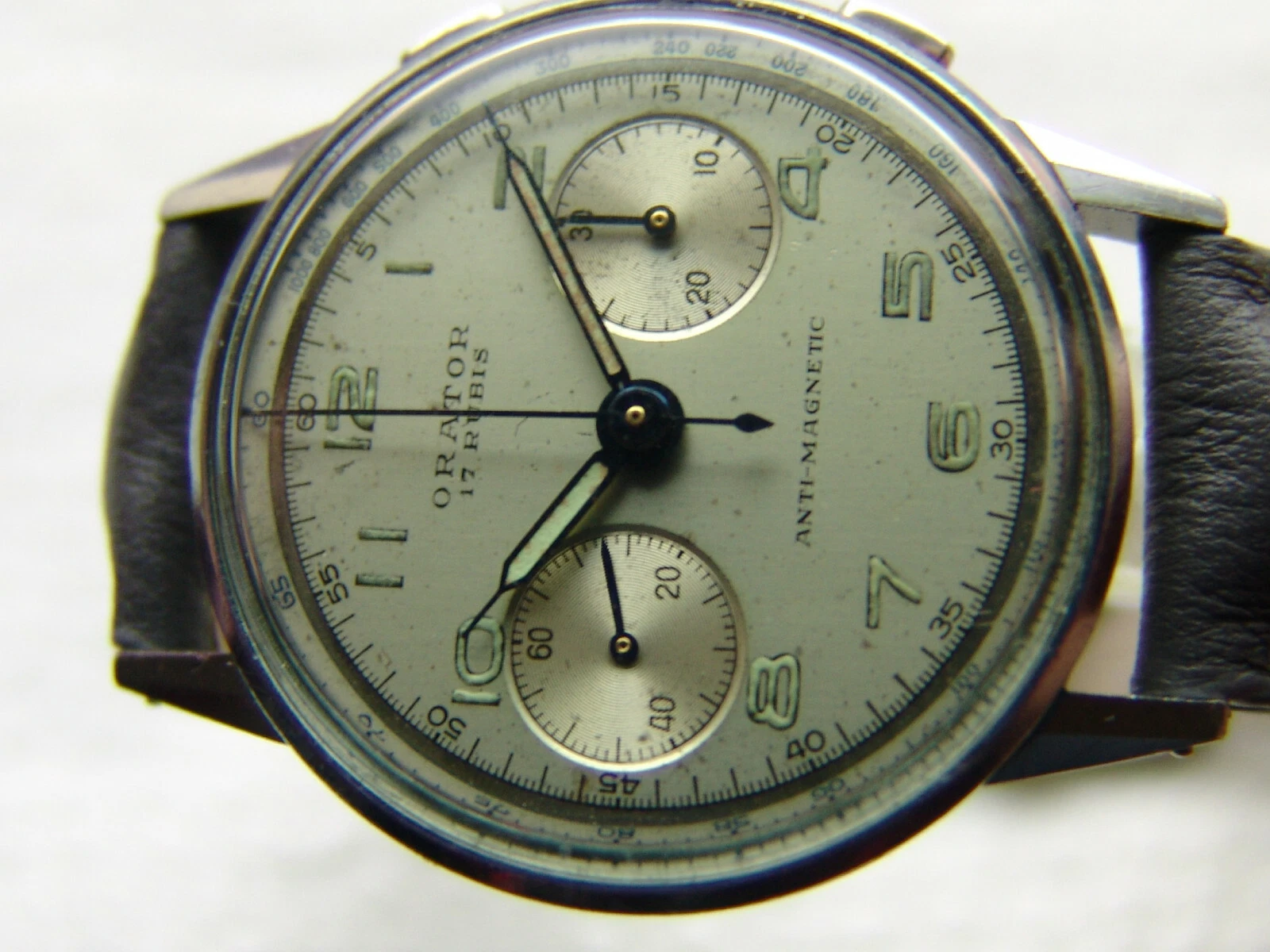 35mm MEN'S chronograph ORATOR good condition WRISTWATCH military style WWII ERA