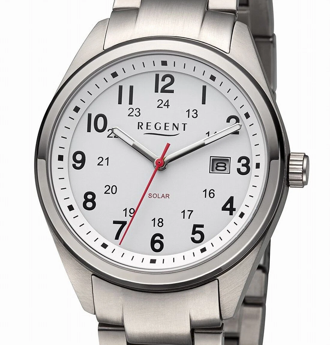 Regent F-1539 Voll-Titan Solar Mens Watch 10 Atm Wr Hypoallergenic