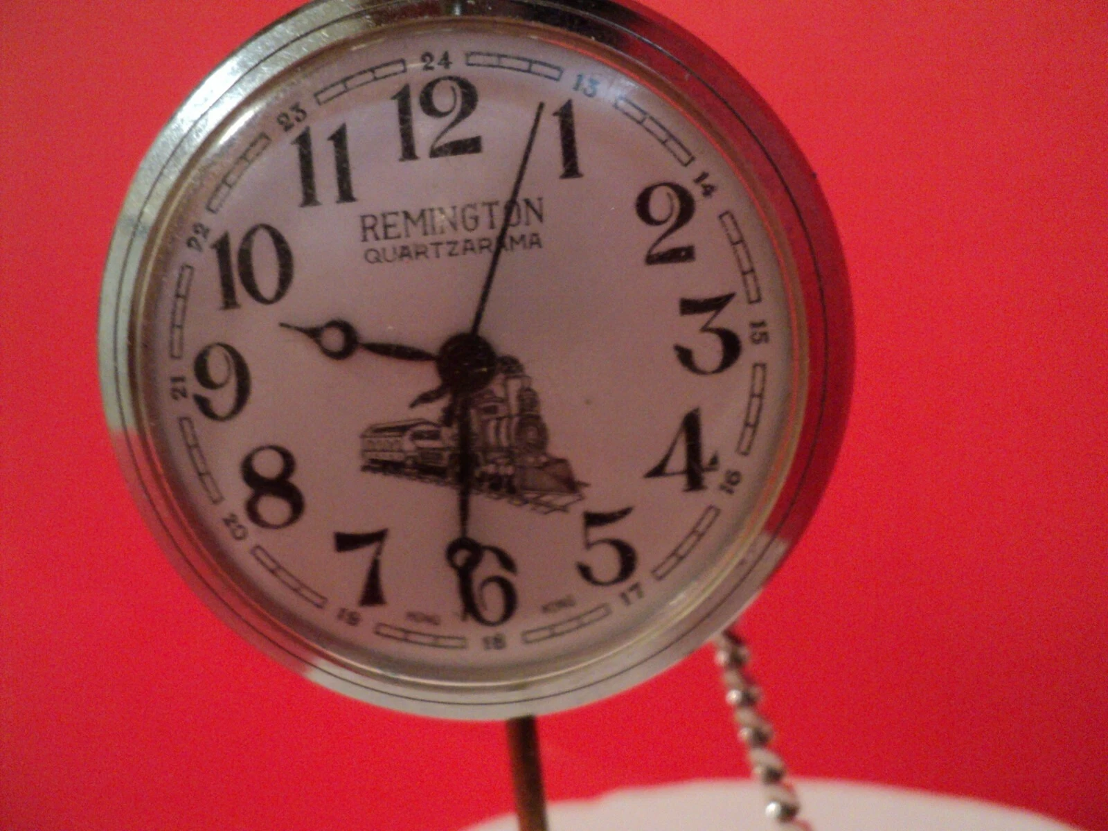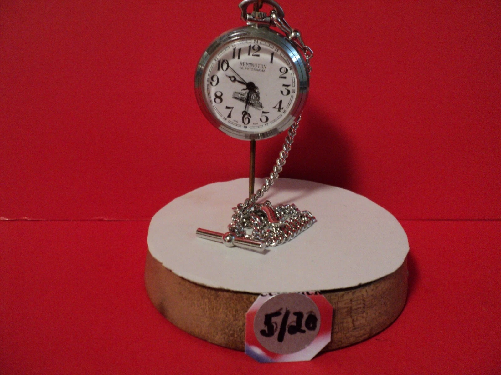 REMINGTON OPEN FACE / SILVER TONE TRAIN ON BACK/face wind up
