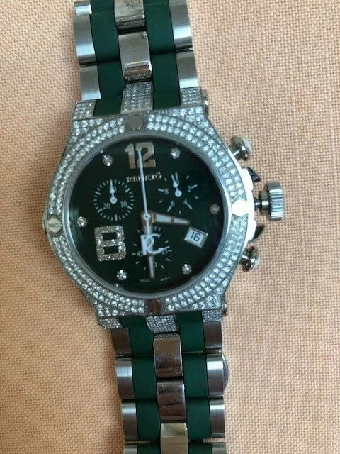 RENATO BEAUTY CHRONO WATCH  DIAMONDS ON BEZEL & SIDES GREEN FACE AND DOWN BAND