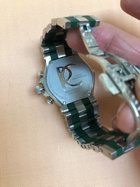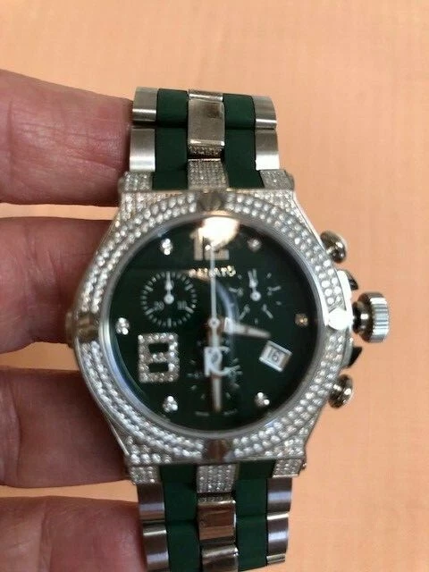 RENATO BEAUTY CHRONO WATCH DIAMONDS ON BEZEL & SIDES GREEN FACE AND DOWN BAND