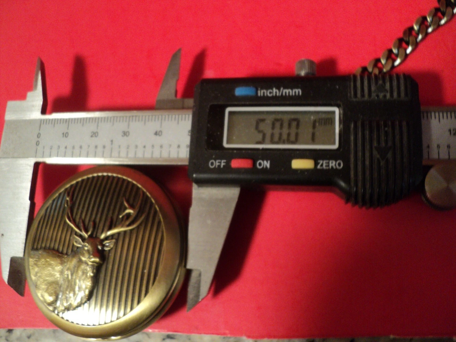 Remington pocket watch bronze tone green face/ battery /w chain ELK ON lid