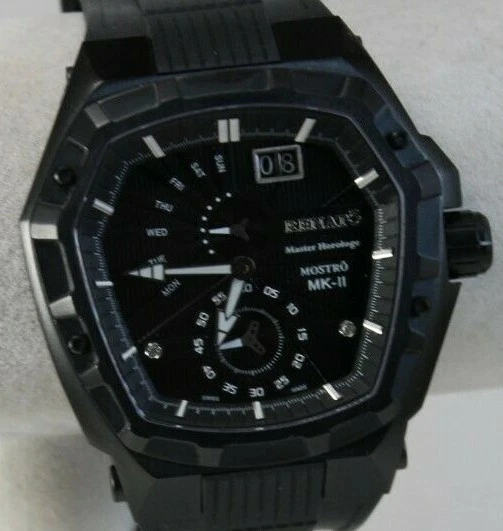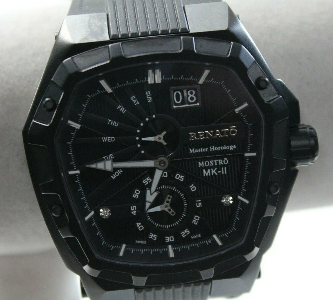 Renato Men's MKII Master Horologe Watch, Swiss Made, Black DIal, White Accents