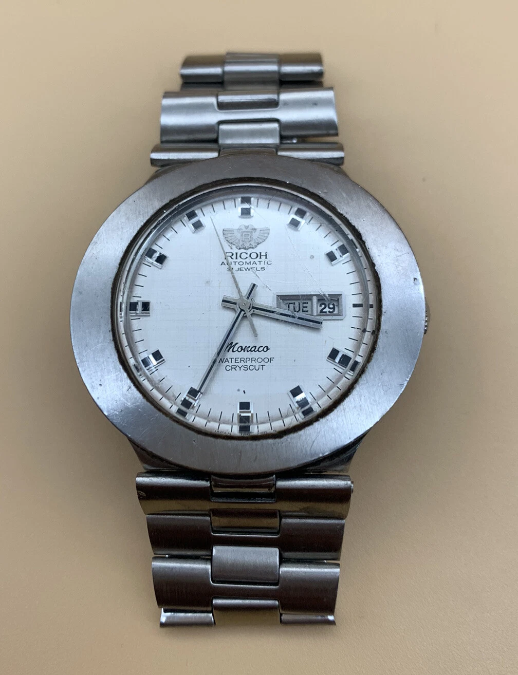 Vintage Ricoh Monaco Cryscut 261223 Automatic Day Date Men's Watch