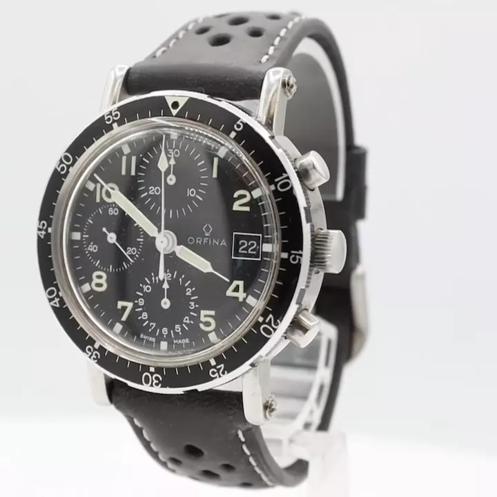 Vintage Orfina Black Racing Men's Automatic Chronograph Wristwatch Valj 7750