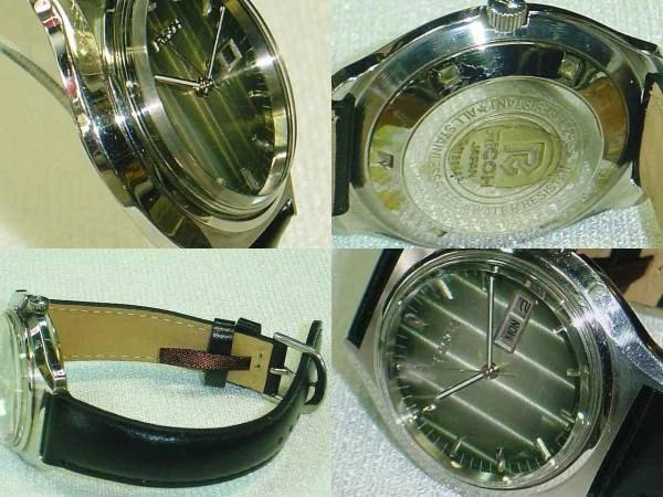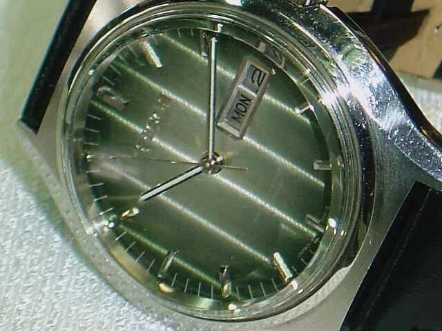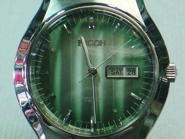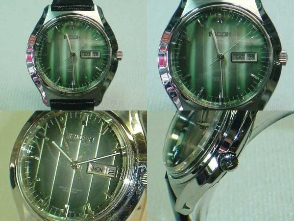 Wristwatch Ricoh All Stainless Steel Green Dial Antique Self-winding Analog